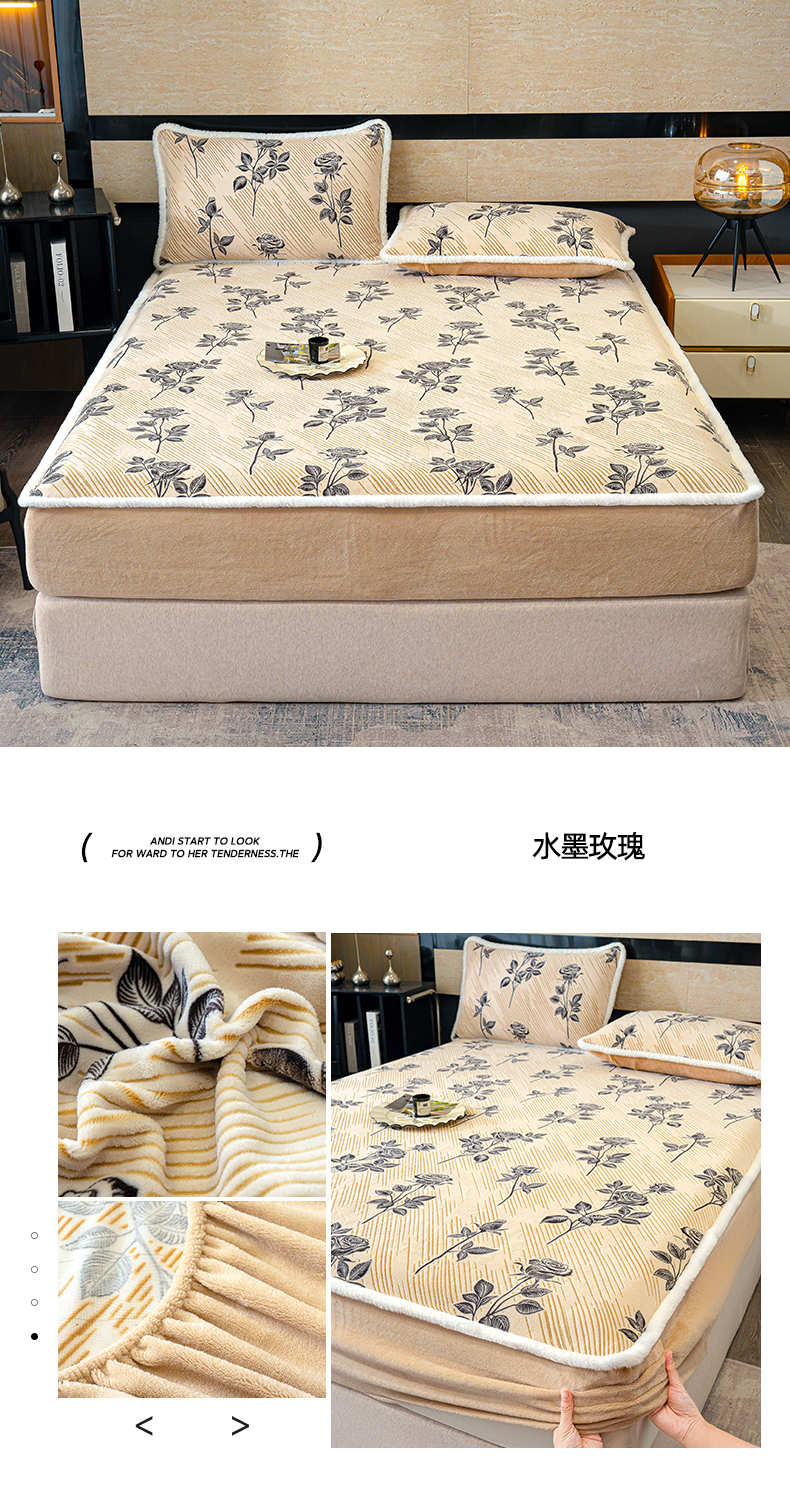 鹿辉家居(原吉欧力) 2025新款牛奶绒雕花兔毛绒包边床笠 繁花朵朵