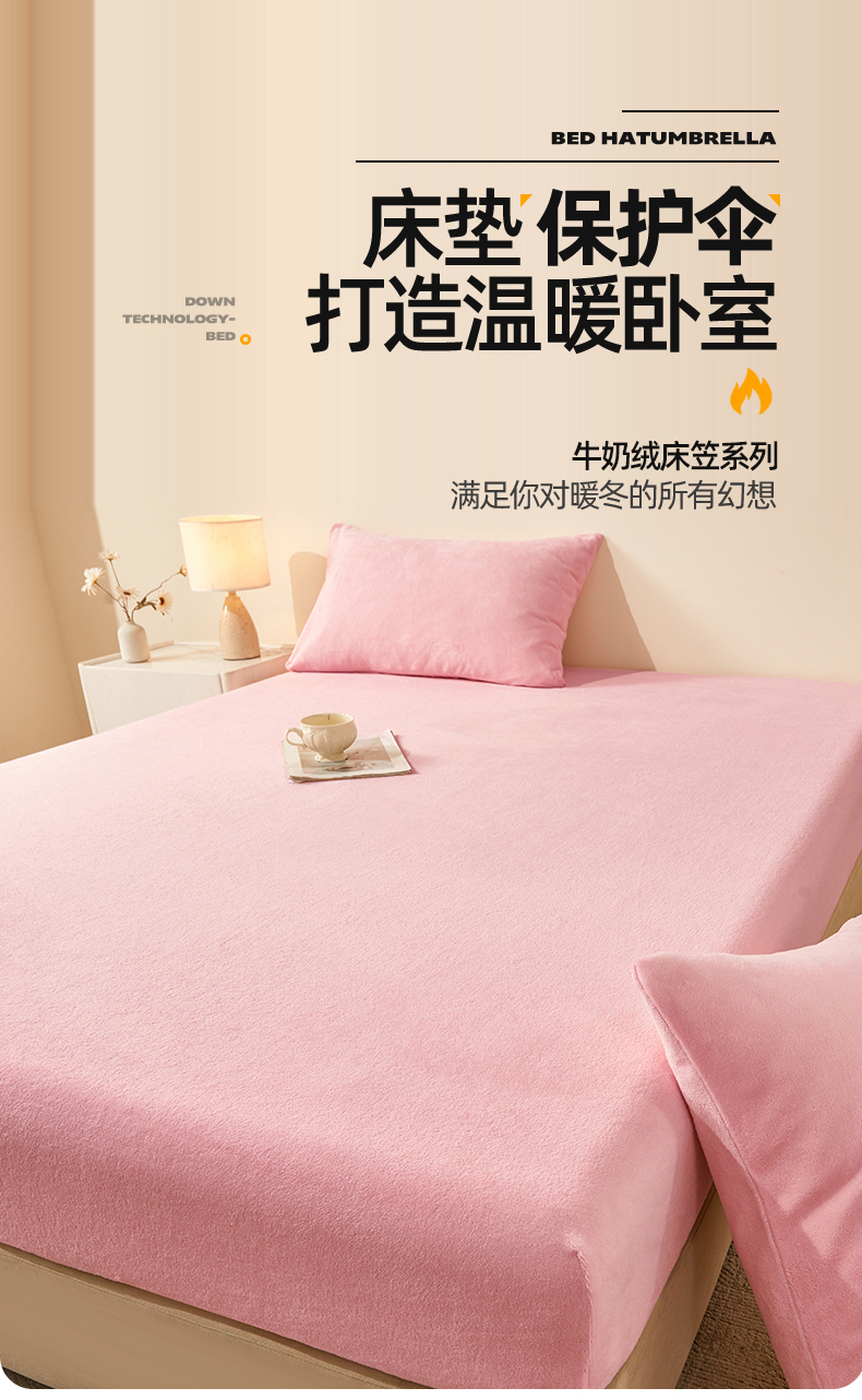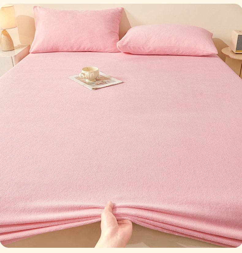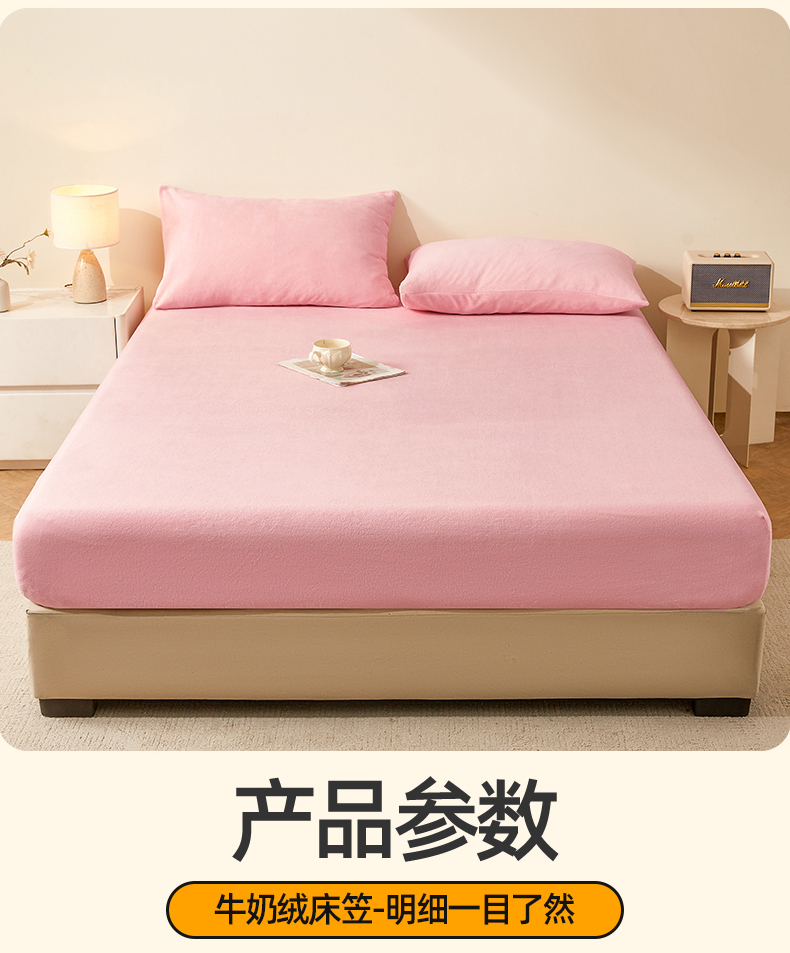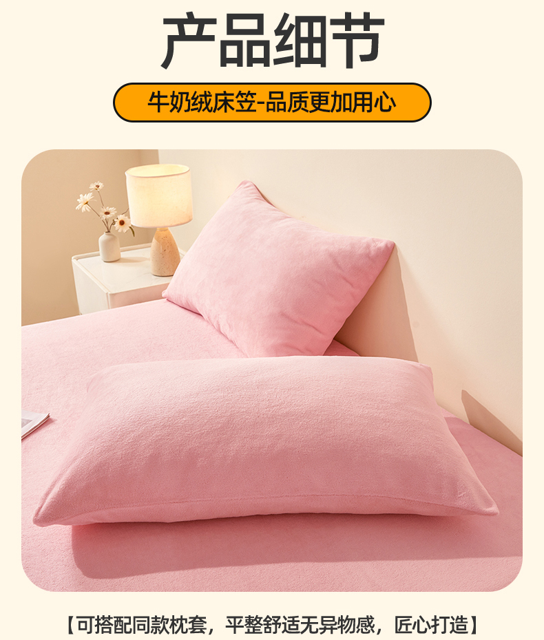 商品名称:优眠坊 2025新款单层高克重牛奶绒纯色床笠 梦幻粉