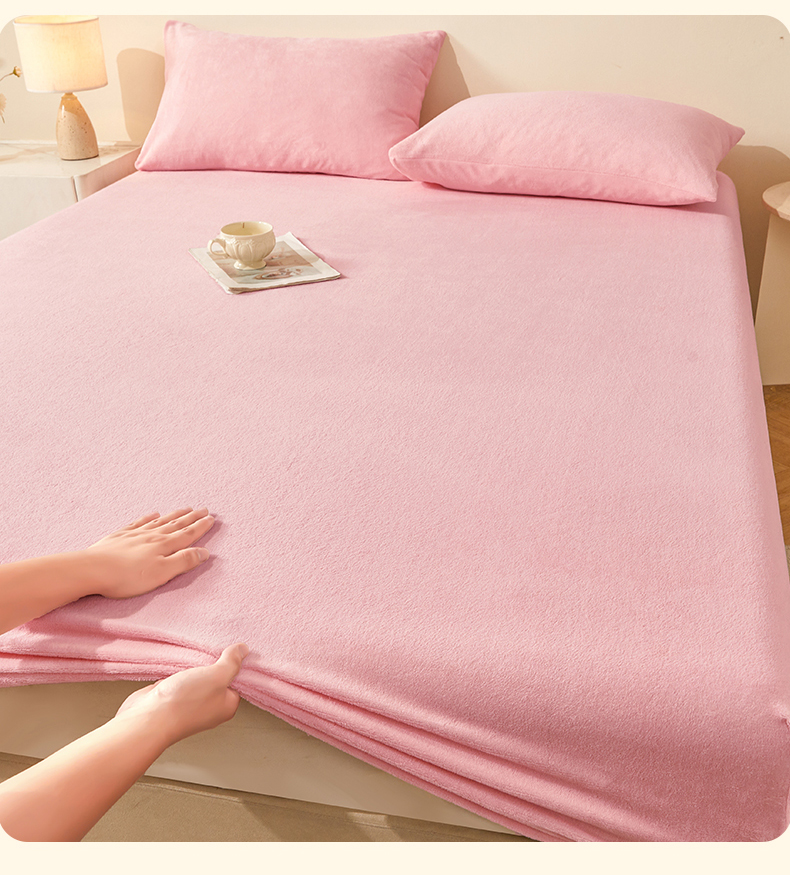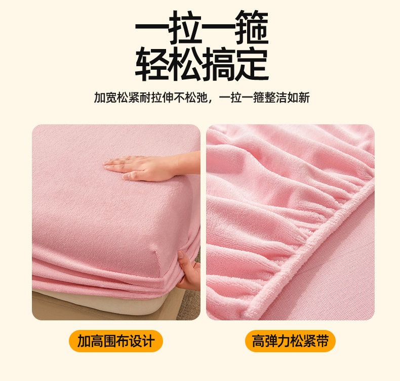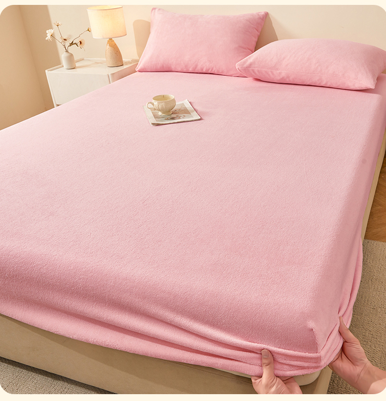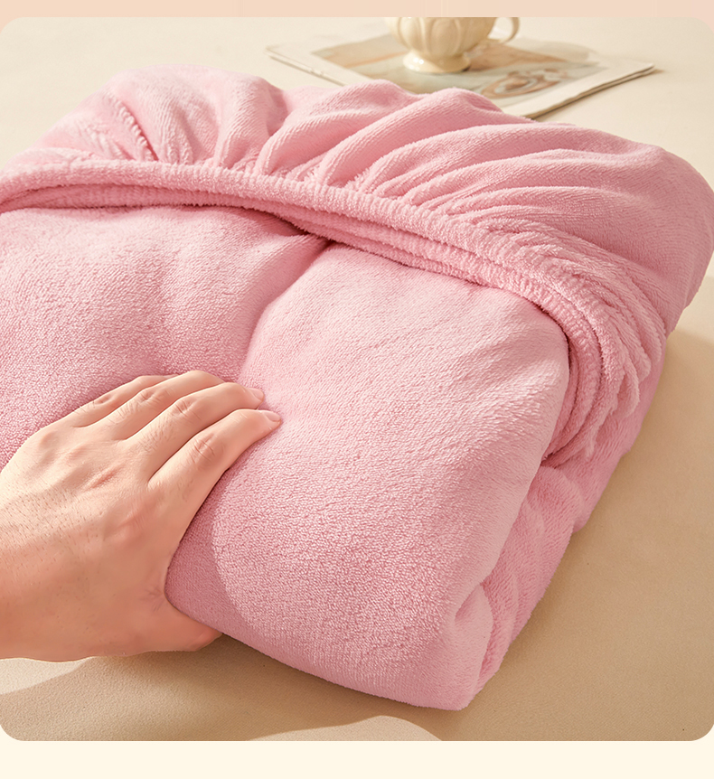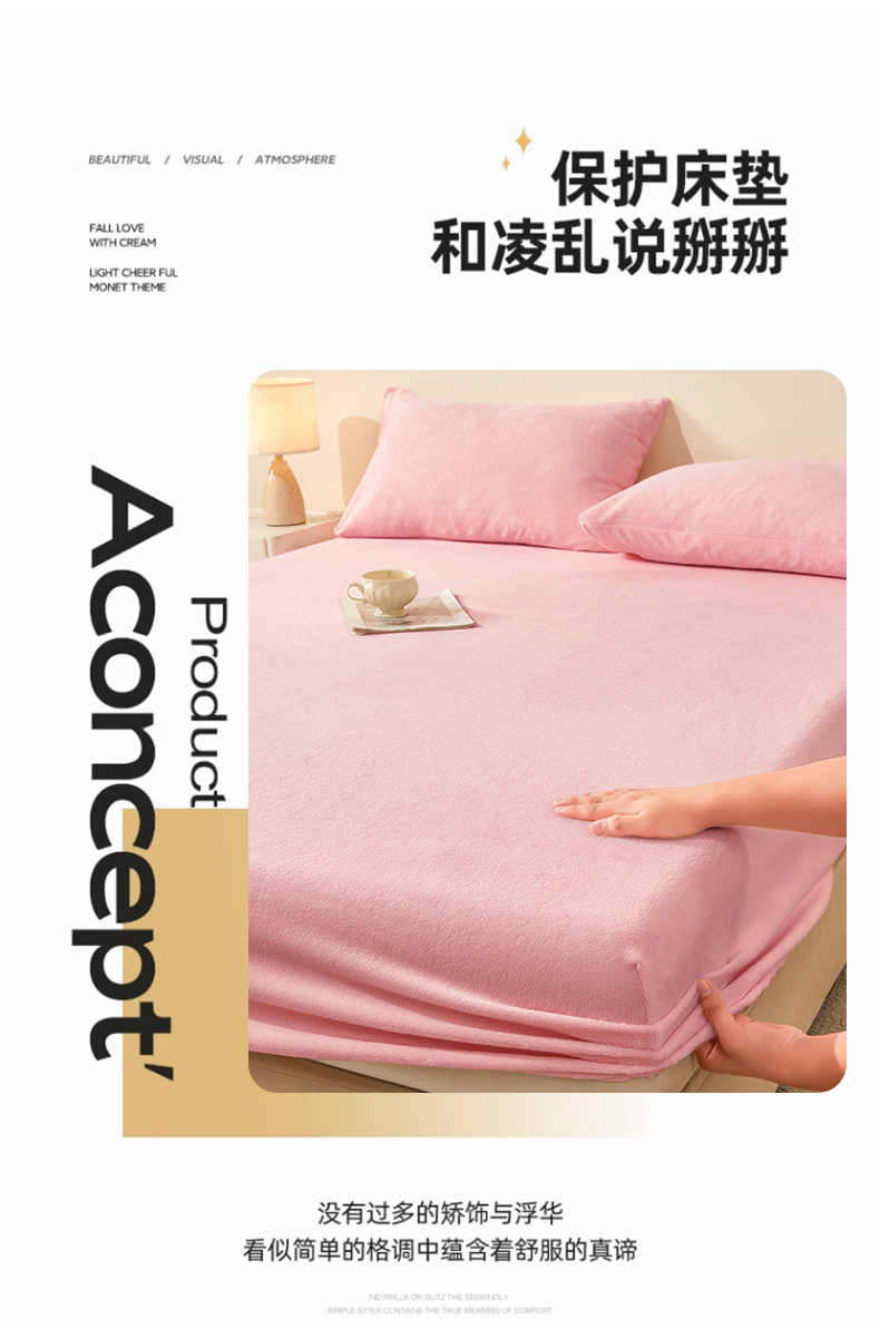 商品名称:优眠坊 2025新款单层高克重牛奶绒纯色床笠 梦幻粉