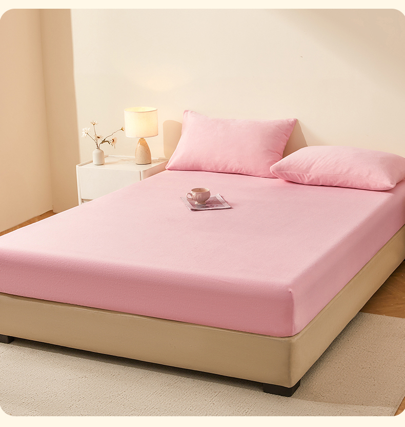 优眠坊 2025新款单层高克重牛奶绒纯色床笠 梦幻粉