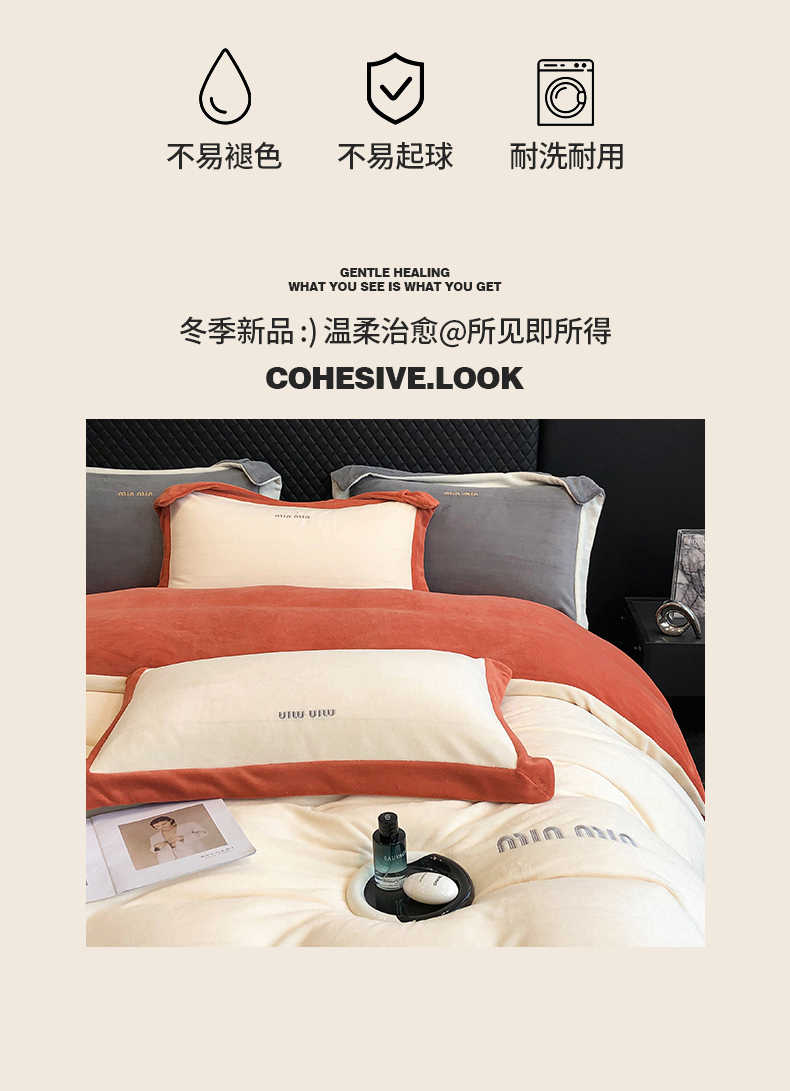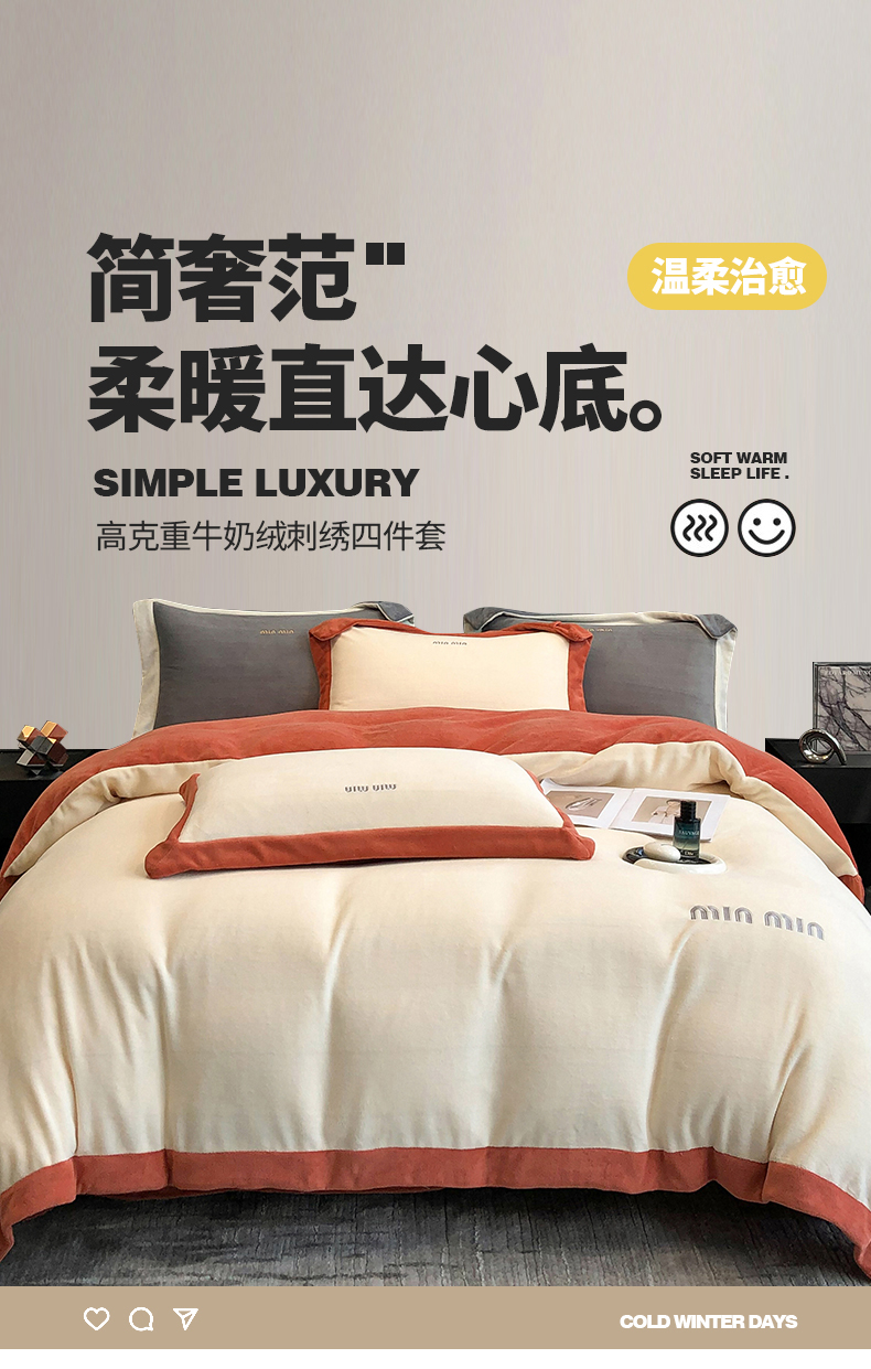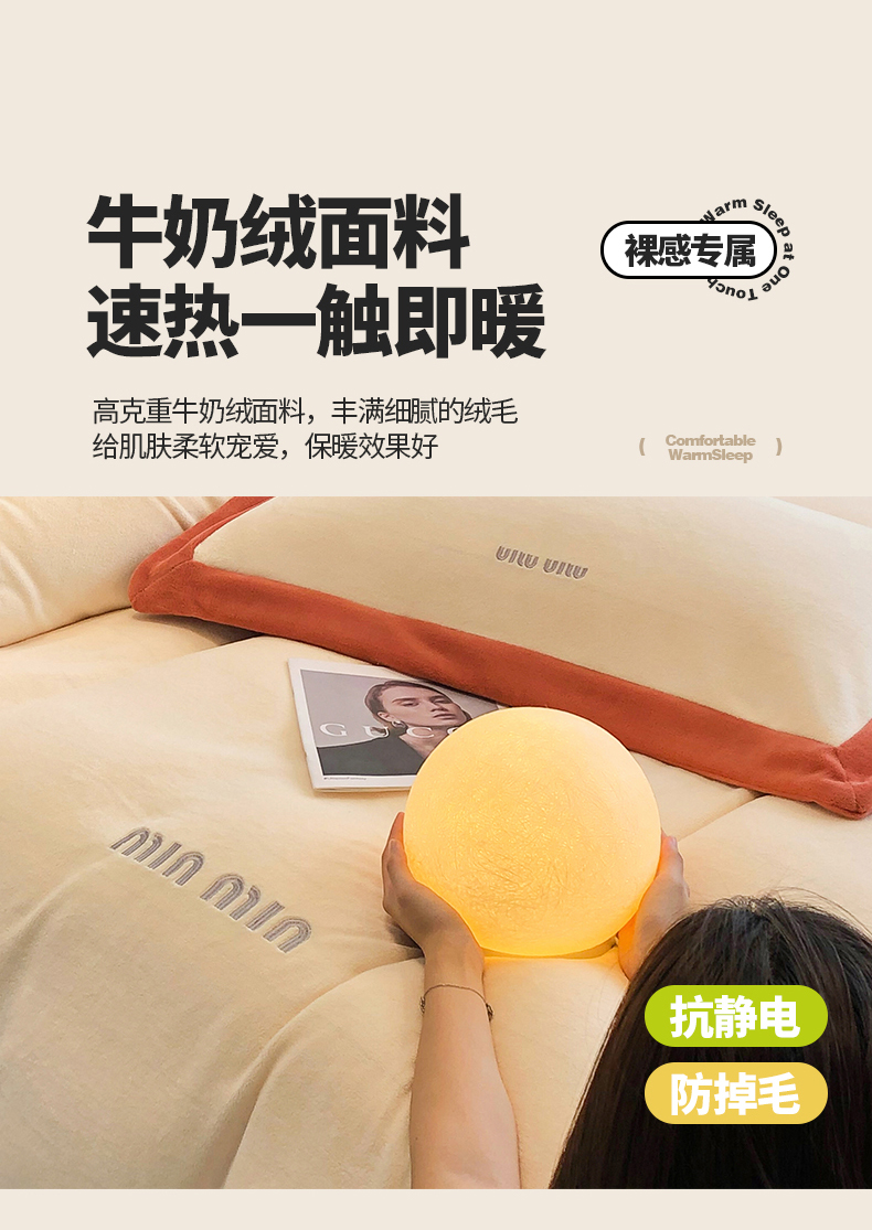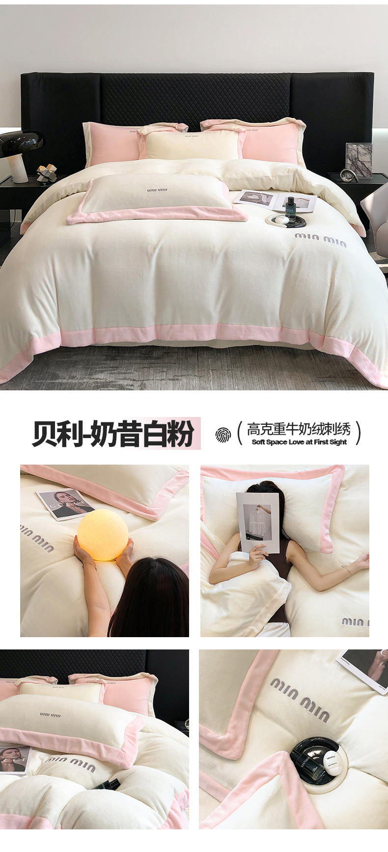 (总)懒猫家纺 2025新款亲肤舒适牛奶绒四件套-可可小姐系列,可可小姐-瓷白,可可小姐-水粉