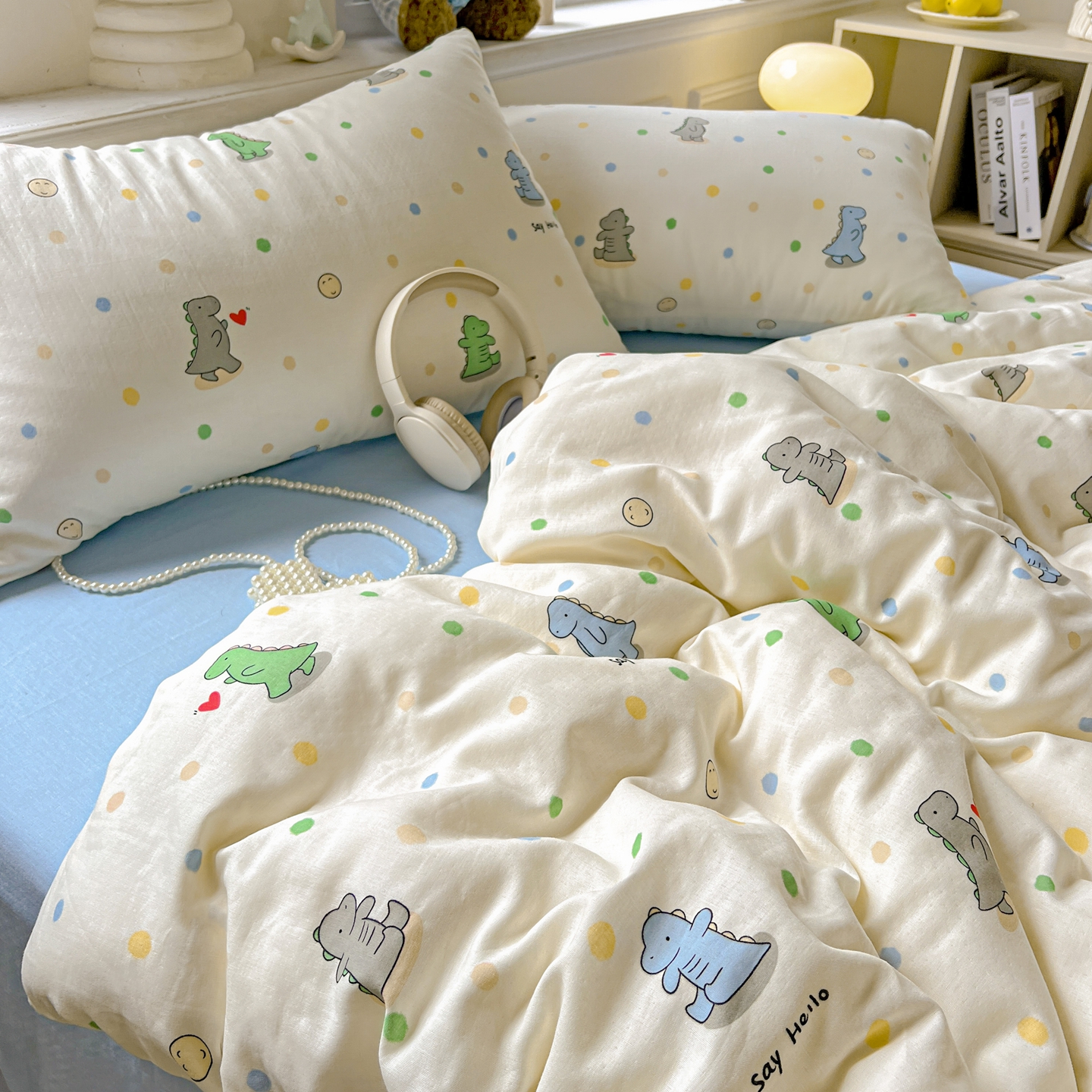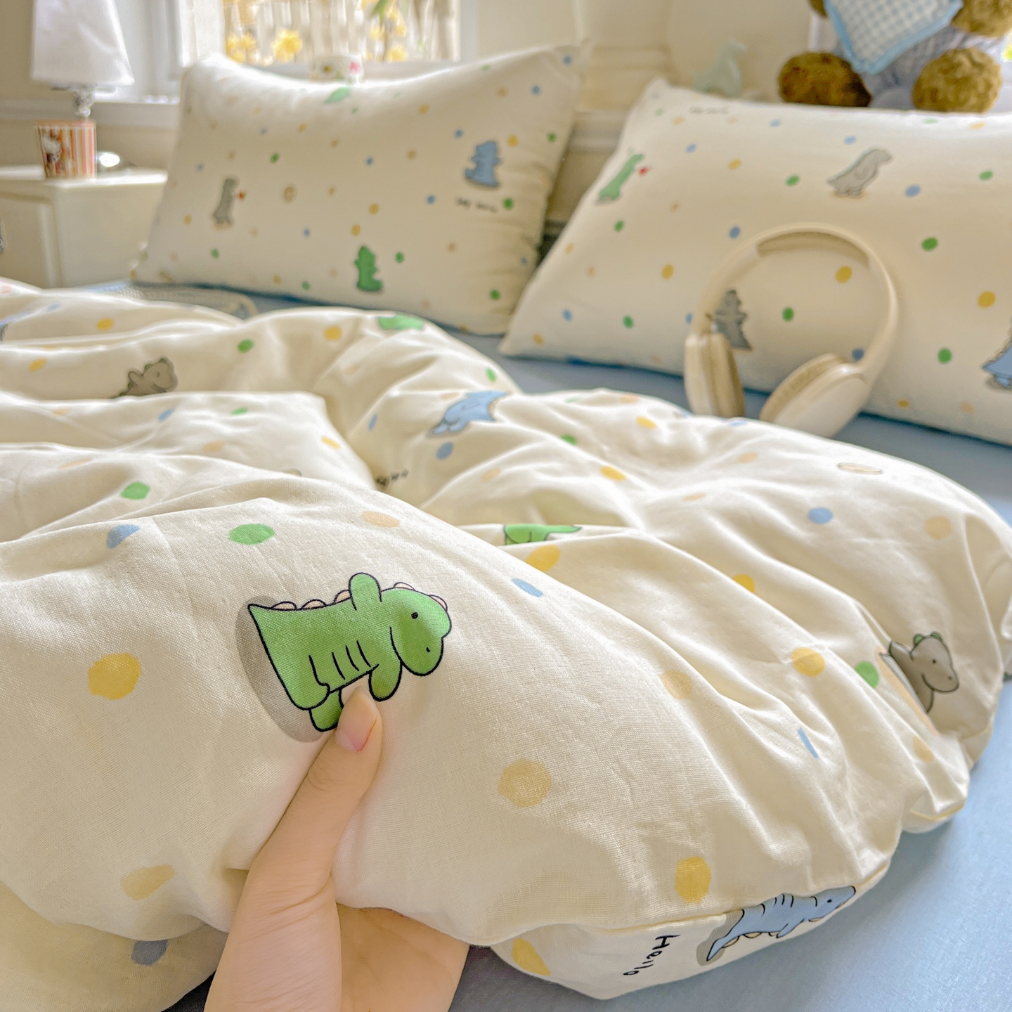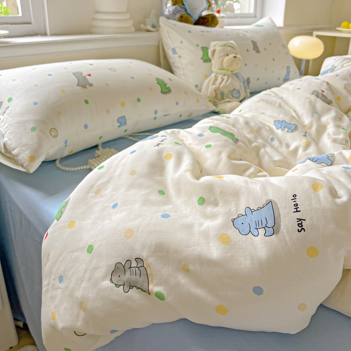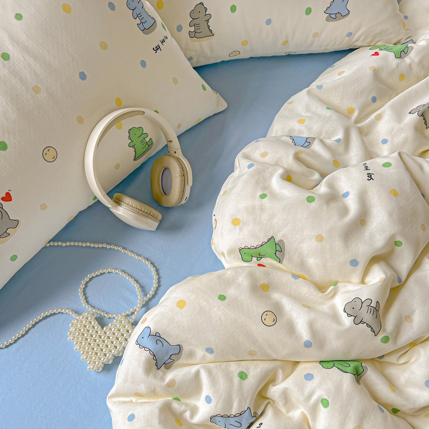 一比一家纺 2025新款全棉双层纱四件套 恐龙派对
