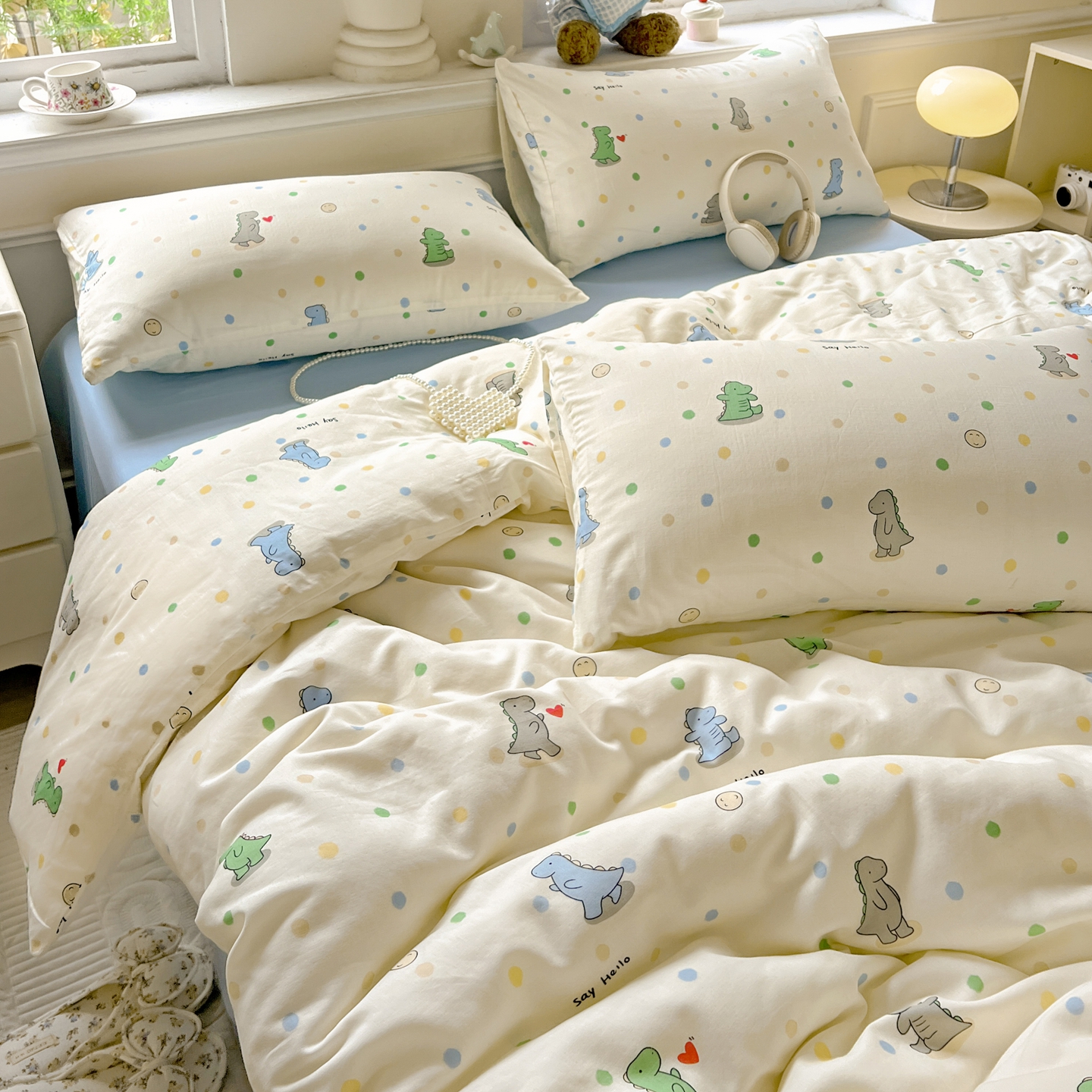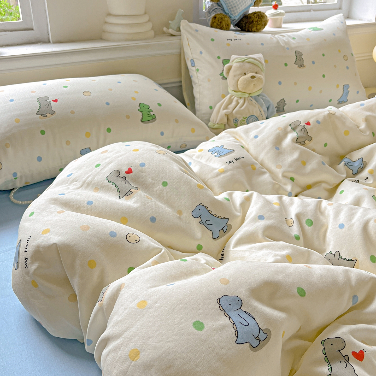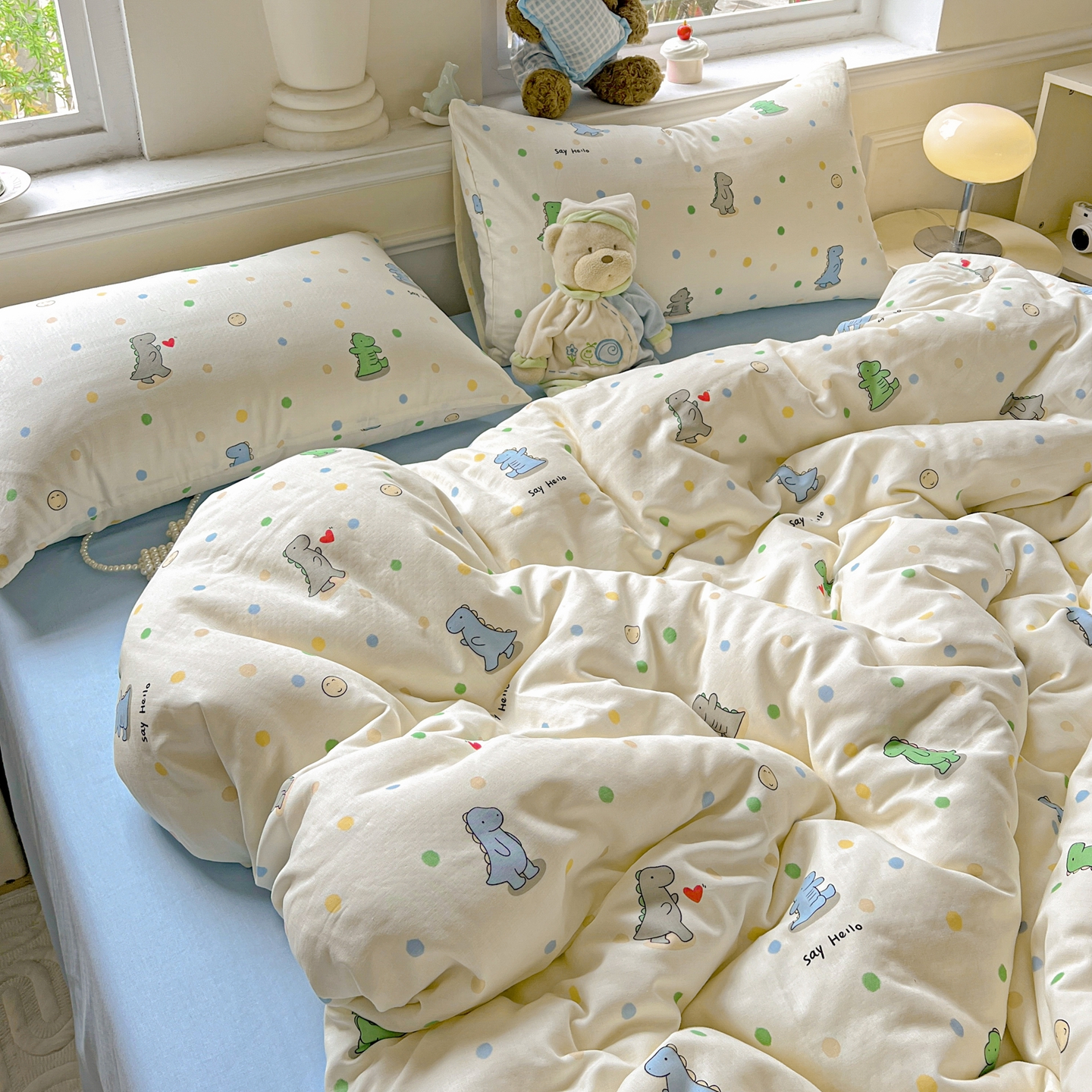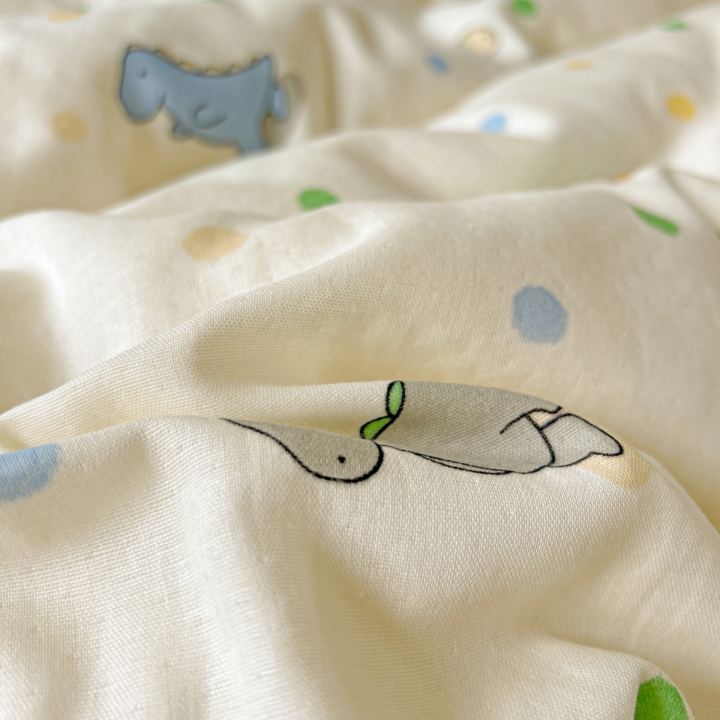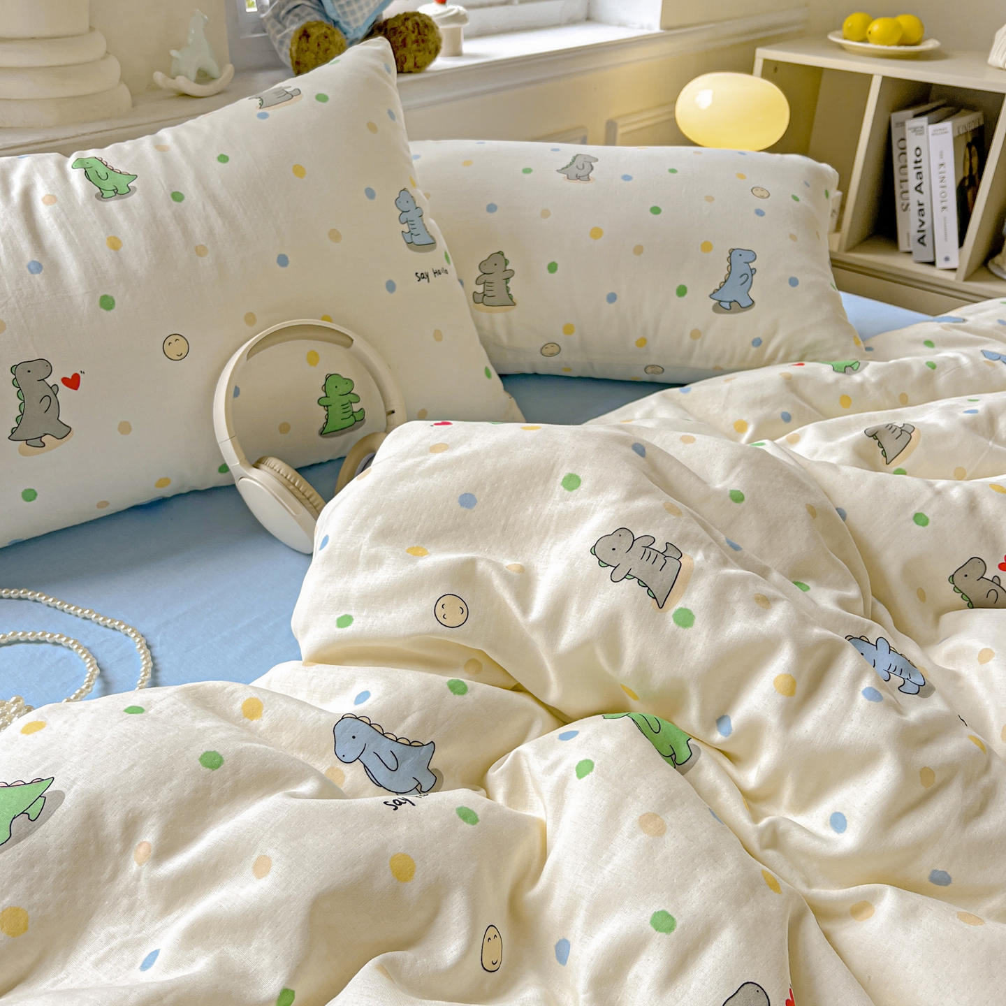 一比一家纺 2025新款全棉双层纱四件套 恐龙派对