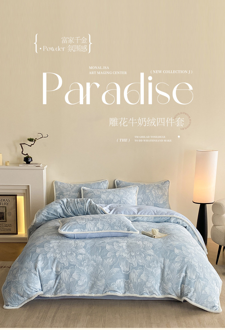 (总)绘萱家居 2025新款爆款高密消光包边雕花牛奶绒四件套立体5D,牡丹花开-蓝,牡丹花开-豆沙,牡丹花开-咖,牡丹花开-绿,山间花丛-绿,圣彼得-灰,圣彼得-咖,圣彼得-紫