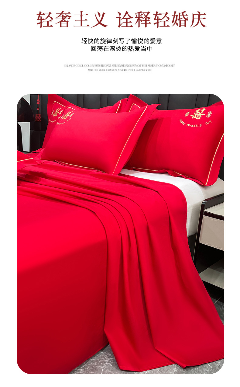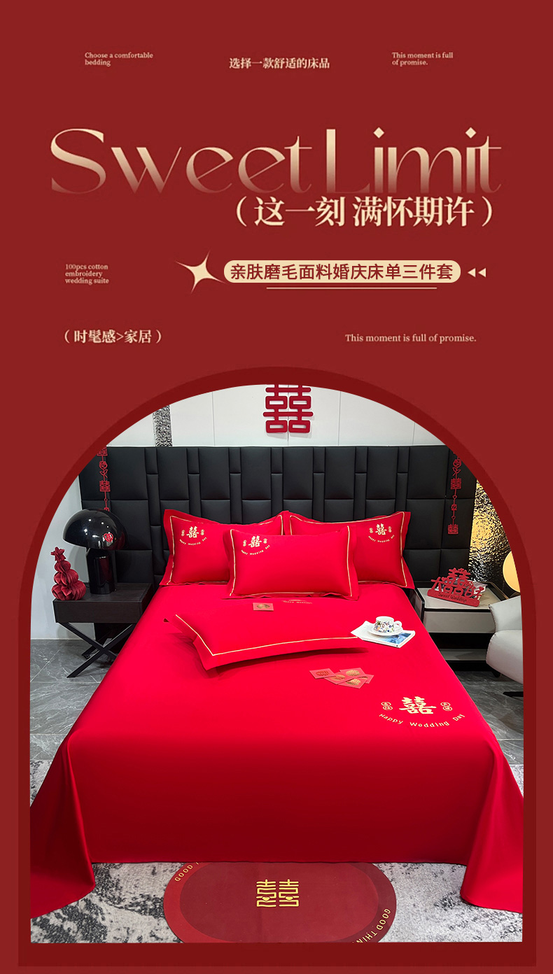 (总)极梦家纺 2025新款轻奢简约水洗磨毛婚庆系列单品床单大红床单,喜结良缘,喜事连连,百年好合,双喜临门
