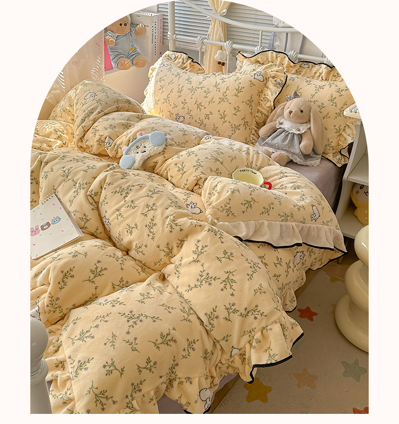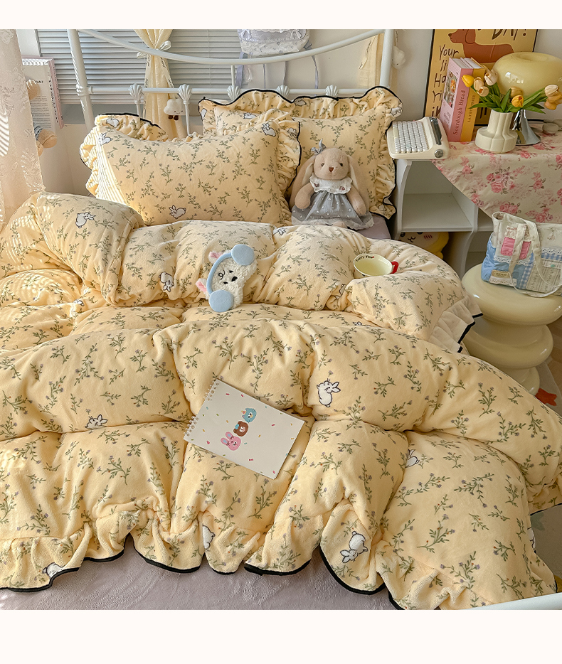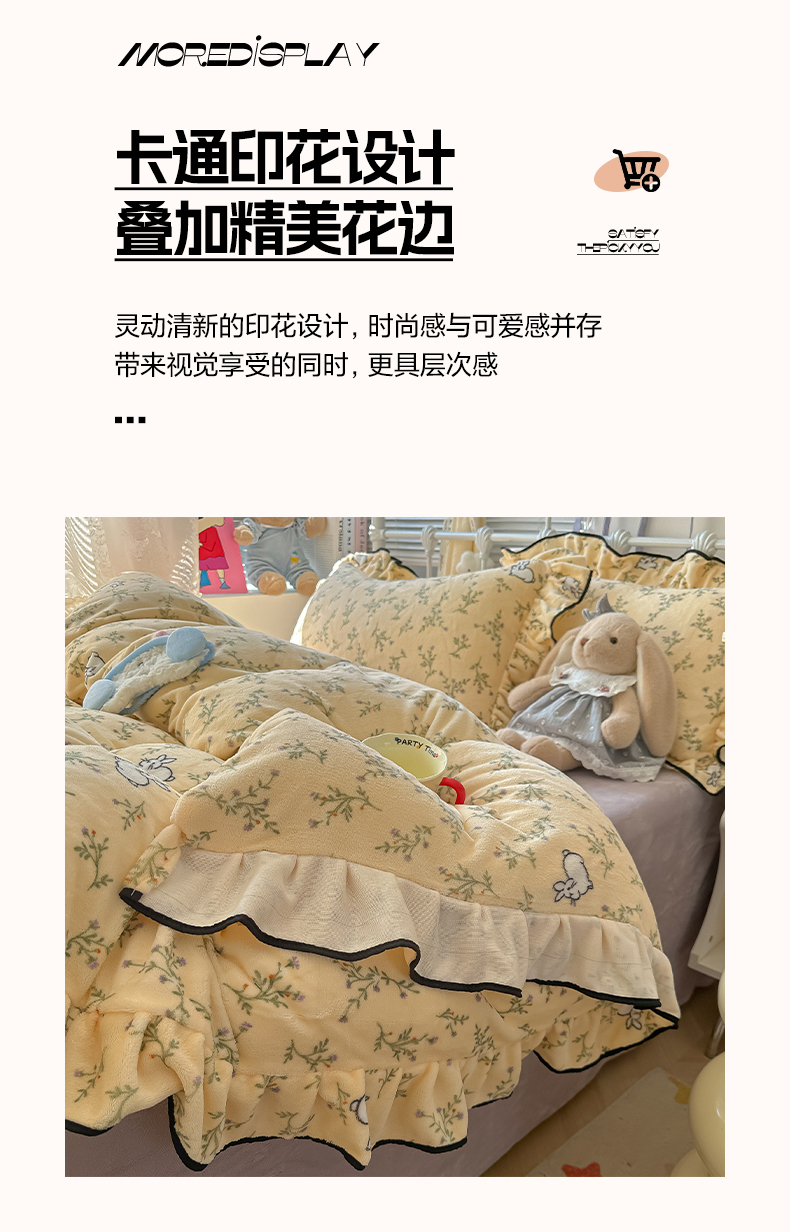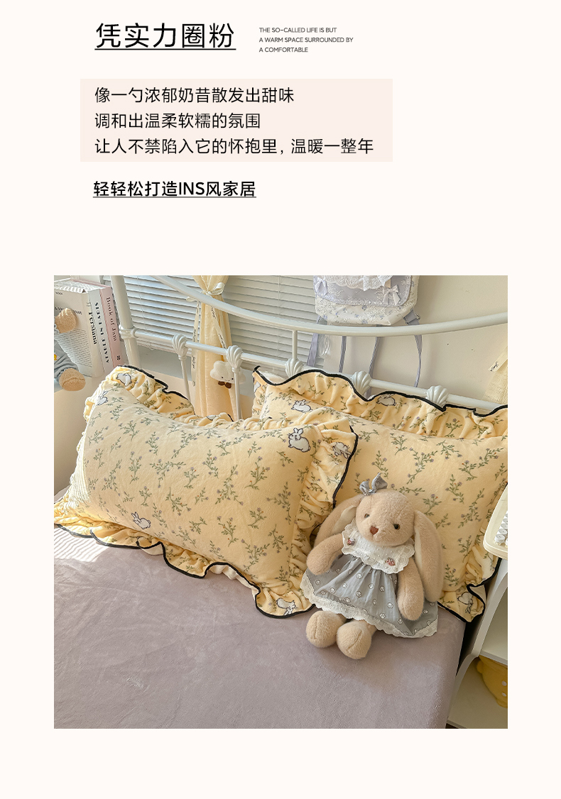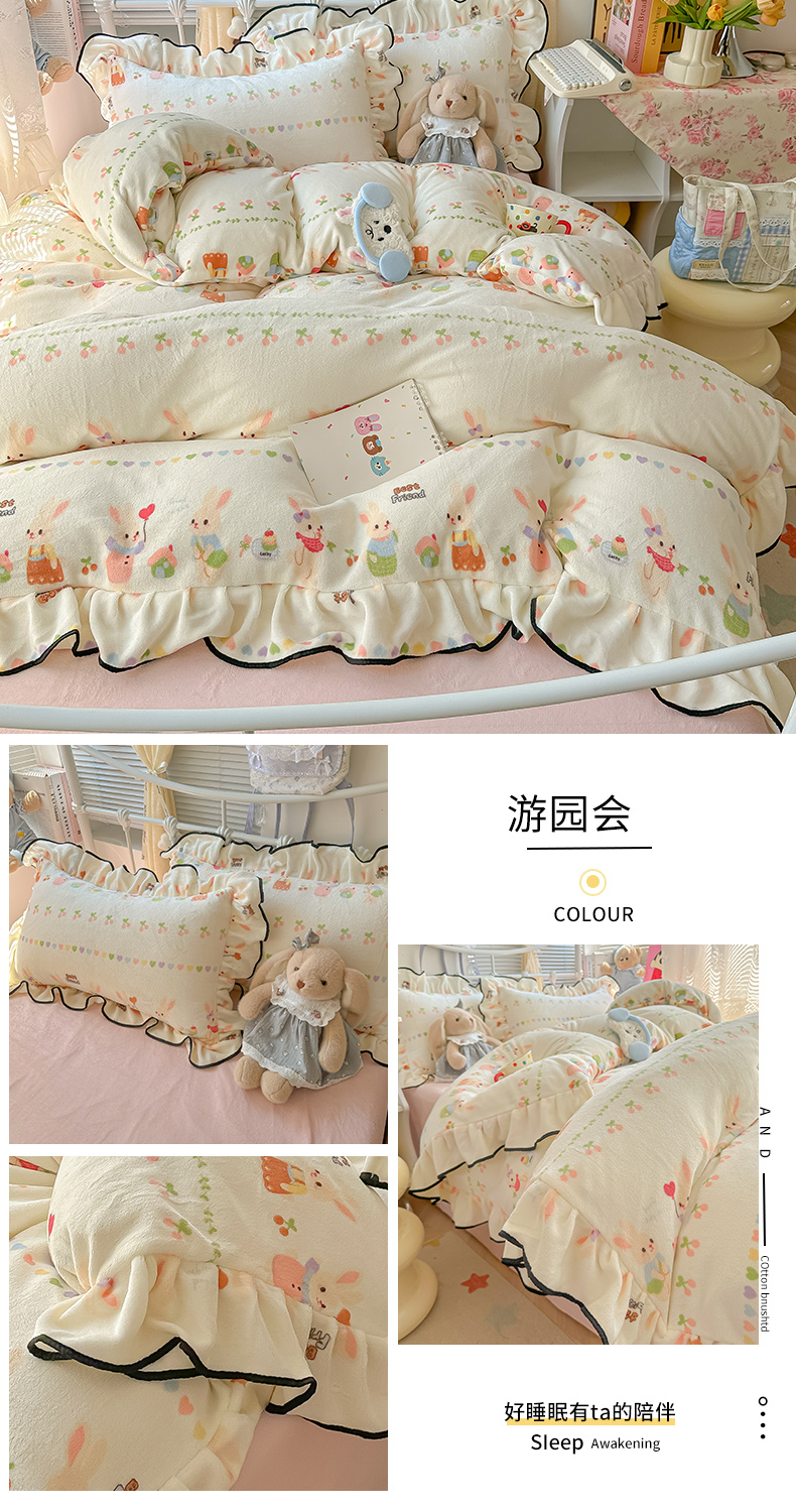 当前位置: 91家纺网 > 商品网购 > 床品套件 > 四件套 > 牛奶绒四件套 > 韩都家居 2025新款亲肤舒适韩版温暖牛奶绒四件套-花边款 香草兔