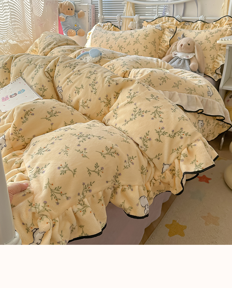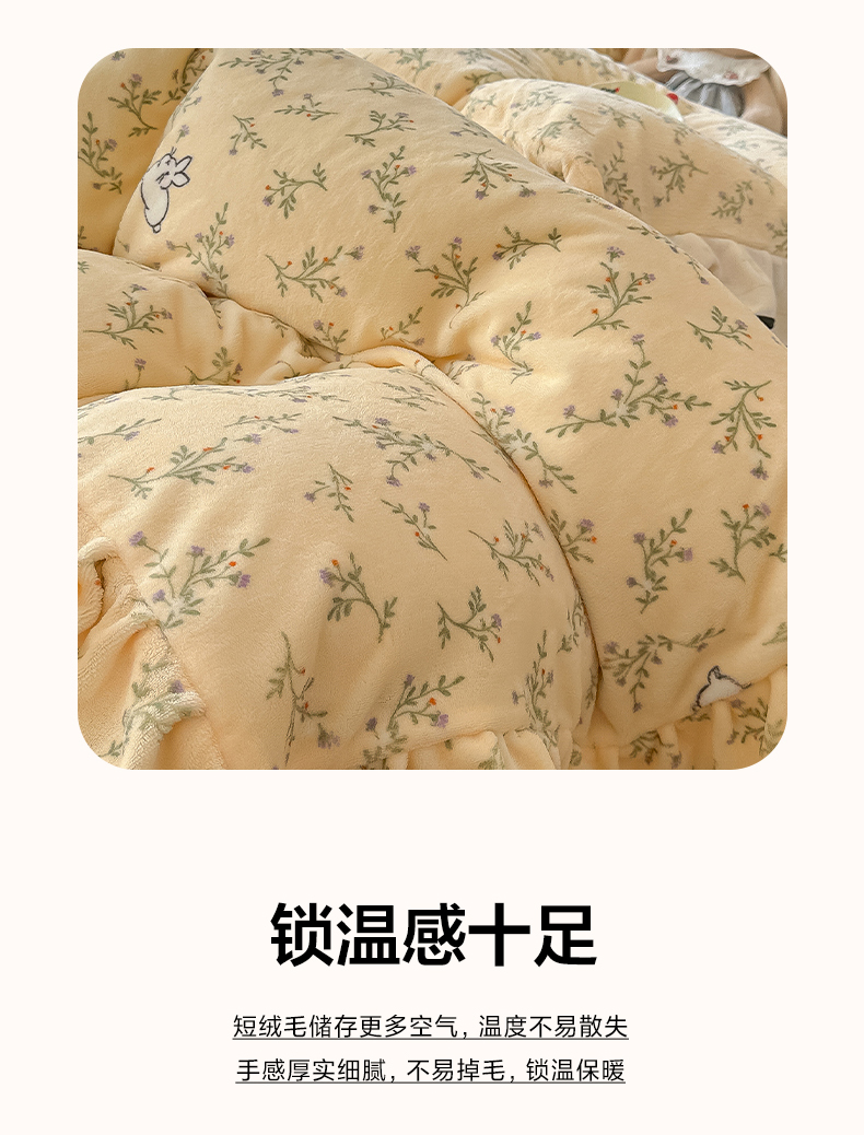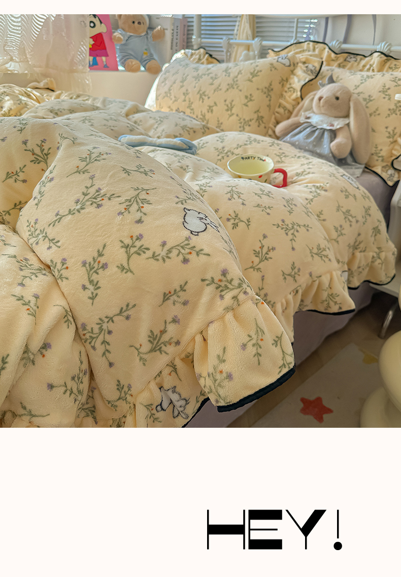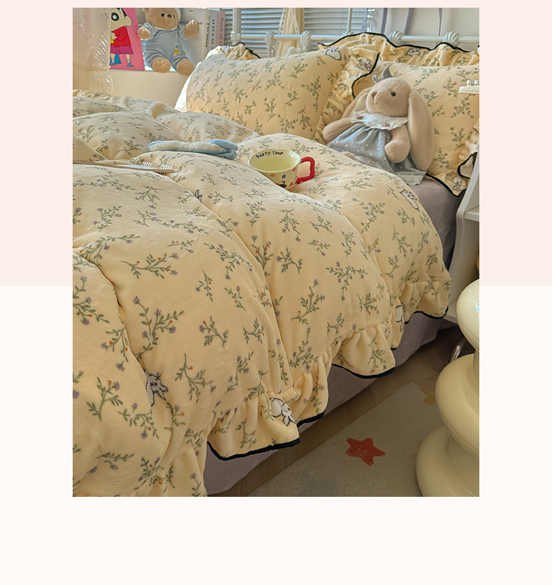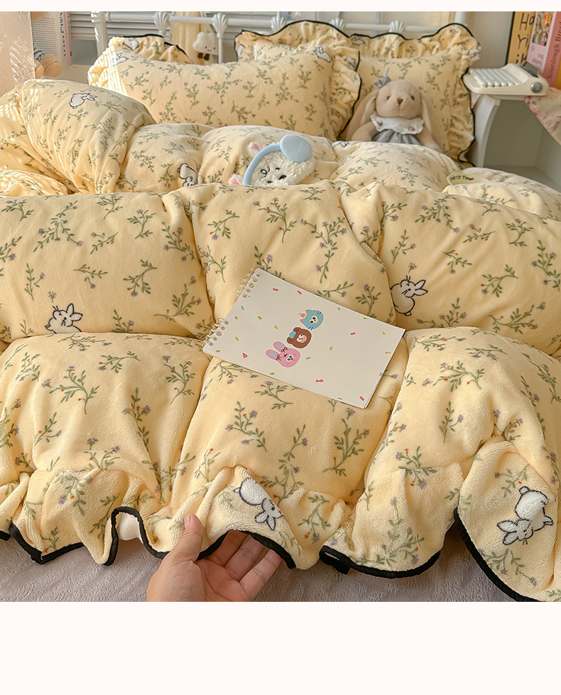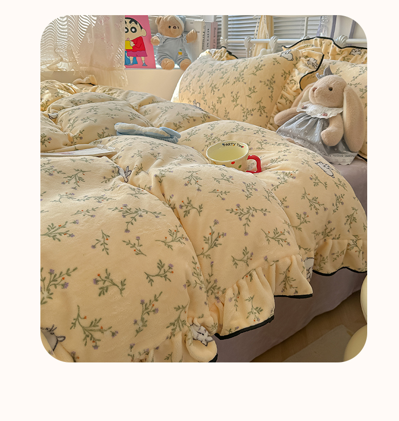 当前位置: 91家纺网 > 商品网购 > 床品套件 > 四件套 > 牛奶绒四件套 > 韩都家居 2025新款亲肤舒适韩版温暖牛奶绒四件套-花边款 香草兔