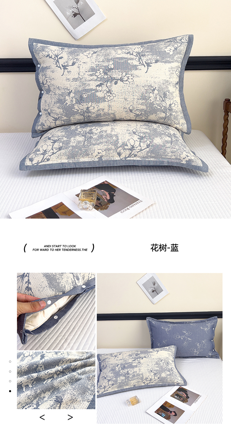 (总)悦然毛巾被 2025新款全棉四层提花纱布美拉德凤格枕套,花蝶红,花蝶咖,花蝶蓝,蔓叶咖,蔓叶蓝,蔓叶棕,玫瑰格调咖,玫瑰格调棕,素布花灰,素布花蓝,野韵,野韵棕,组合
