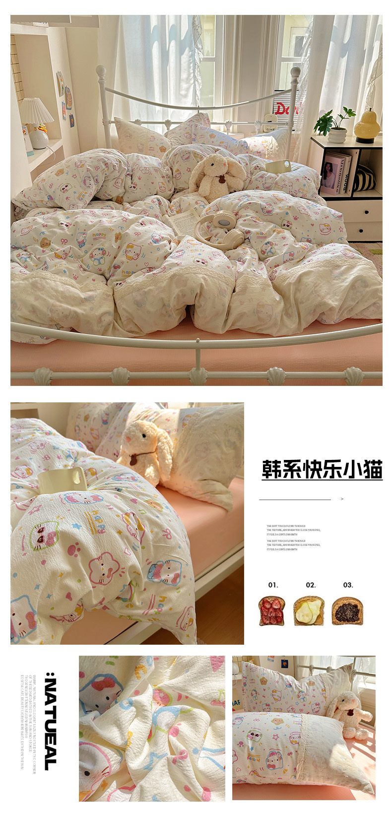 当前位置: 91家纺网 > 商品网购 > 床品套件 > 四件套 > 双层纱四件套 > 花伞家居 2025新款A类韩系蕾丝花边云感木棉双层纱四件套(提供买家秀) 韩系热恋城堡