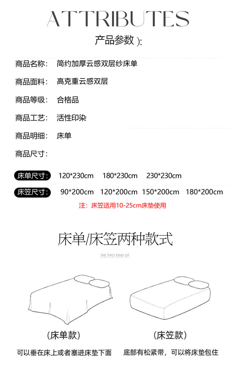 120*230cm床单+枕套一只