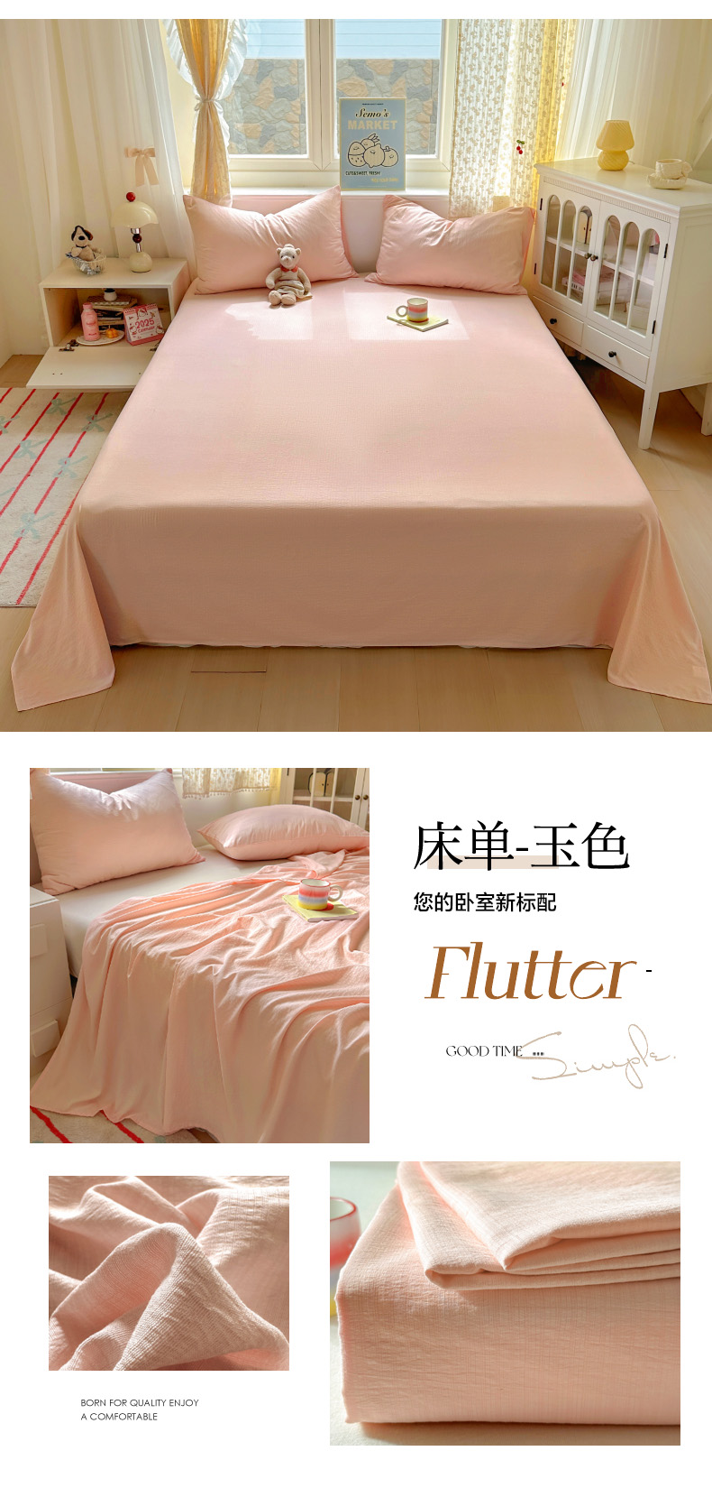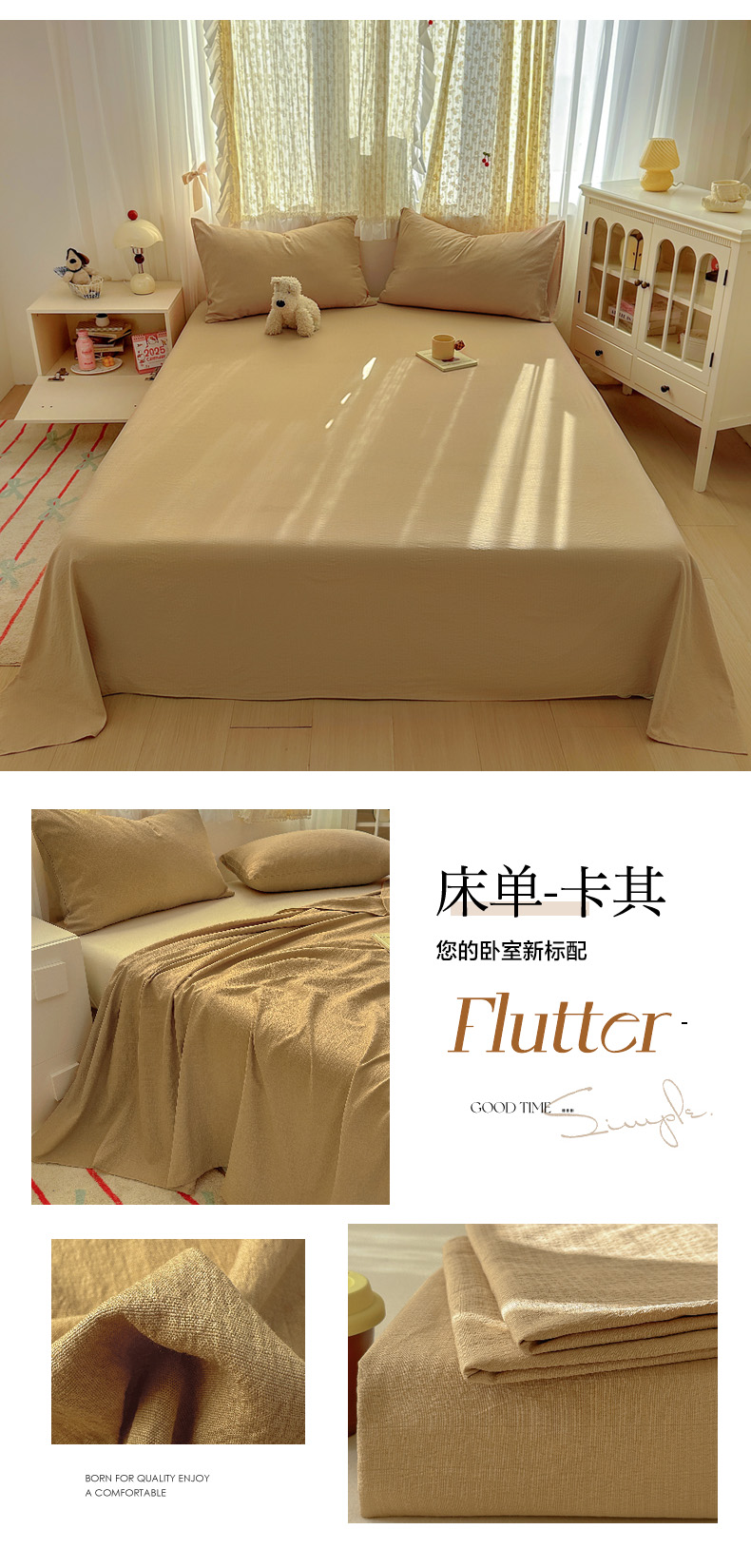 • 91家纺网 家纺一手货源 找家纺 (总)花伞家居 2025新款A类高克重云感木棉双层纱单床单(提供买家秀),松烟灰,粉豆沙,风信紫,涧石蓝,卡其,茉莉黄,玉色