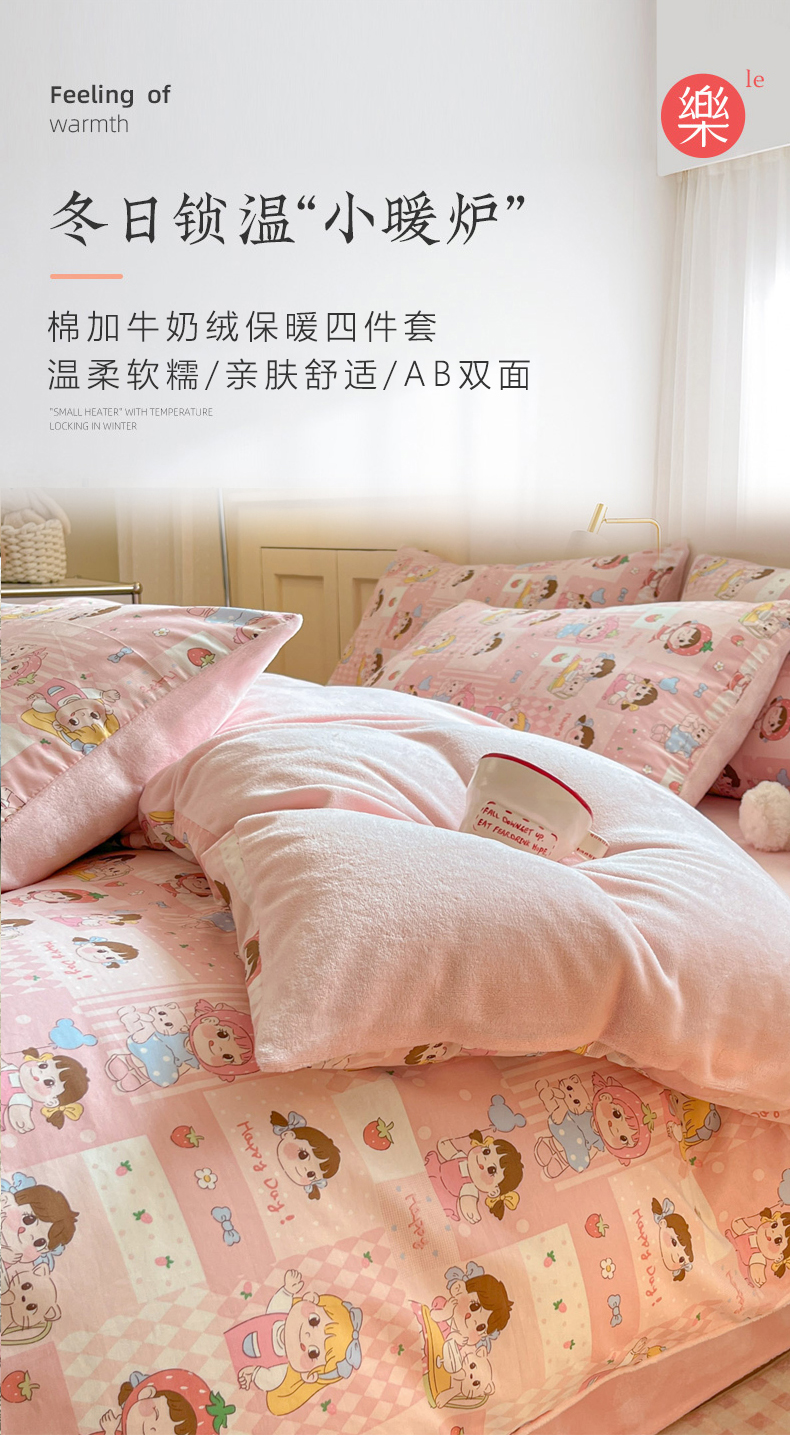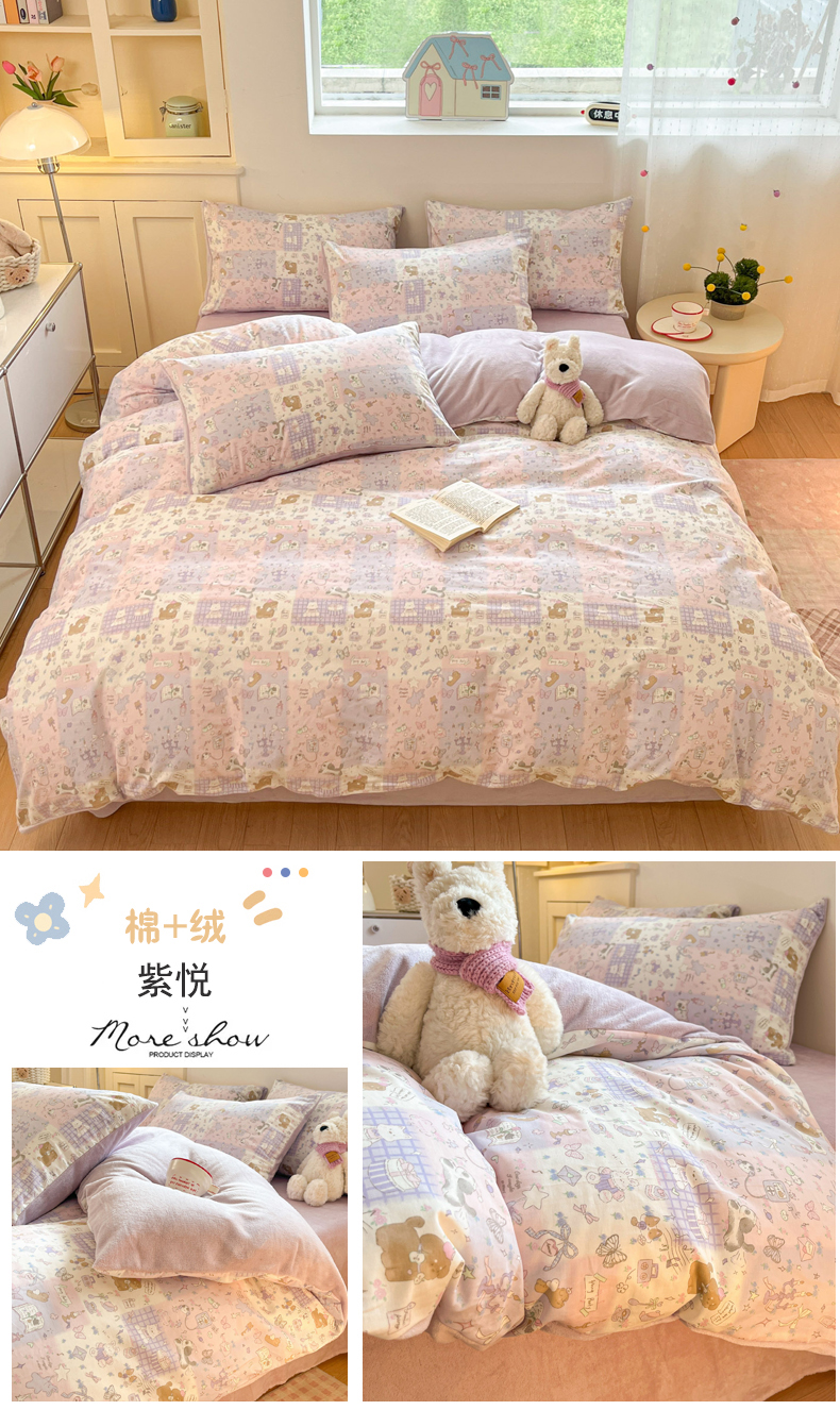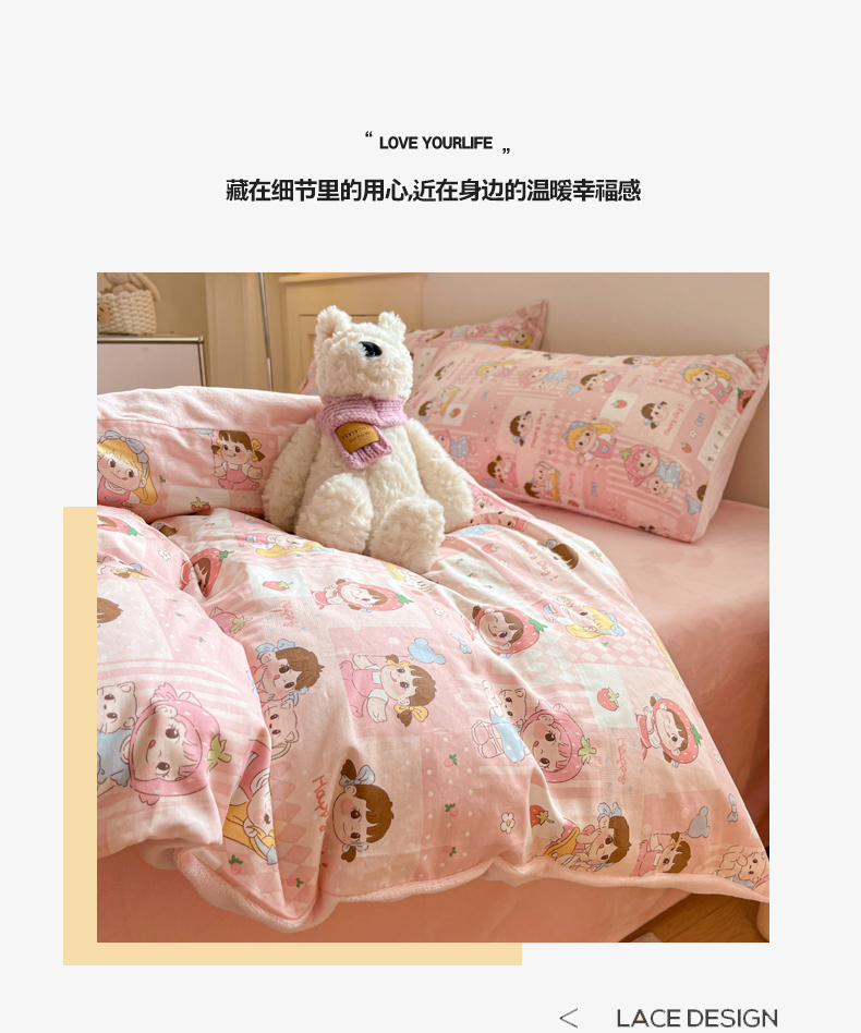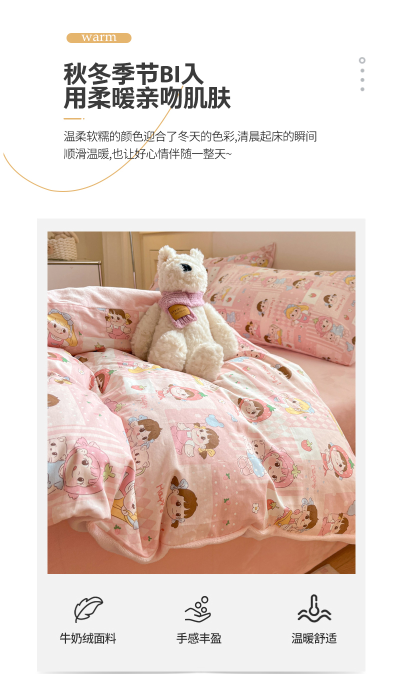 当前位置: 91家纺网 > 商品网购 > 床品套件 > 四件套 > 牛奶绒四件套 > 麦伦家居 2025秋冬新款多功能床品全棉+牛奶绒印花四件套 棒棒糖女孩