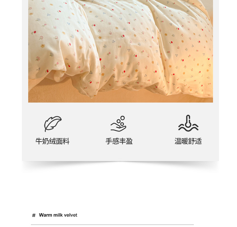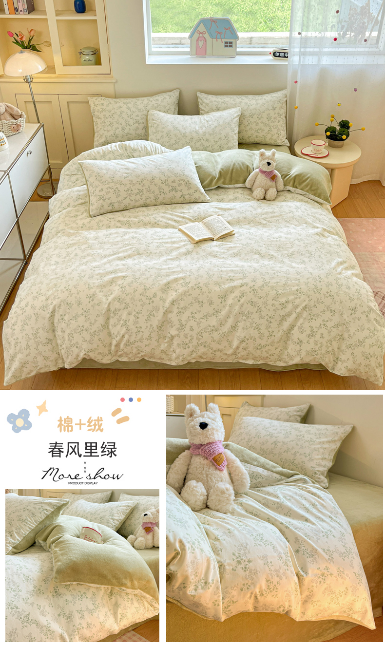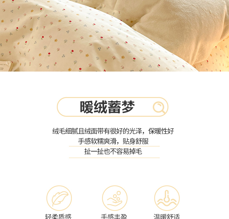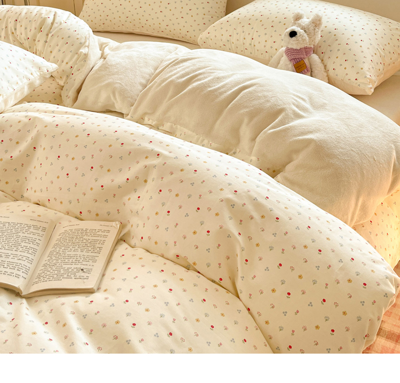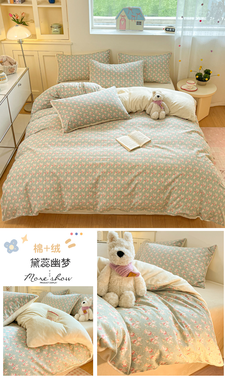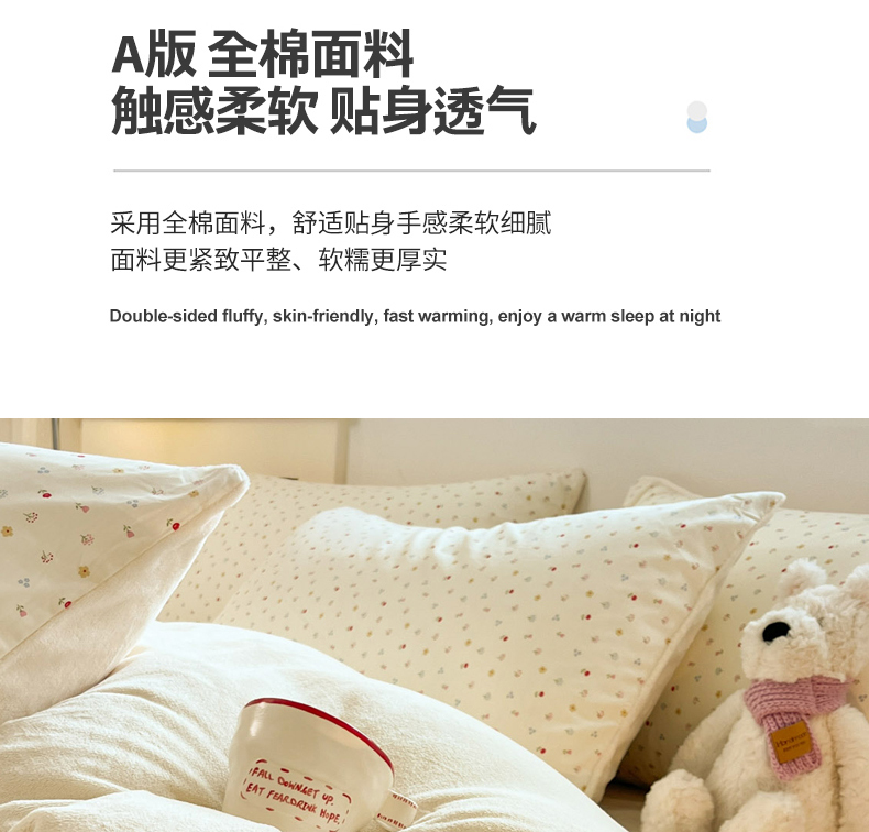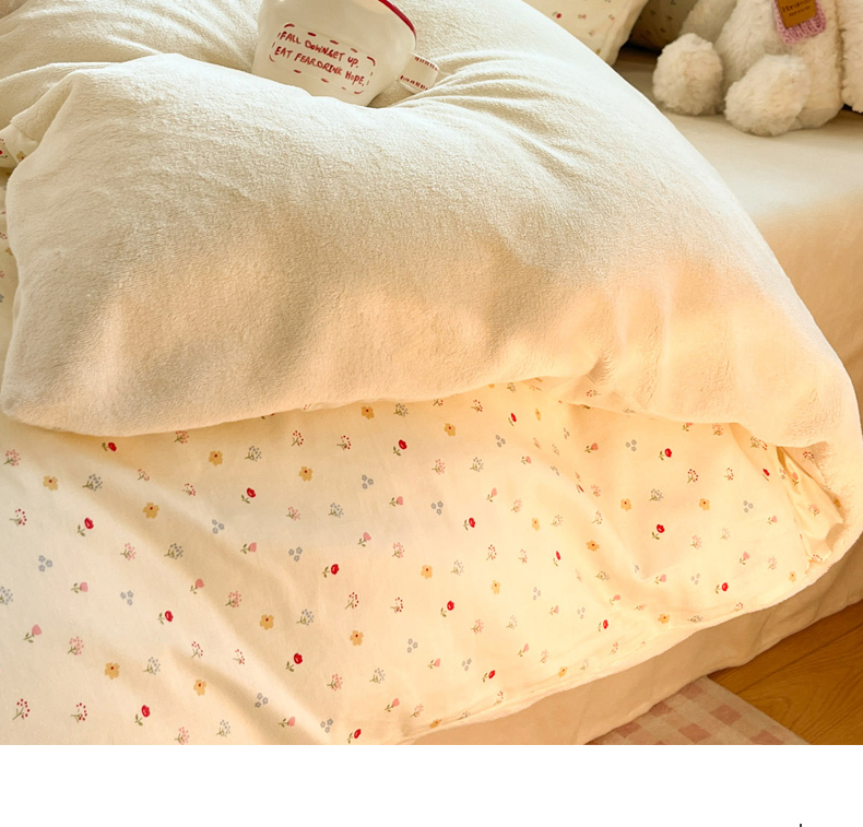 当前位置: 91家纺网 > 商品网购 > 床品套件 > 四件套 > 牛奶绒四件套 > 麦伦家居 2025秋冬新款多功能床品全棉+牛奶绒印花四件套 奶油小花