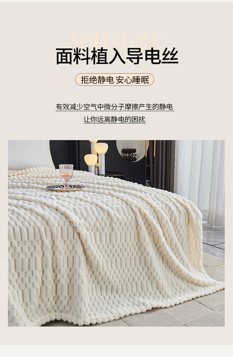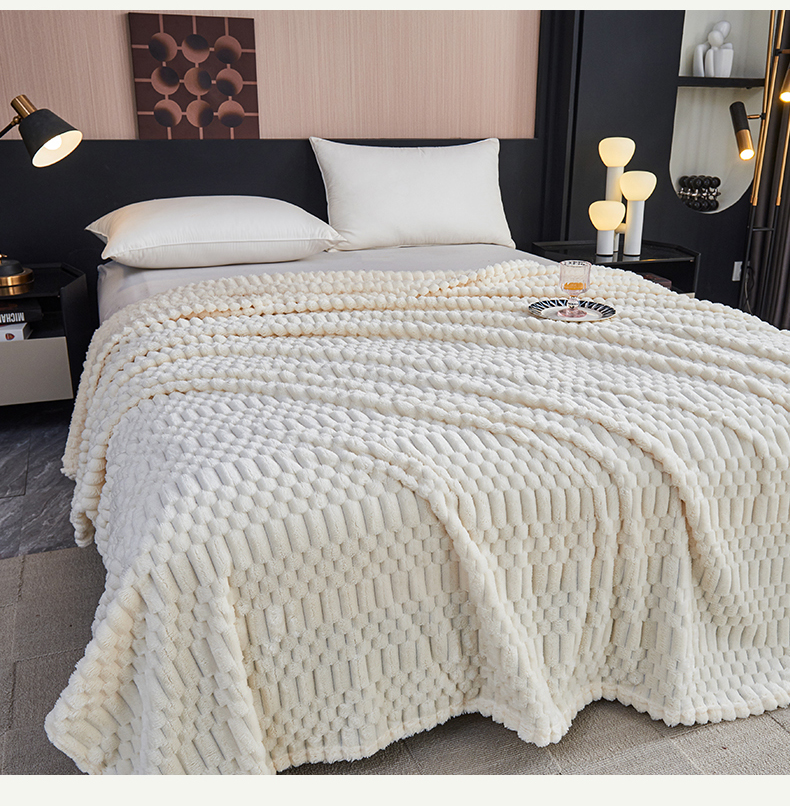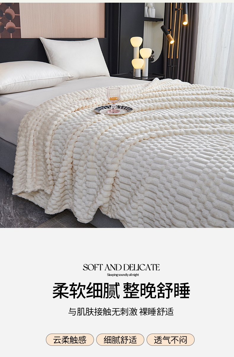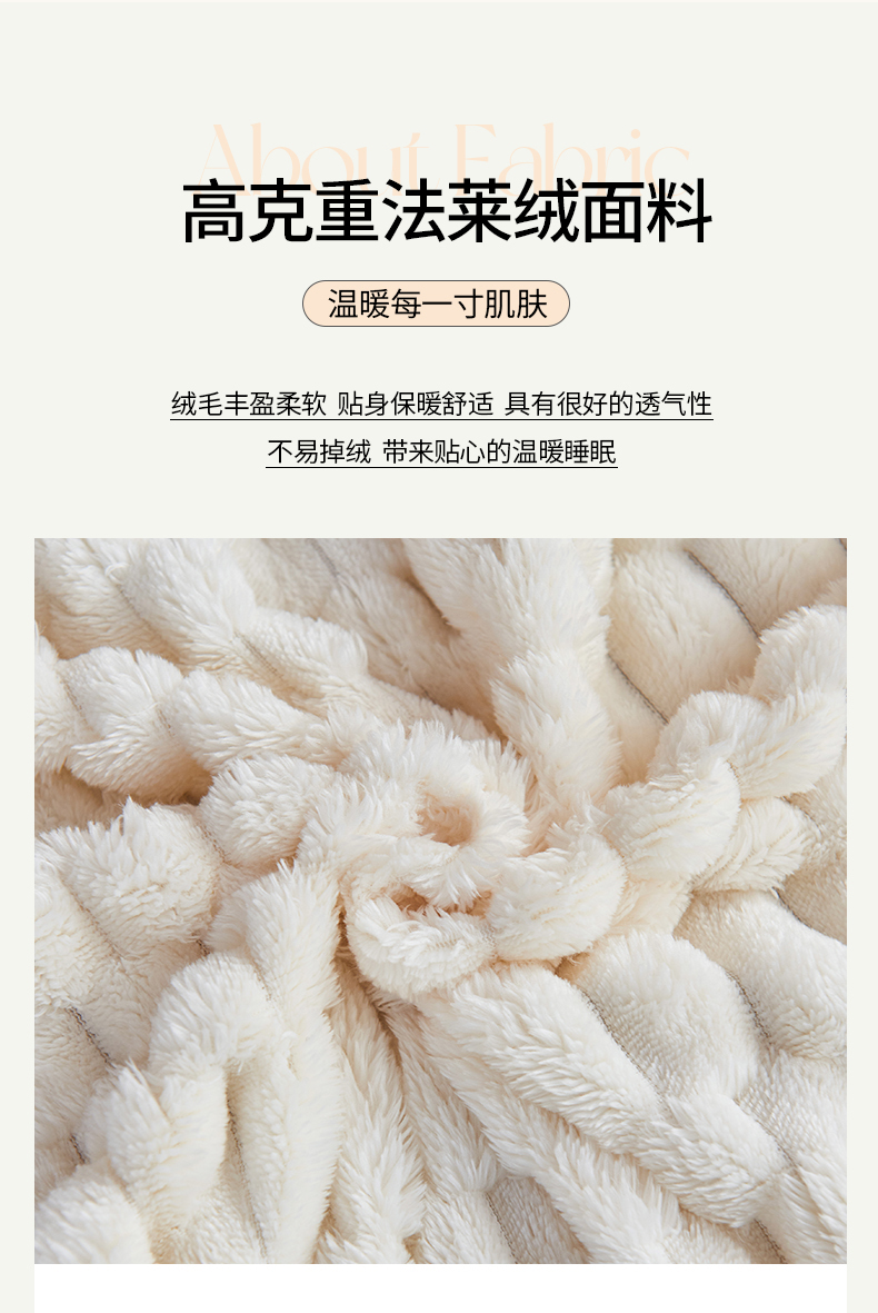 枋梢家纺 2025新款福禄抽条法兰绒牛奶绒高克重毯空调小毯子毛毯盖毯 福禄抽条毛毯-米白