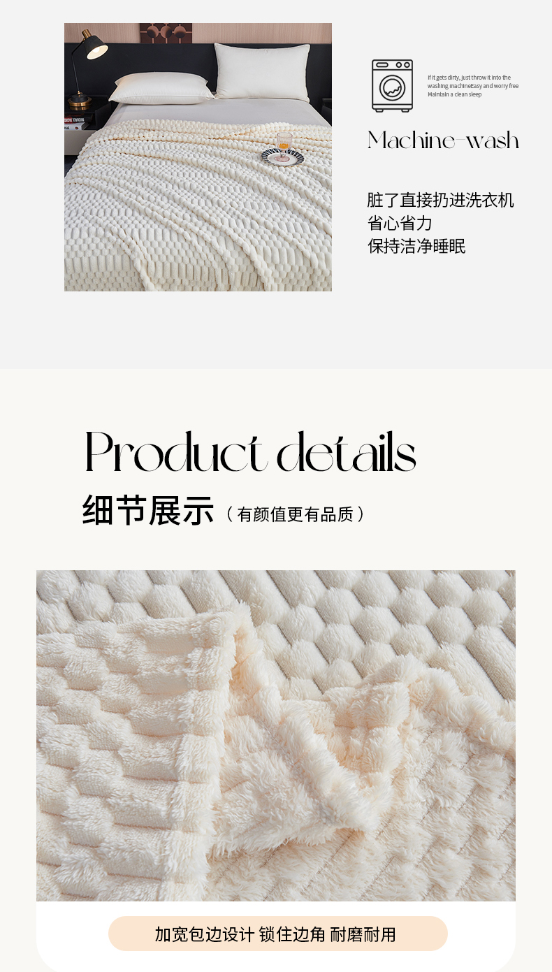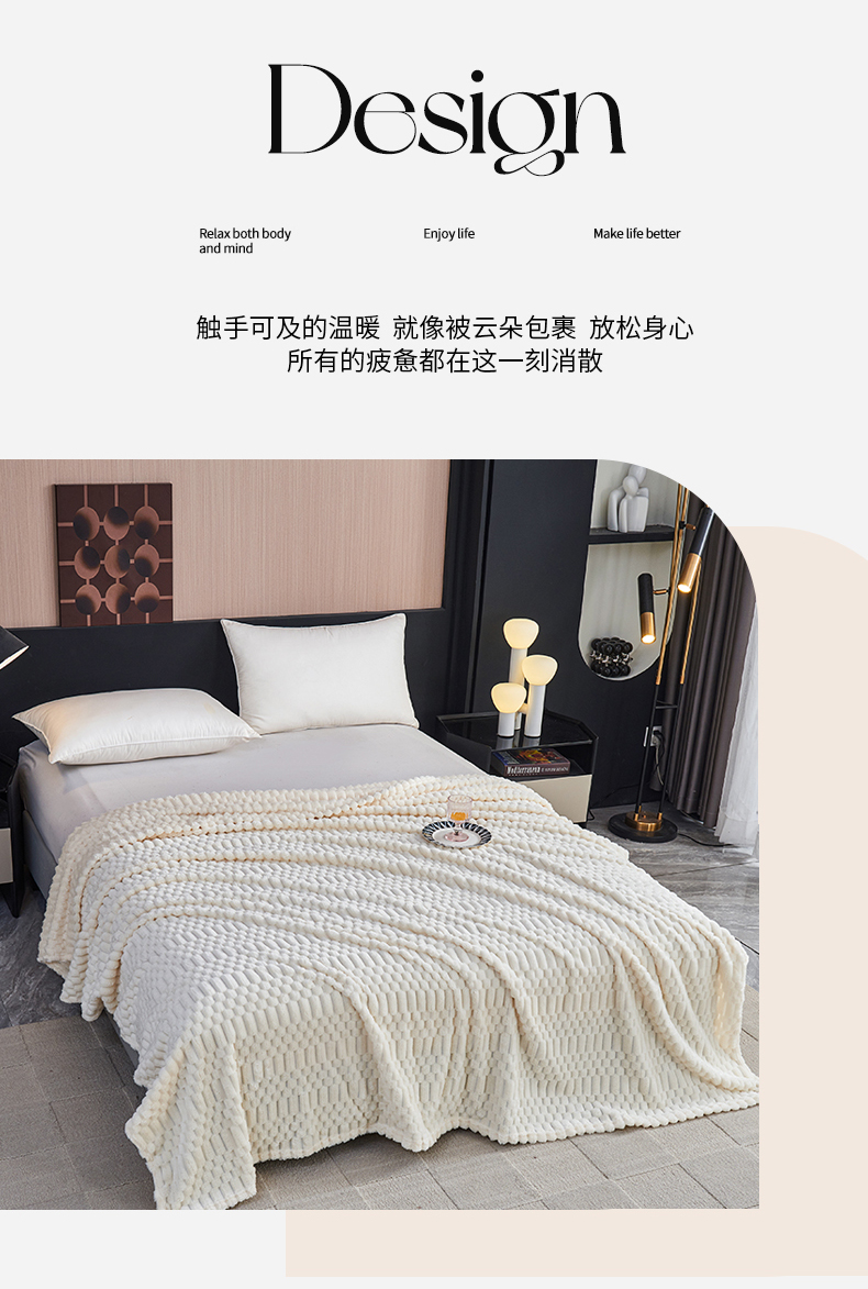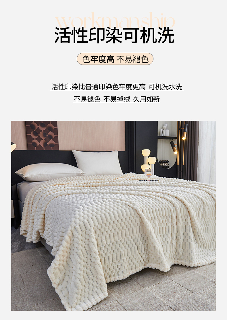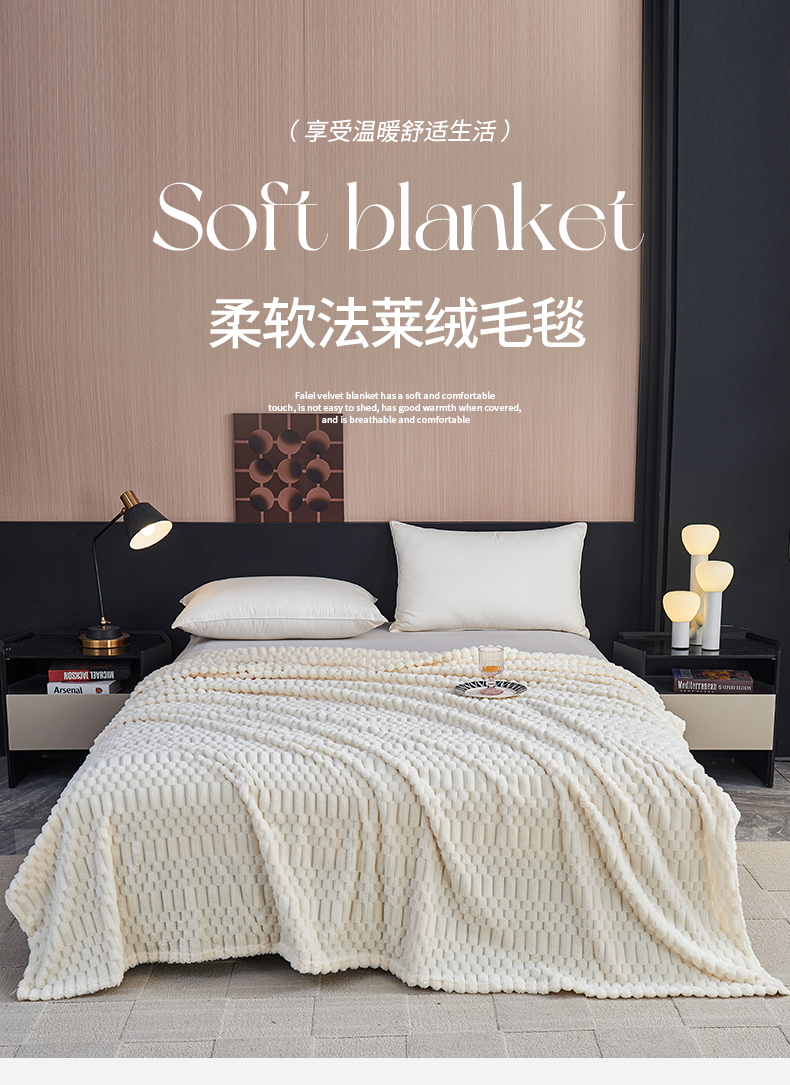 枋梢家纺 2025新款福禄抽条法兰绒牛奶绒高克重毯空调小毯子毛毯盖毯 福禄抽条毛毯-米白