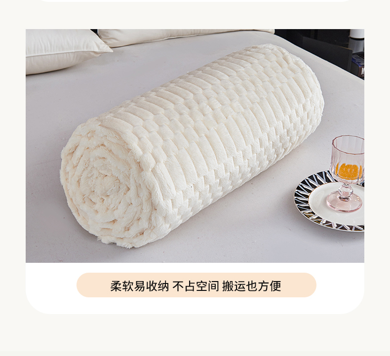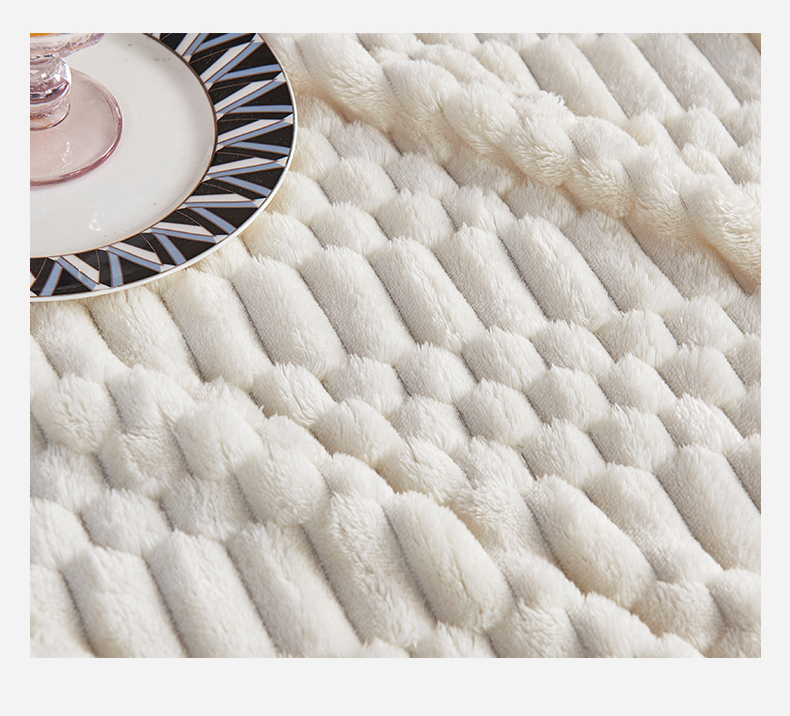 商品名称:枋梢家纺 2025新款福禄抽条法兰绒牛奶绒高克重毯空调小毯子毛毯盖毯 福禄抽条毛毯-米白