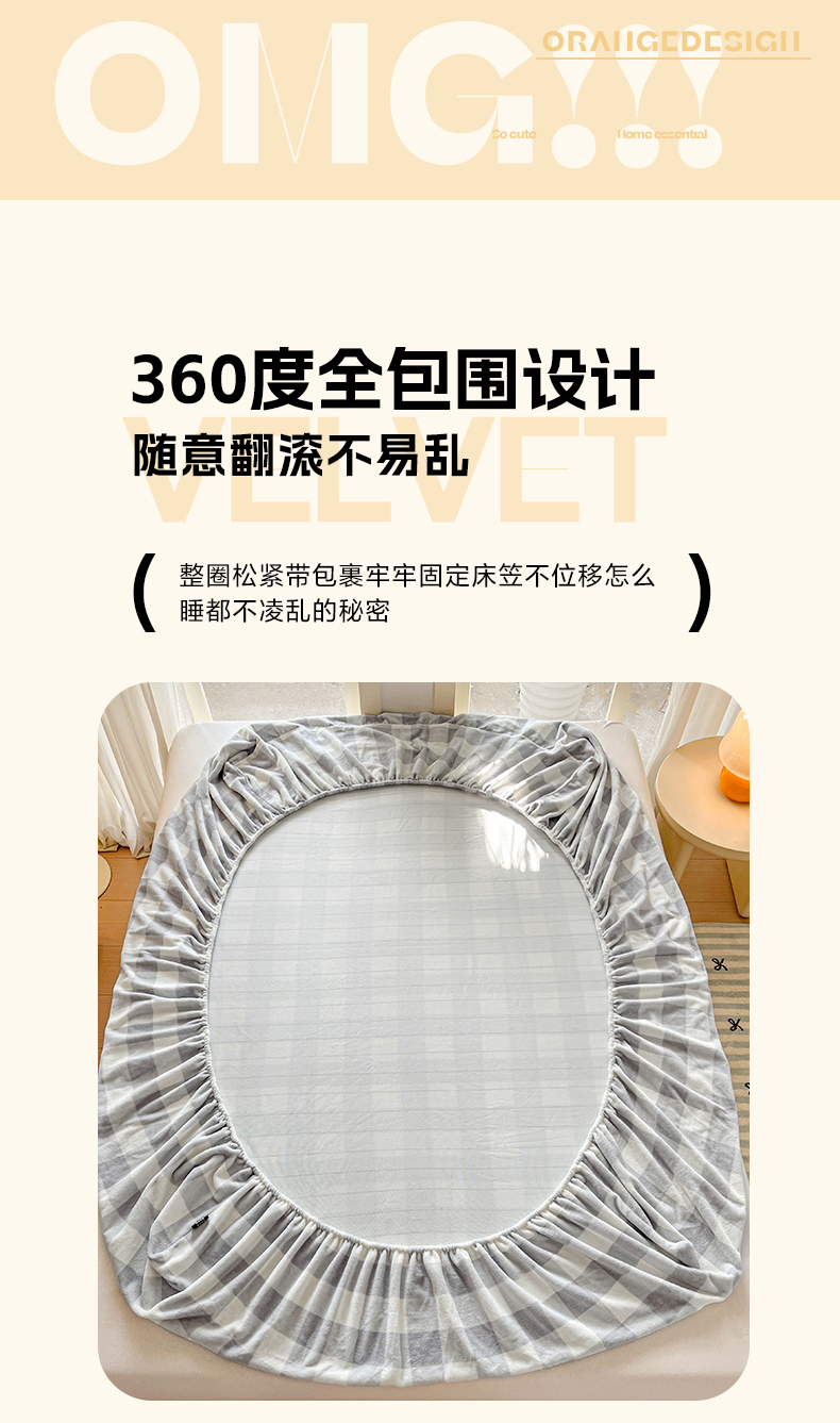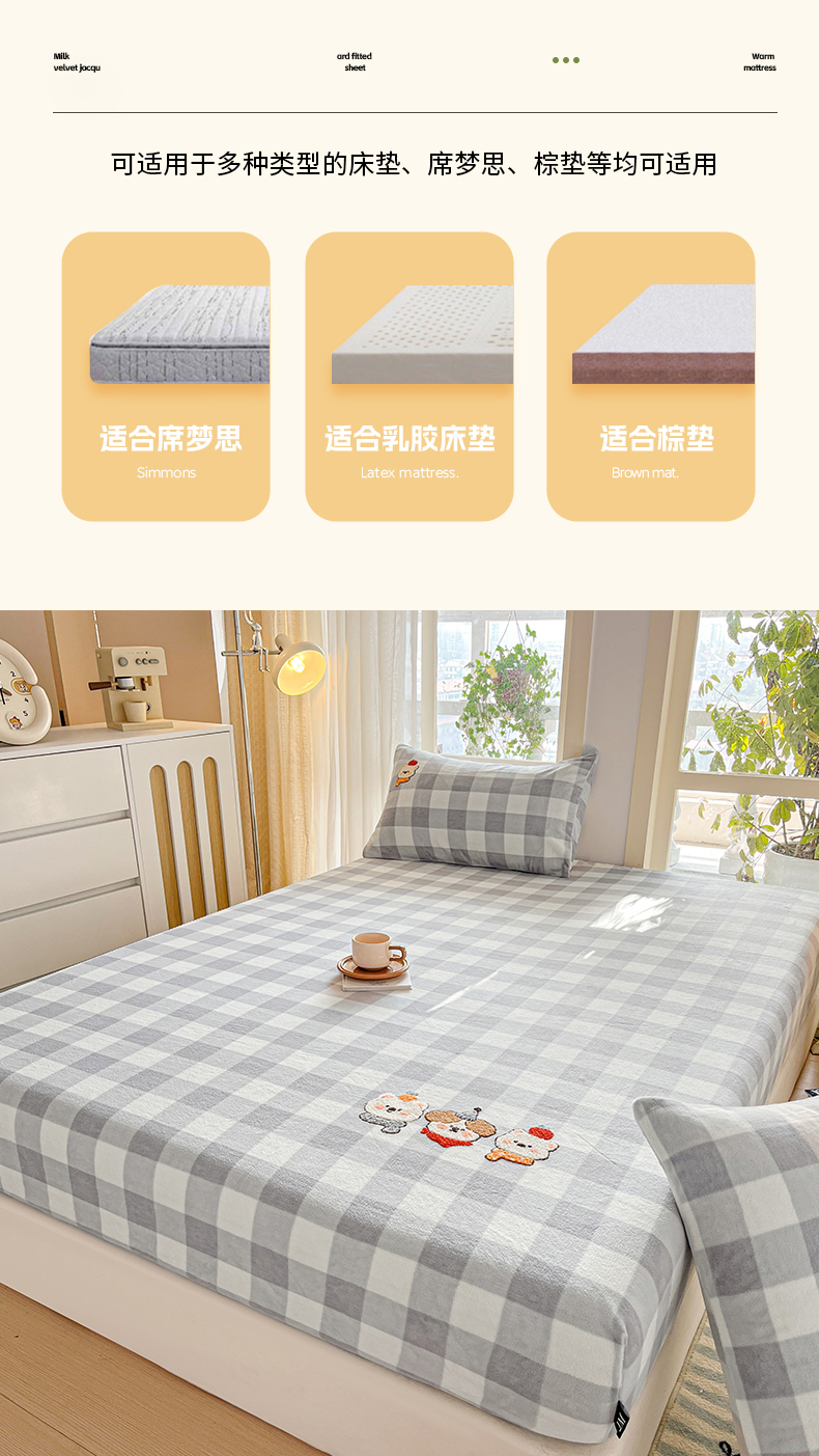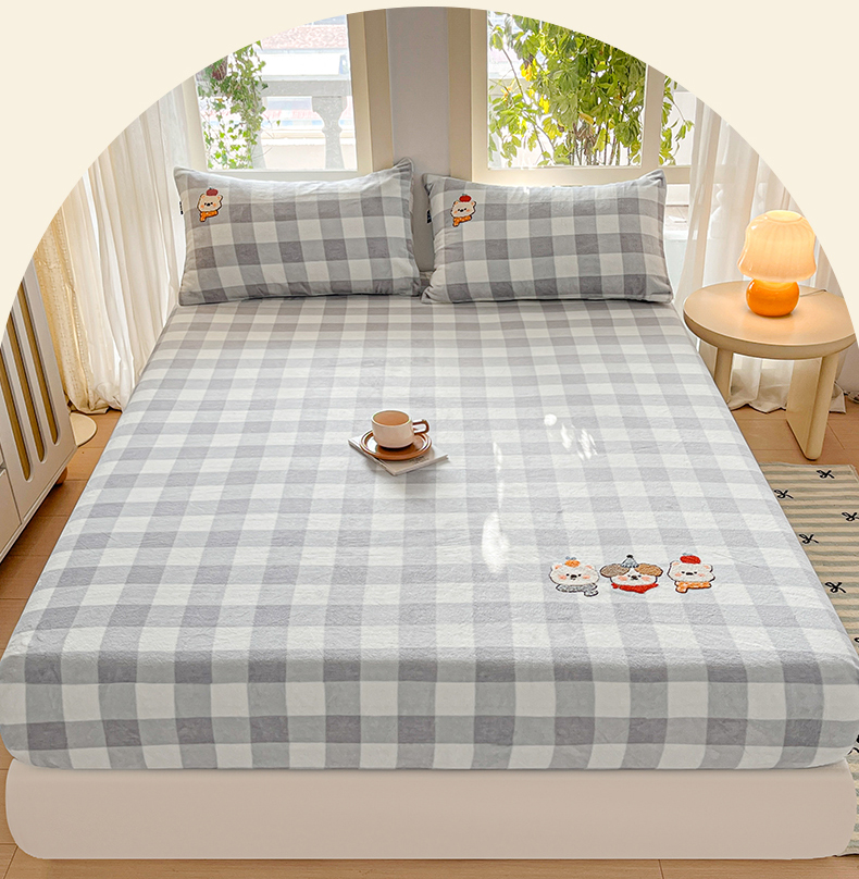 佳汐蓝家纺 2025新款秋冬220克毛巾绣绣牛奶绒床笠三件套 美好生活