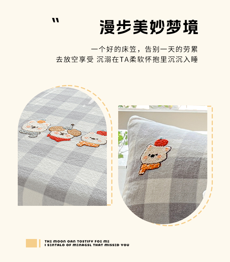 商品名称:佳汐蓝家纺 2025新款秋冬220克毛巾绣绣牛奶绒床笠三件套 美好生活