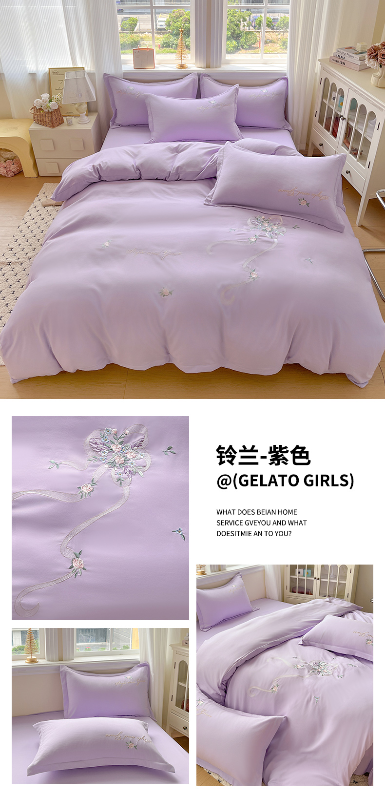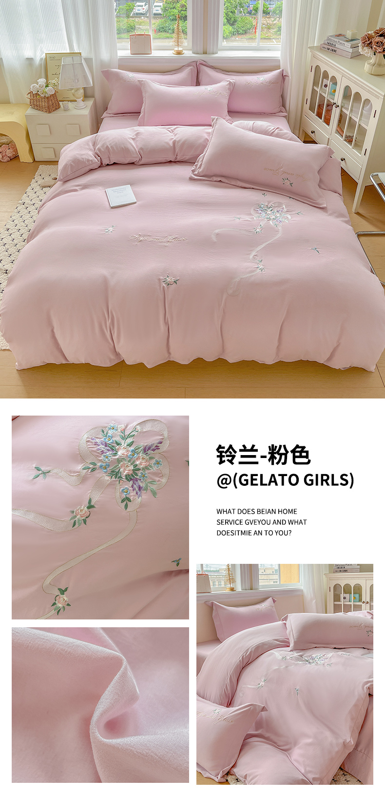 (总)文黛家居 2025新款高克重水洗棉绣花四件套-铃兰,铃兰-粉,铃兰-果绿,铃兰-灰,铃兰-浅蓝,铃兰-紫