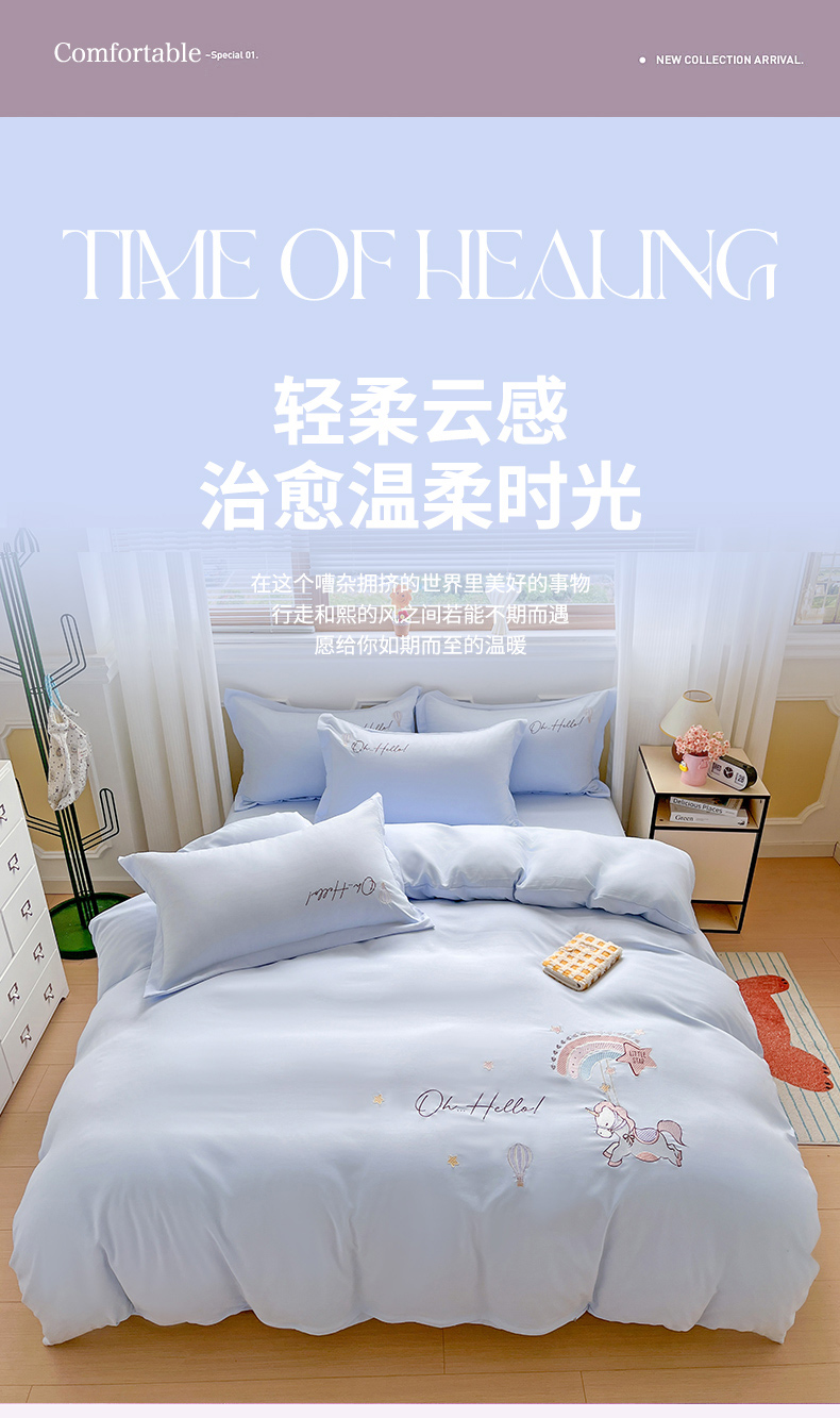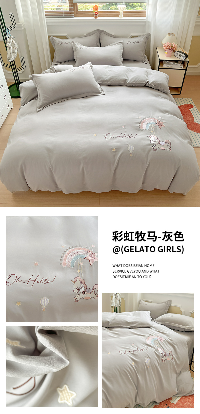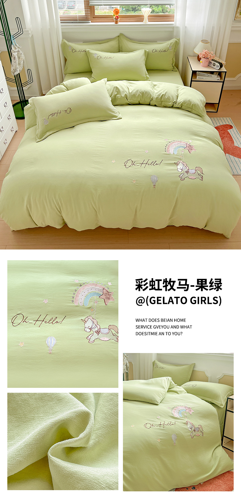 (总)文黛家居 2025新款高克重水洗棉绣花四件套-彩虹牧马,彩虹牧马-粉,彩虹牧马-果绿,彩虹牧马-灰,彩虹牧马-浅蓝,彩虹牧马-紫