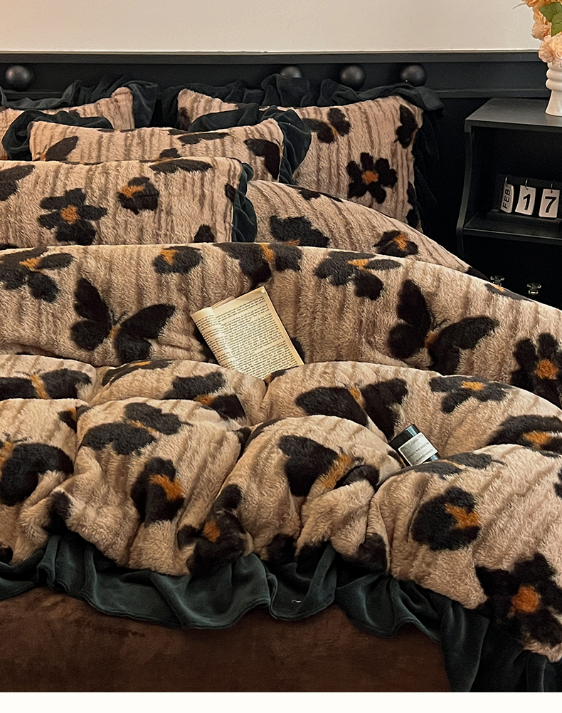 (总)晚爱家居 2025新款韩版黑色花边美拉德兔毛绒四件套高克重皮草兔绒牛奶绒四件套,黑边-豹纹,黑边-黑蝴蝶,黑边-花园粉,黑边-灰色枫叶,黑边-玫瑰,黑边-花韵绿,黑边-山茶花,极简,条纹灰,条纹咖