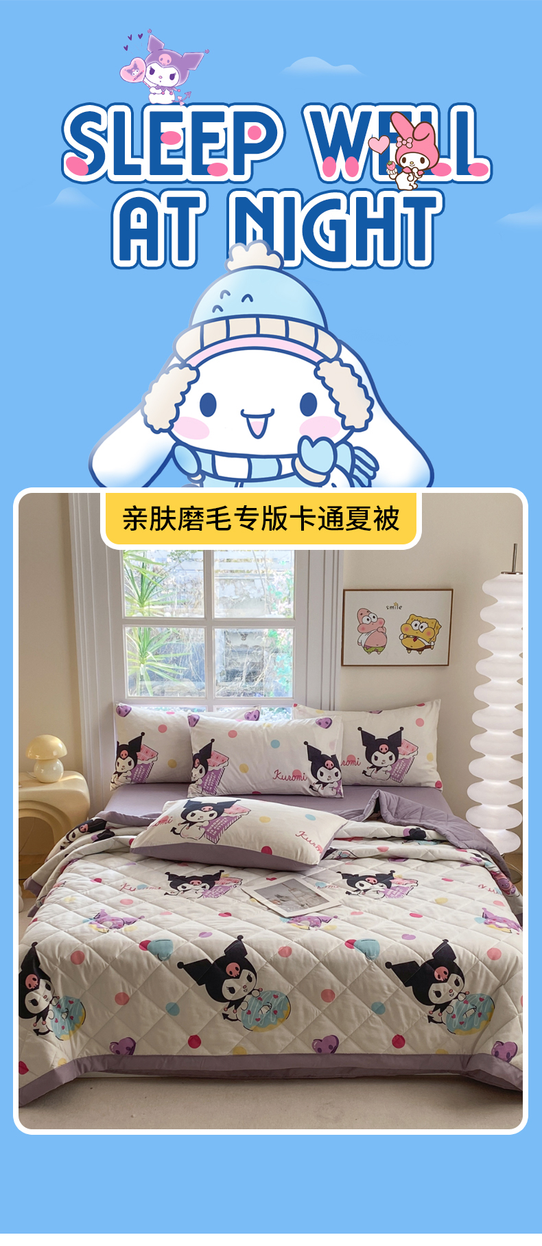 商品名称:一电 2025新款卡通可爱磨毛春夏新品夏凉被子家纺床品儿童幼儿园磨毛夏被 波点库洛米