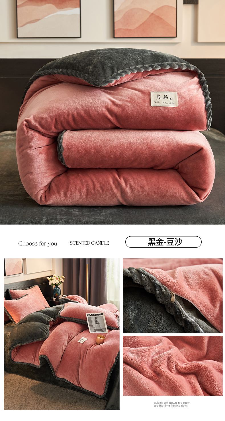 • 91家纺网 家纺一手货源 找家纺 早晨家纺 2025新款黑金牛奶绒纯色可拆洗冬被风格1 黑金-米驼