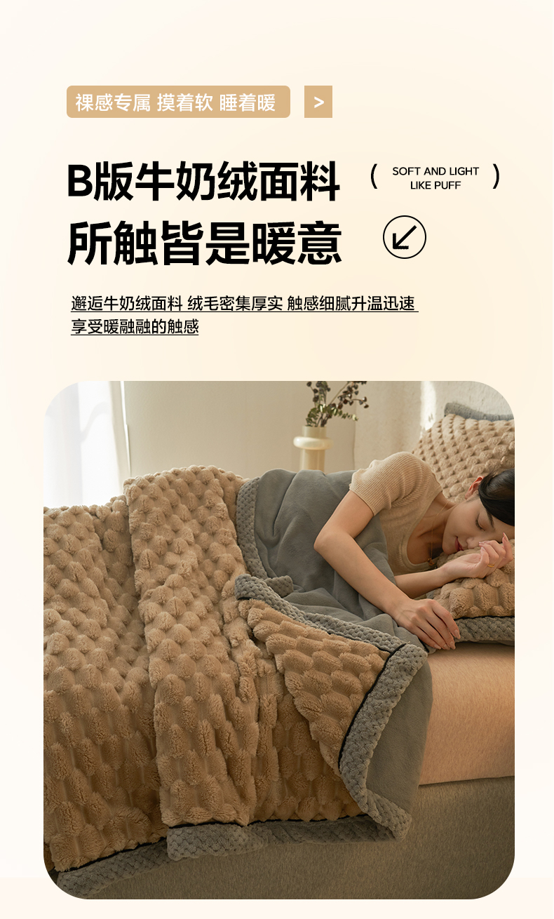 当前位置: 91家纺网 > 商品网购 > 毛毯休闲毯绒毯 > 毛毯 > 早晨家纺 2025新款金贵款-提花双层毛毯【拉链款】 金贵-米驼