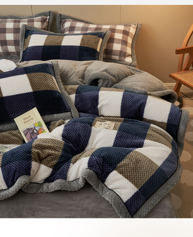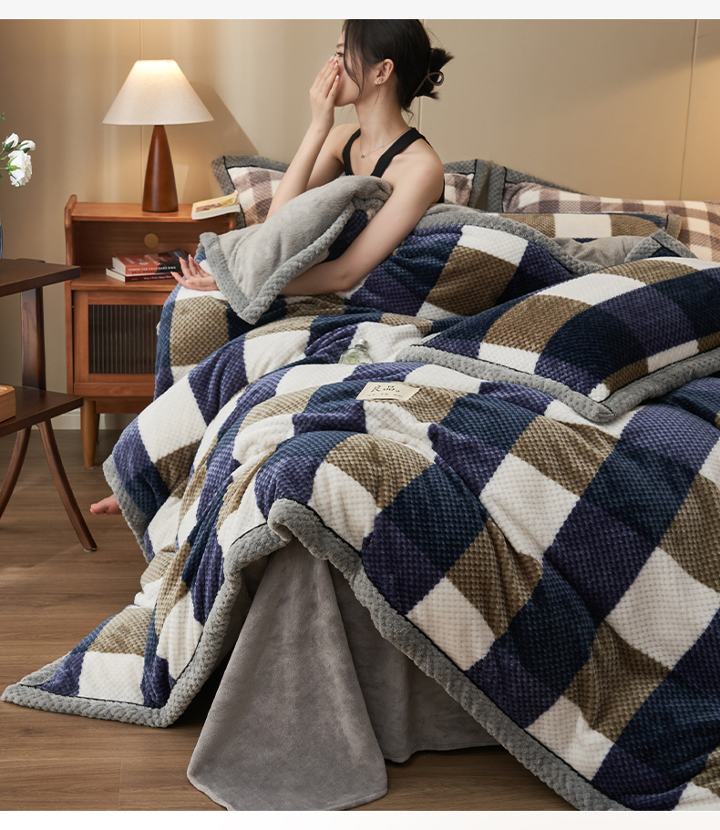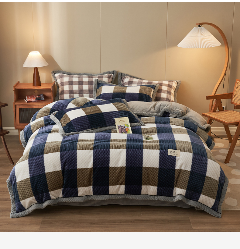 • 91家纺网 家纺一手货源 找家纺 早晨家纺 2025新款豆豆款菠萝格-单被套 豆豆绒-大方格蓝