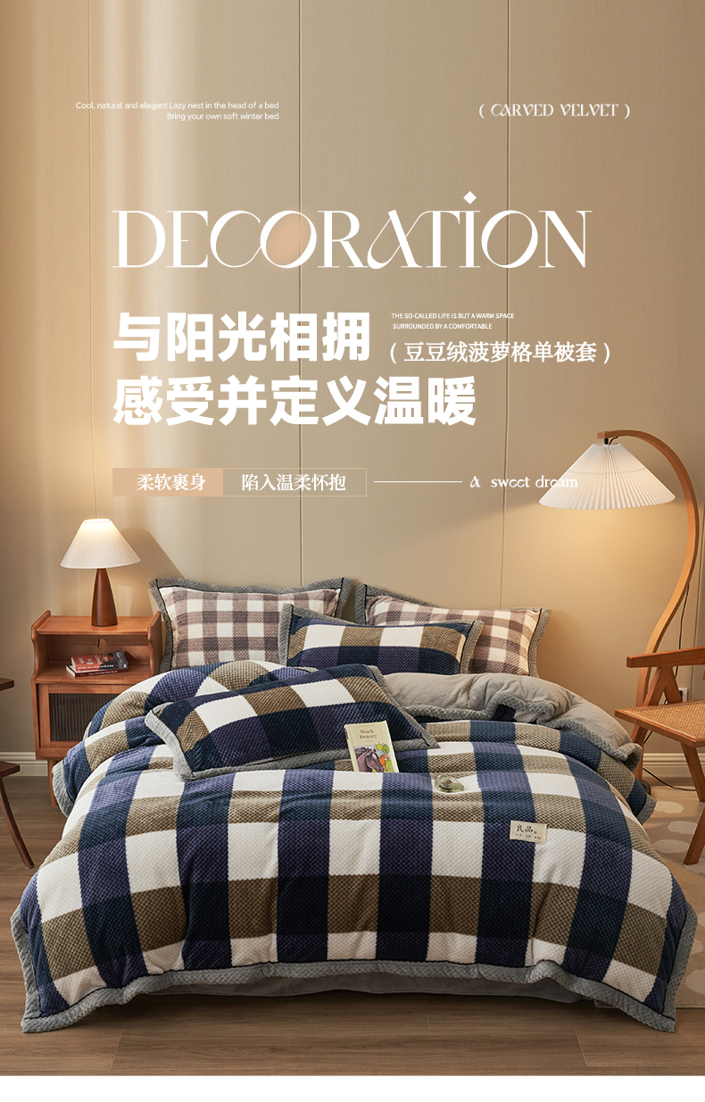 当前位置: 91家纺网 > 商品网购 > 床上用品 > 被套 > 早晨家纺 2025新款豆豆款菠萝格-单被套 豆豆绒-大方格蓝