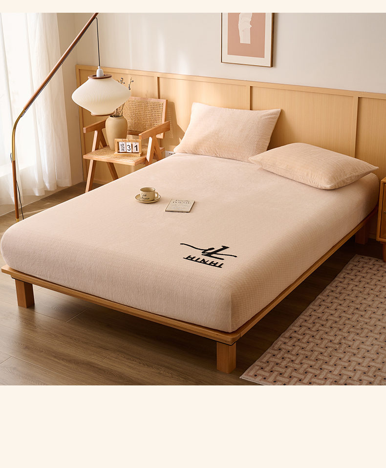 • 91家纺网 家纺一手货源 找家纺 早晨家纺 2025新款流星款高克重牛奶绒阳离子提花兔毛单床笠 流星-豆沙