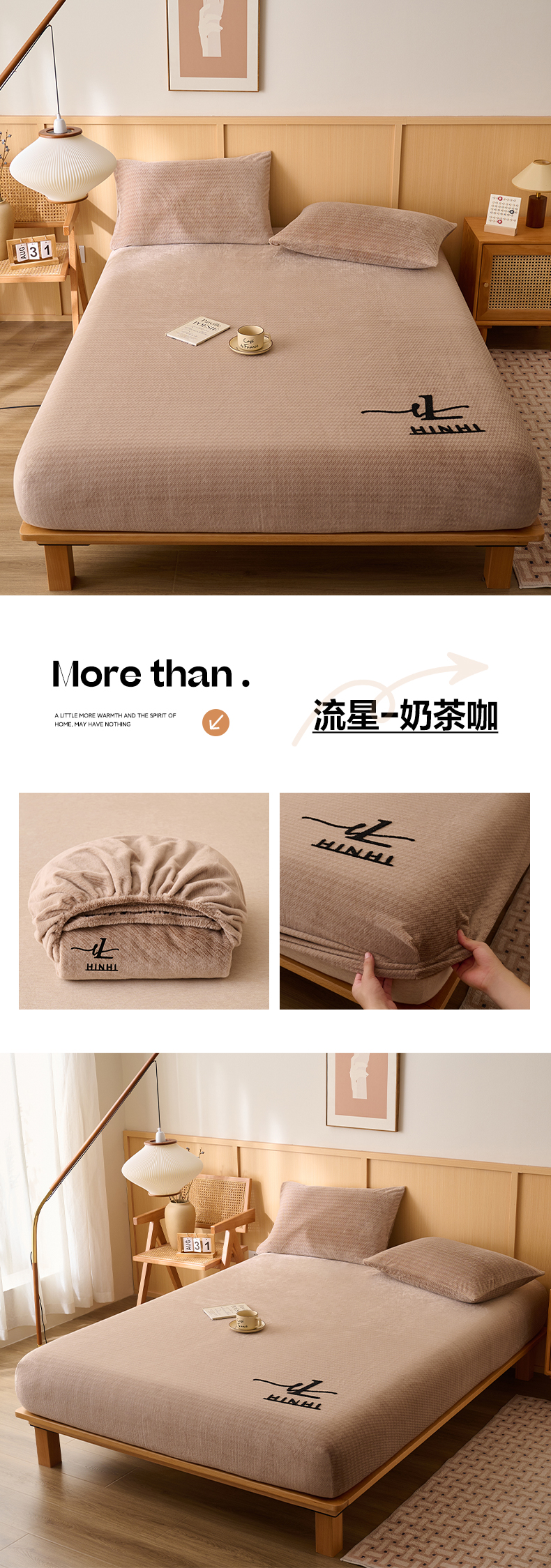 早晨家纺 2025新款流星款高克重牛奶绒阳离子提花兔毛单床笠 流星-豆沙