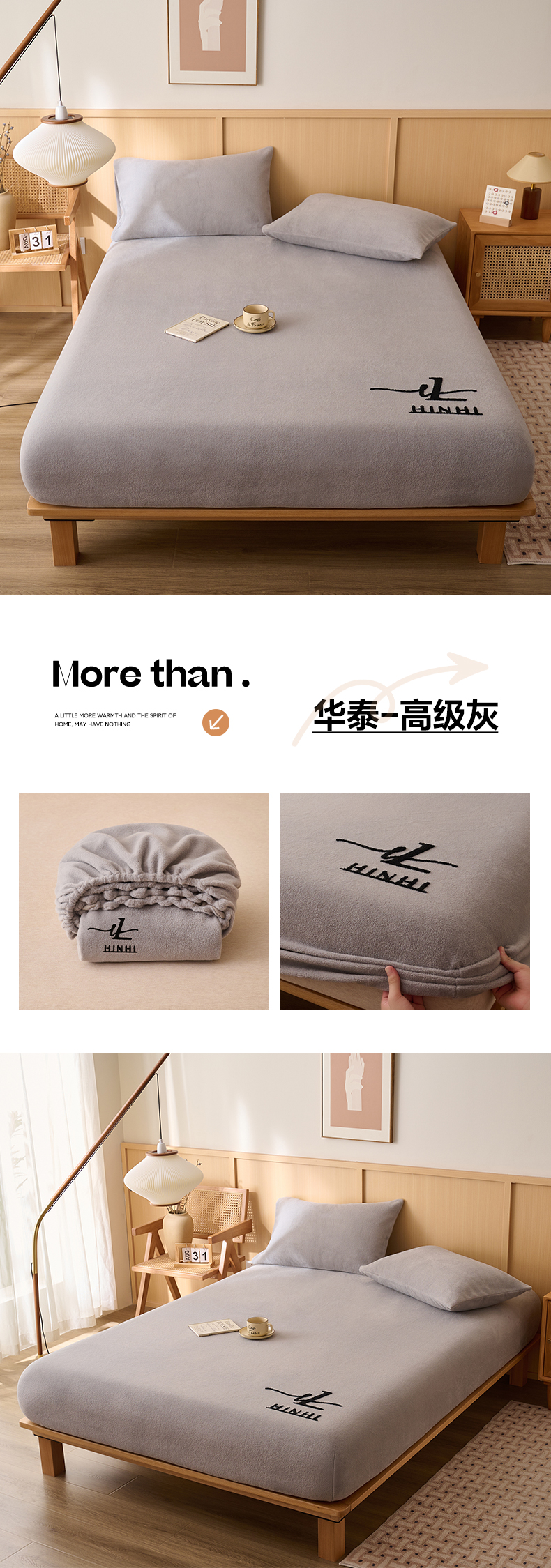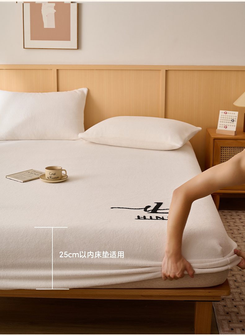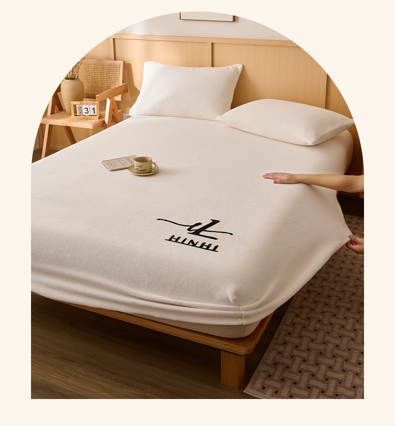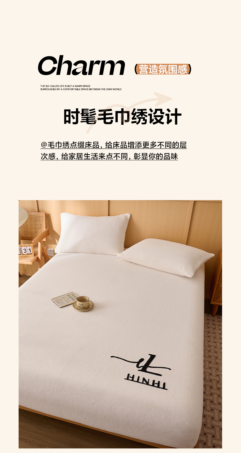 早晨家纺 2025新款华泰款高克重牛奶绒仿羊绒毛巾绣单床笠 华泰-奶白
