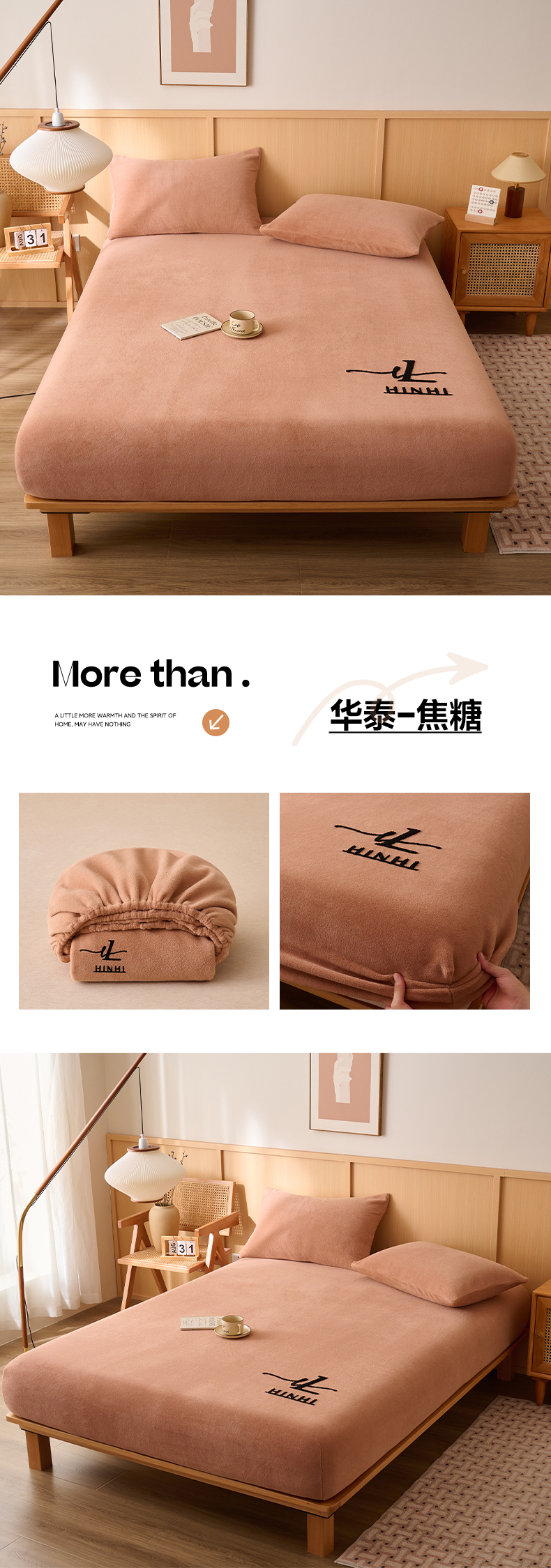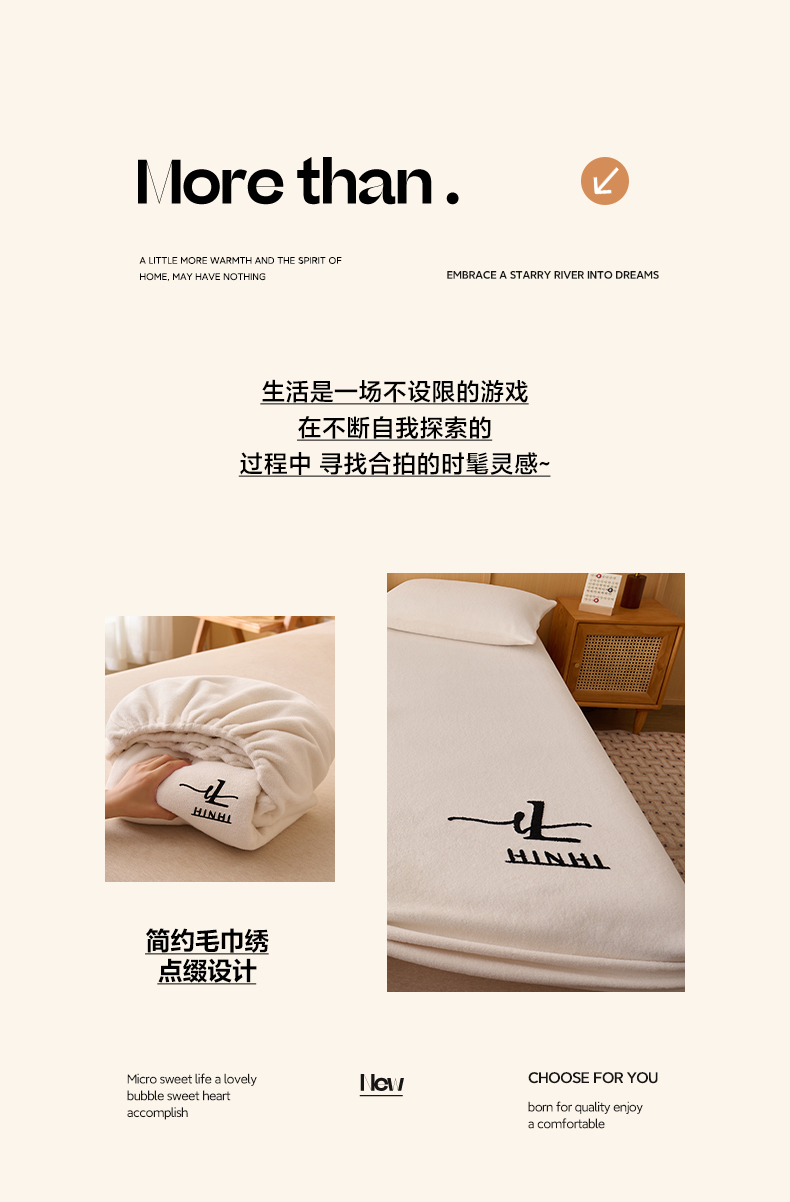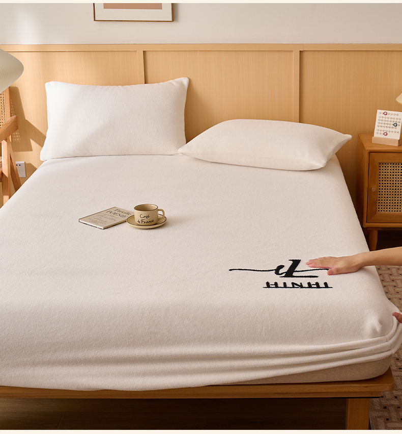 早晨家纺 2025新款华泰款高克重牛奶绒仿羊绒毛巾绣单床笠 华泰-奶白