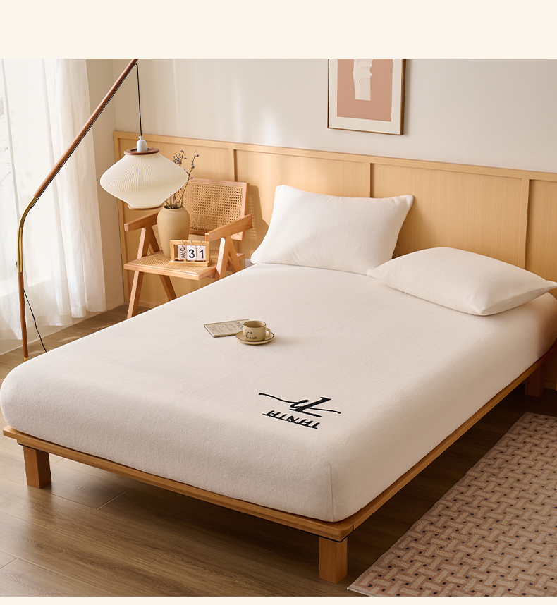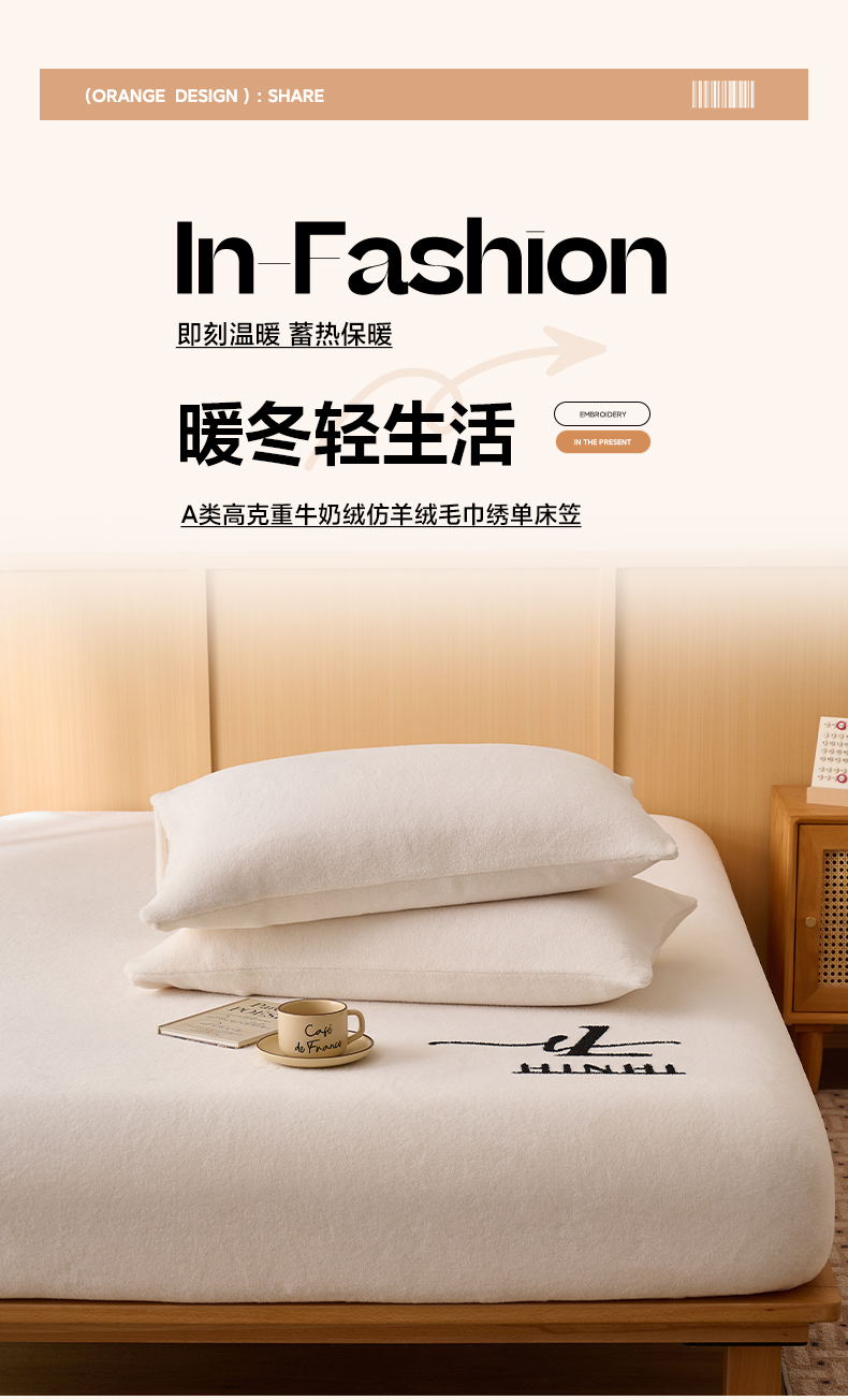 • 91家纺网 家纺一手货源 找家纺 早晨家纺 2025新款华泰款高克重牛奶绒仿羊绒毛巾绣单床笠 华泰-奶白