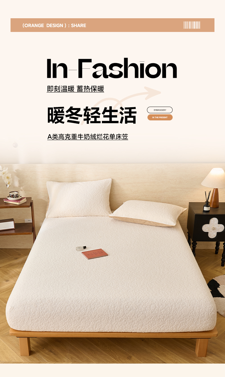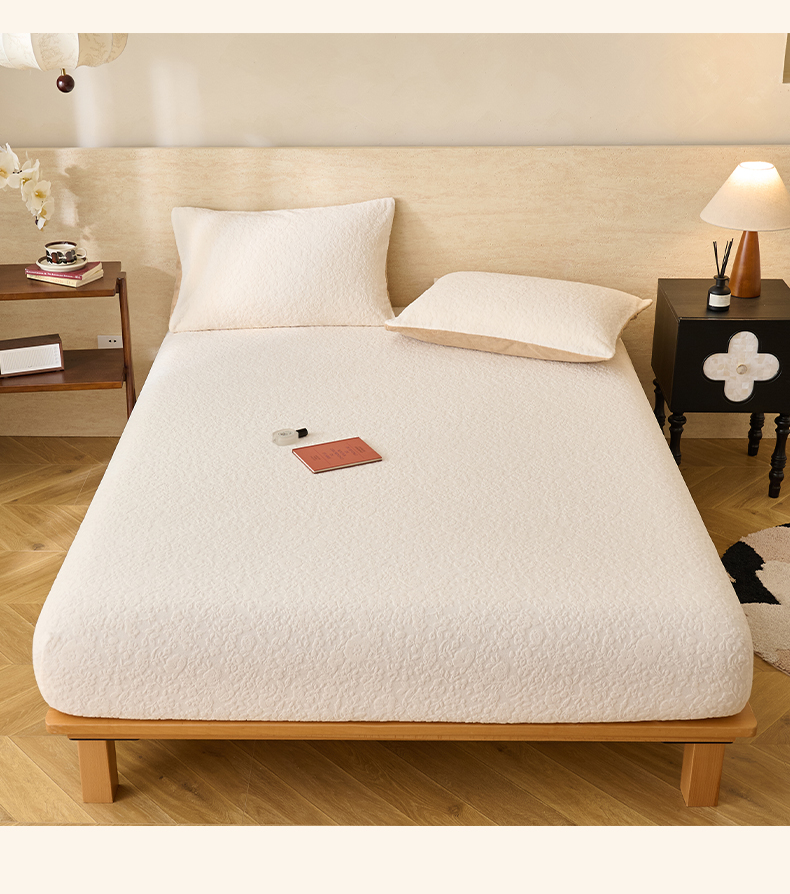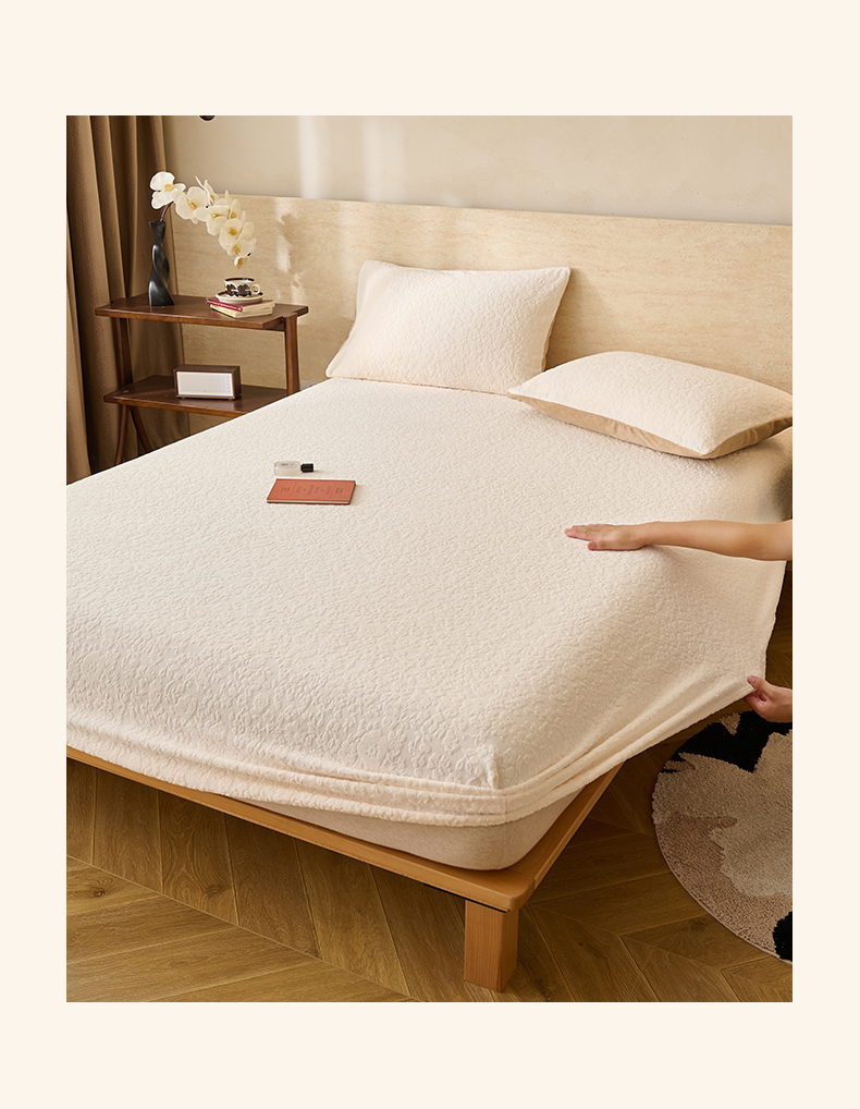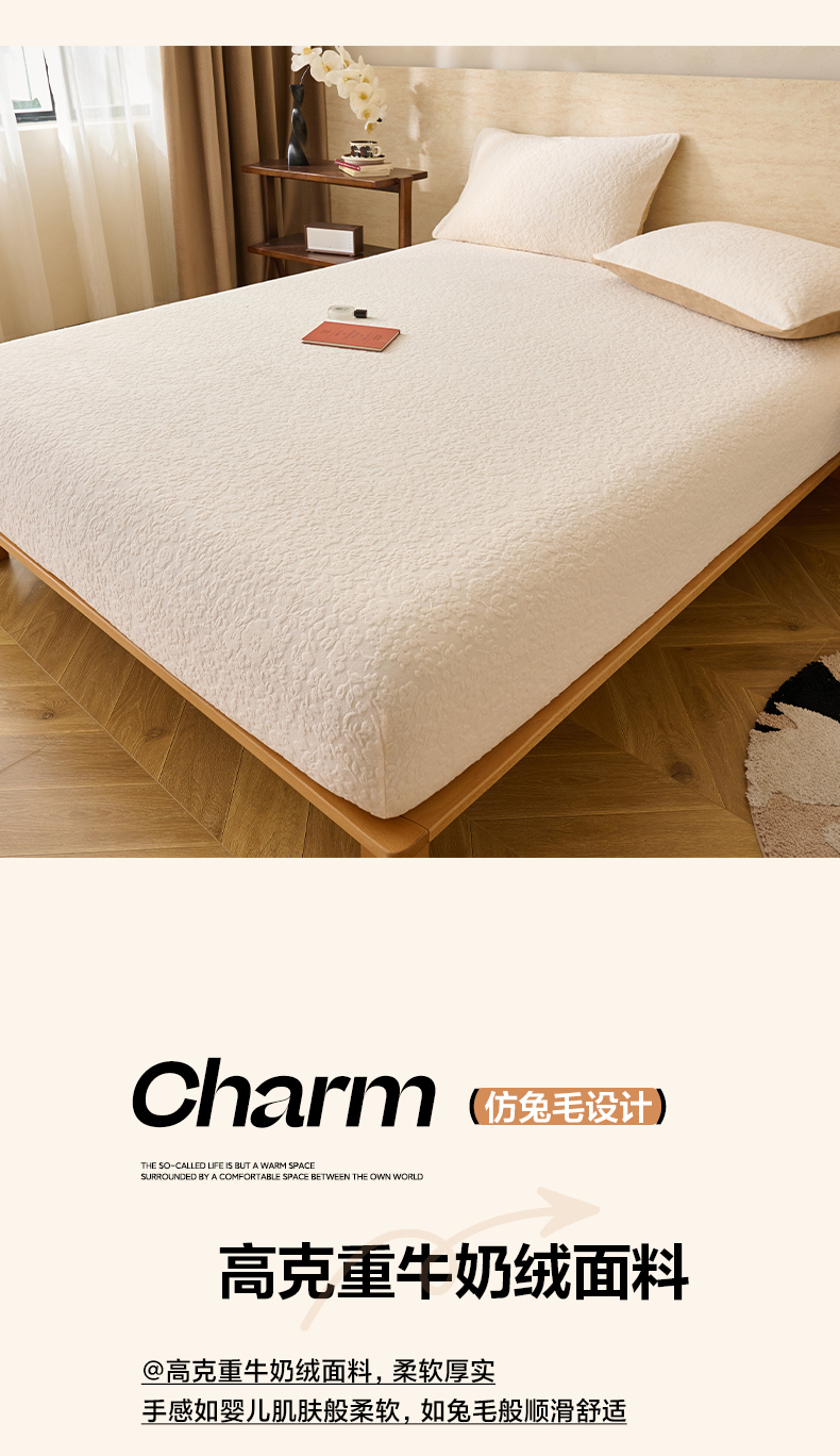 • 91家纺网 家纺一手货源 找家纺 早晨家纺 2025新款蝴蝶兰款高克重牛奶绒烂花床笠 蝴蝶兰-奶白