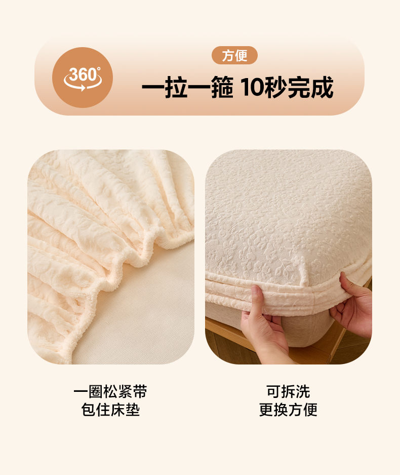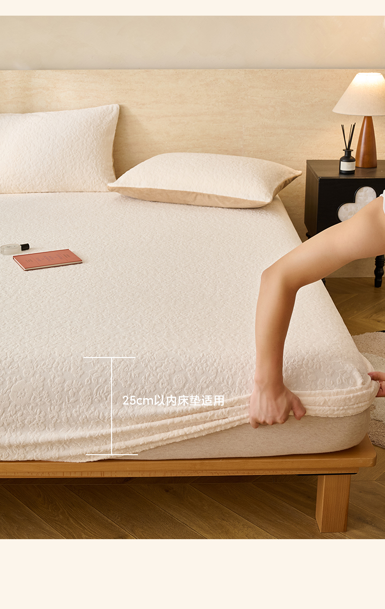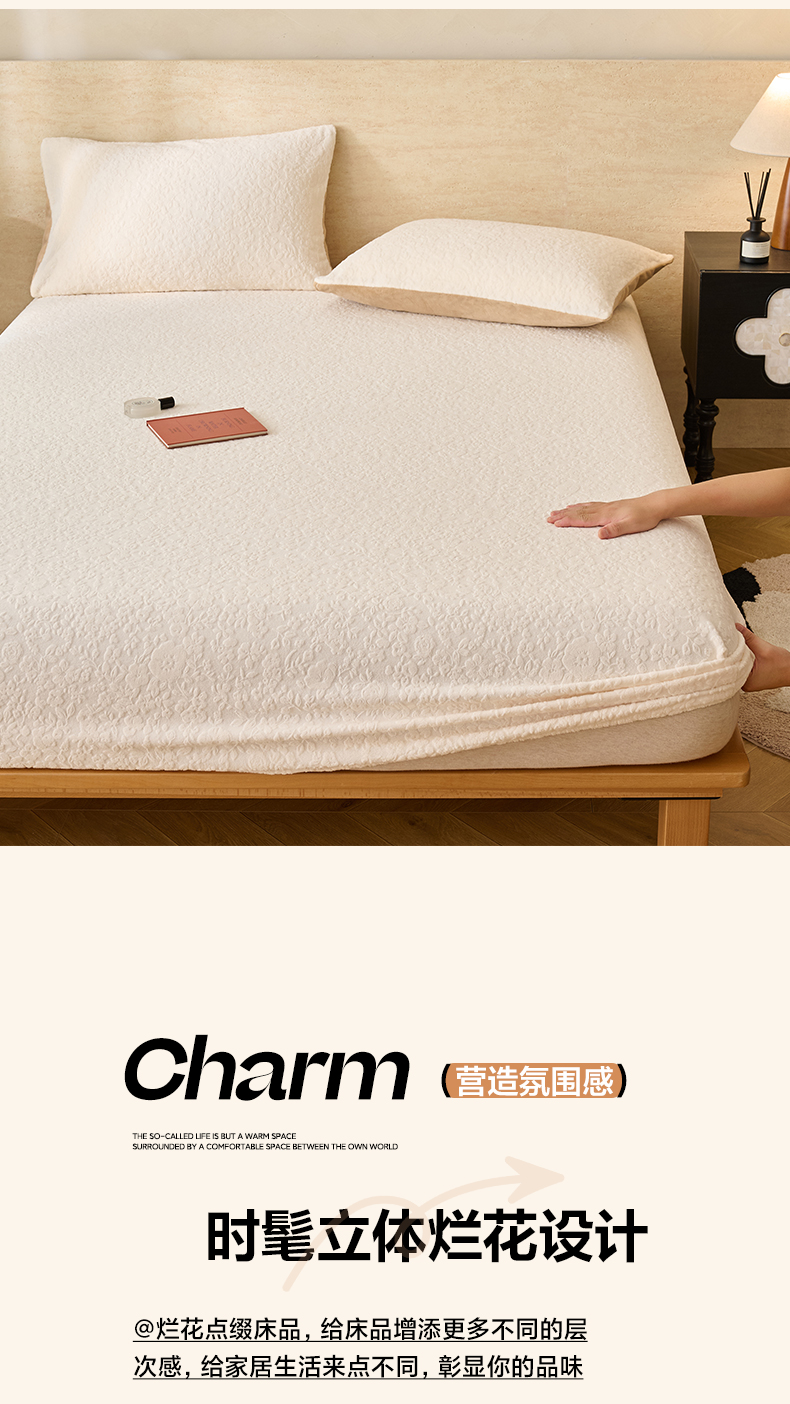 早晨家纺 2025新款蝴蝶兰款高克重牛奶绒烂花床笠 蝴蝶兰-奶白