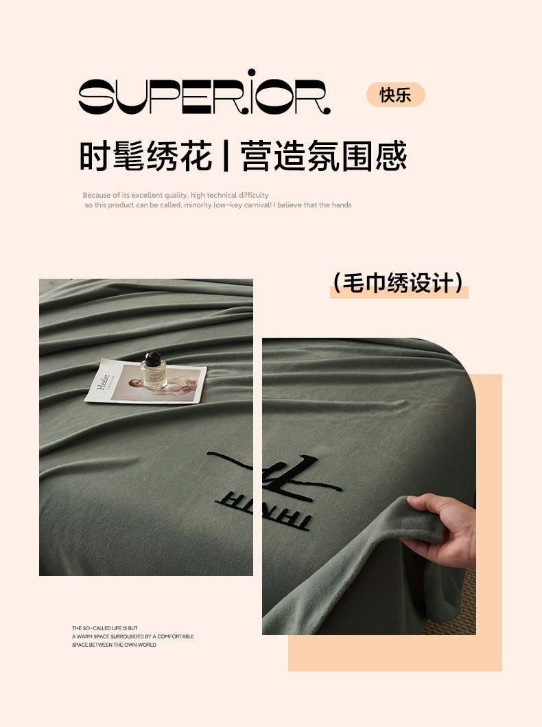 • 91家纺网 家纺一手货源 找家纺 早晨家纺 2025新款牛奶绒纯色毛巾绣暖绒床单 时尚-豆沙