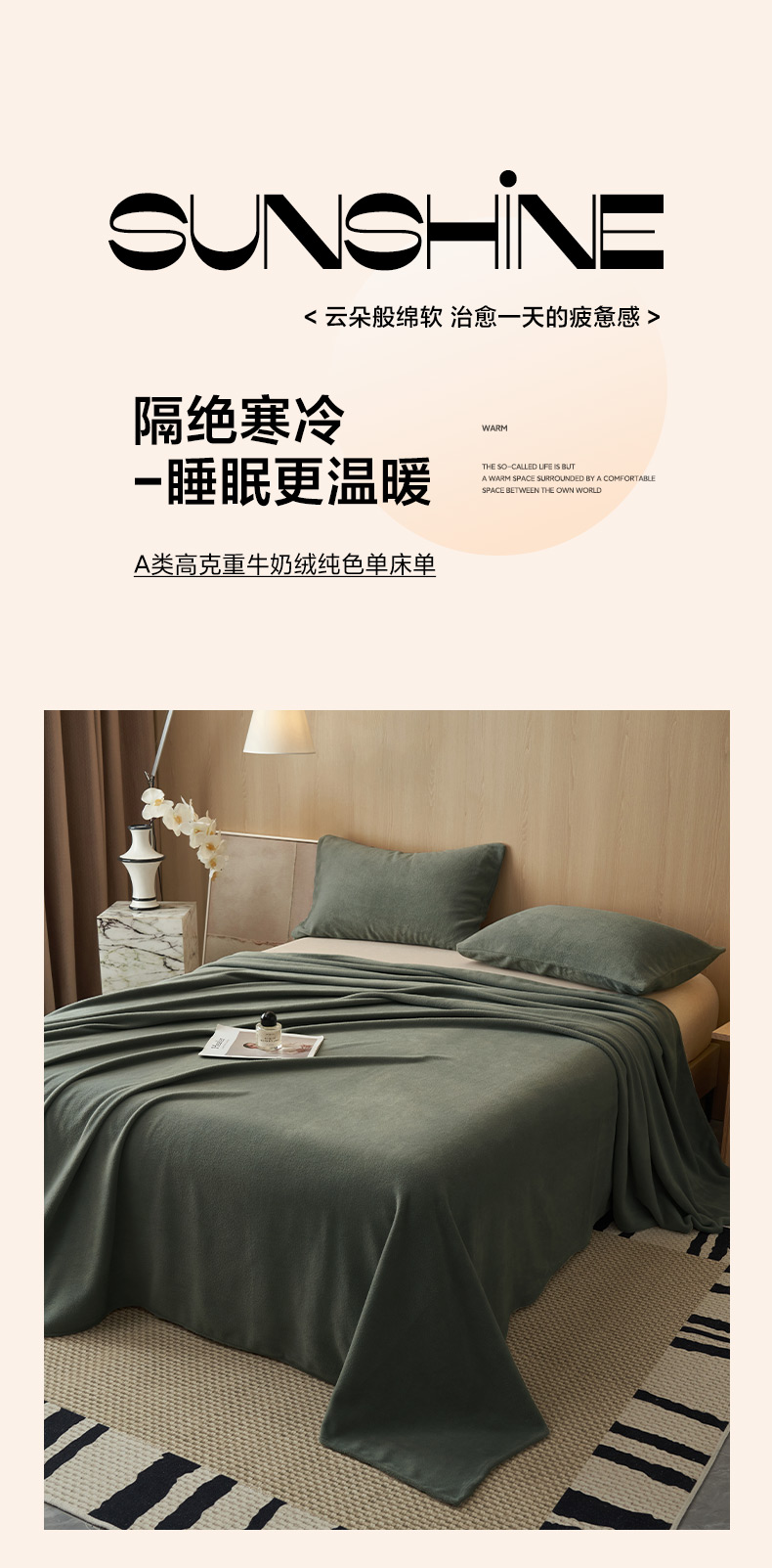 • 91家纺网 家纺一手货源 找家纺 早晨家纺 2025新款牛奶绒纯色单床单 牛奶绒-高级灰