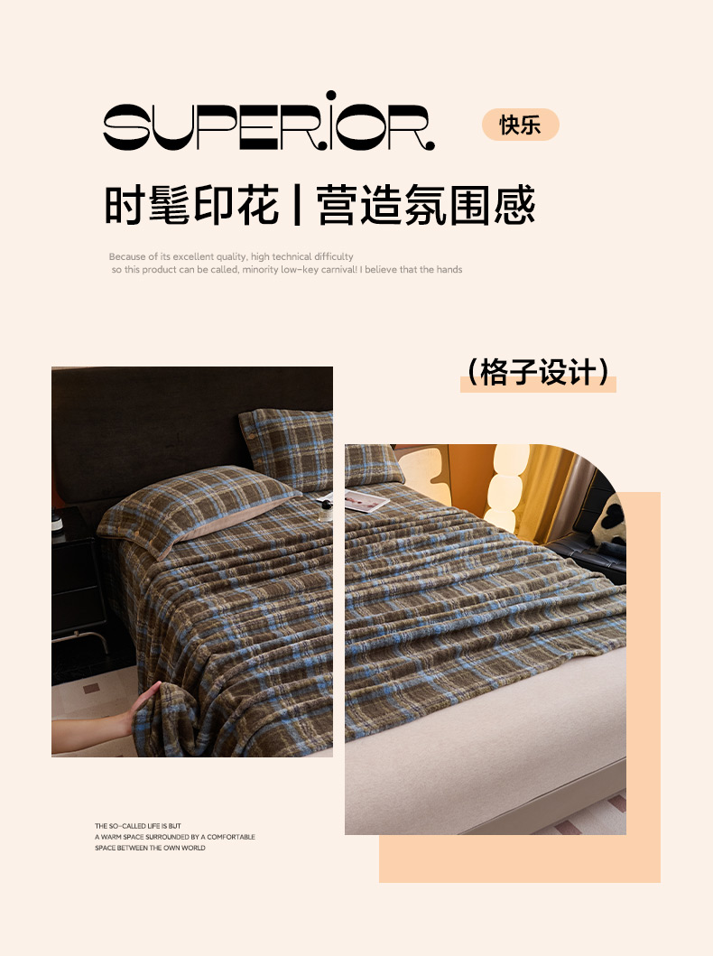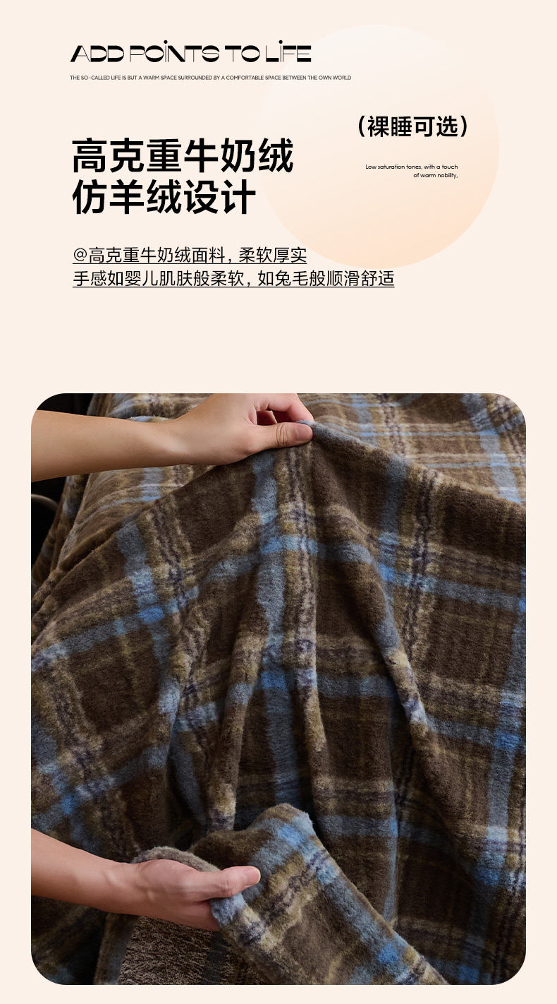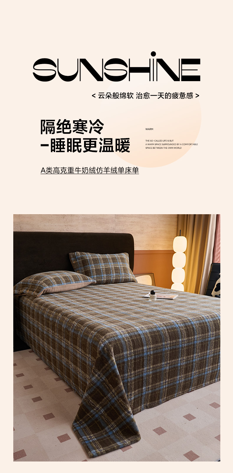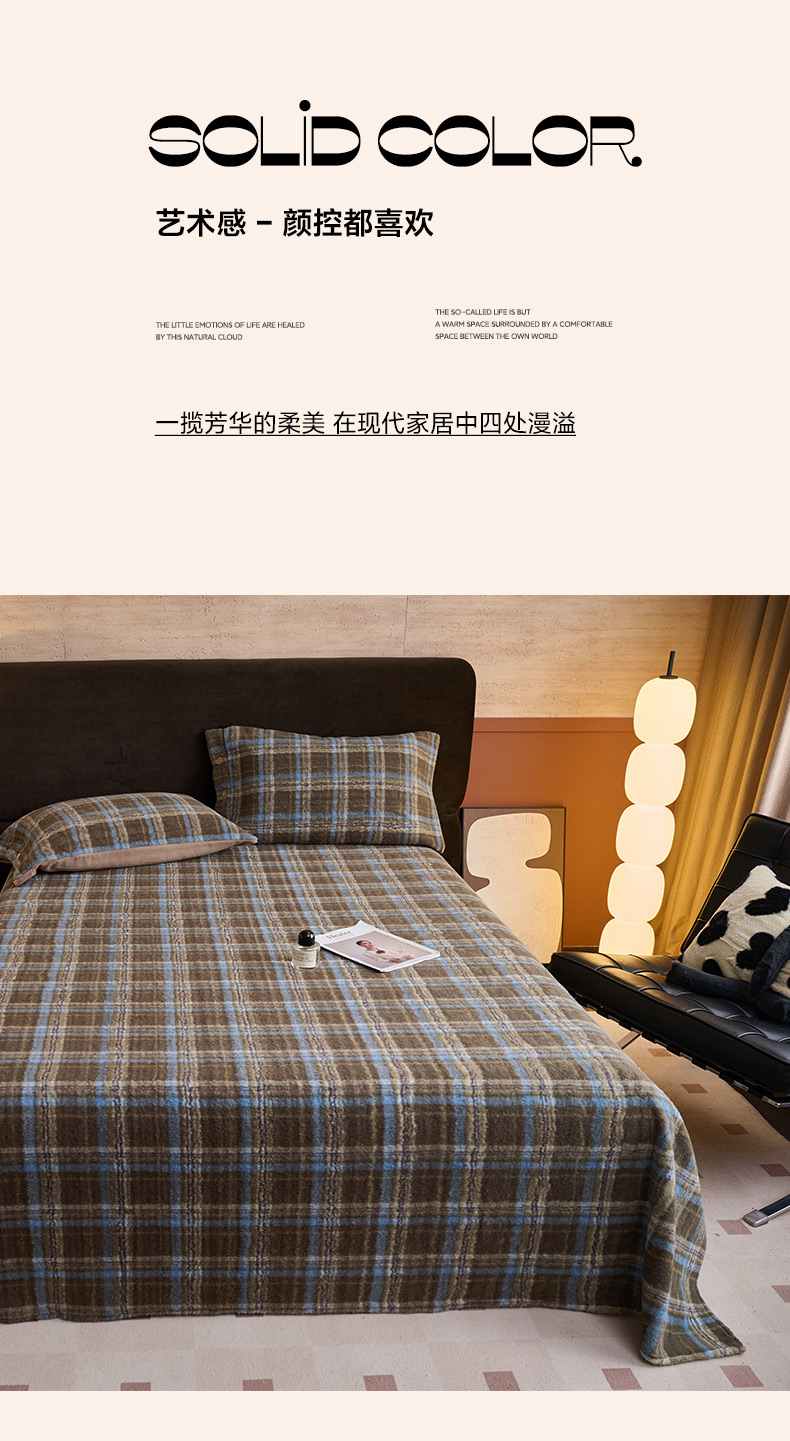 商品名称:早晨家纺 2025新款230g羊驼绒复古格牛奶绒床单 维系咖格