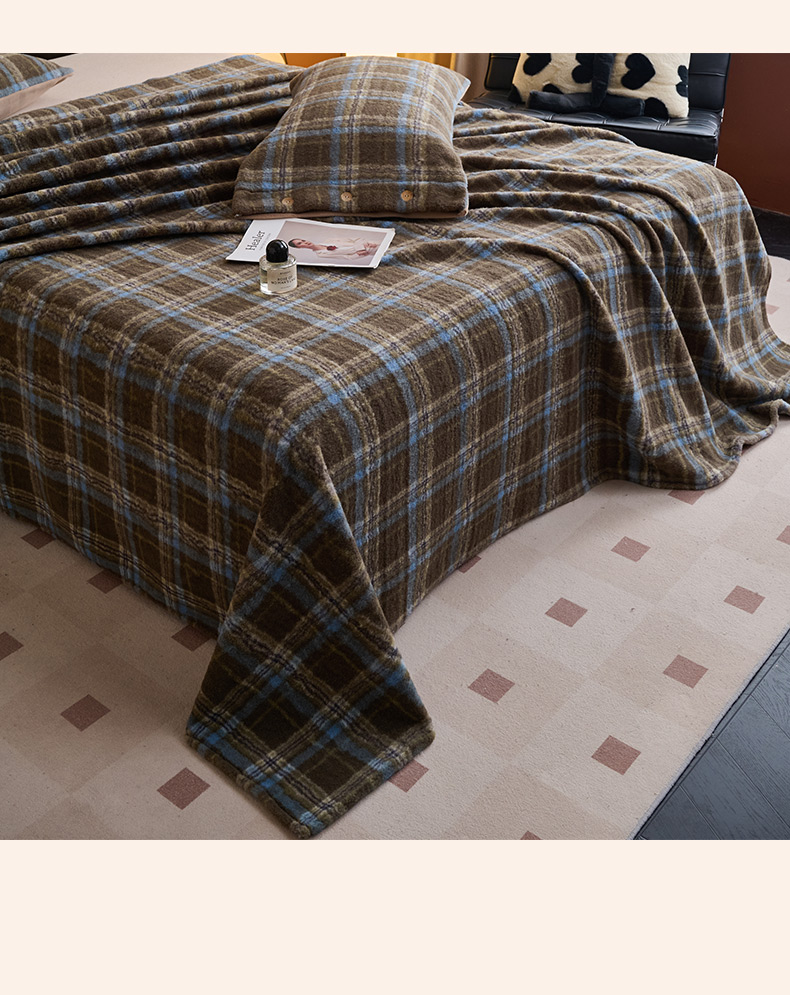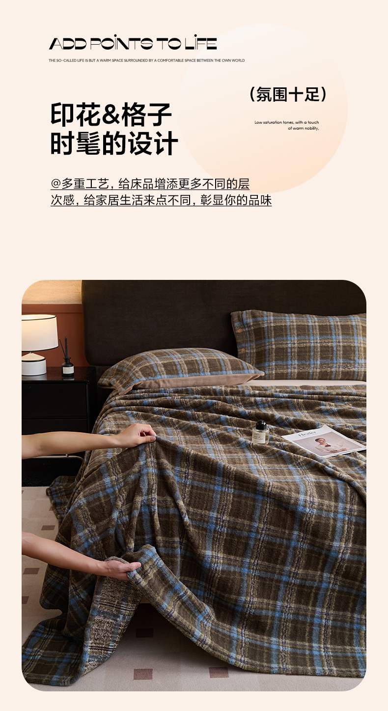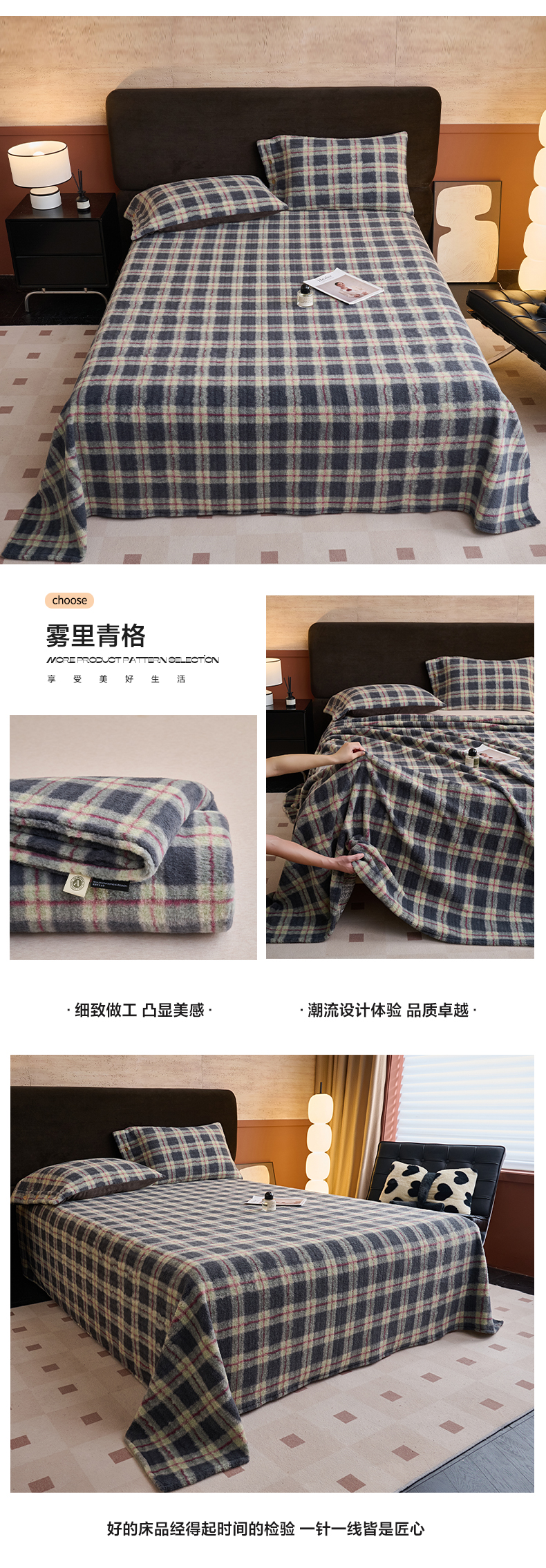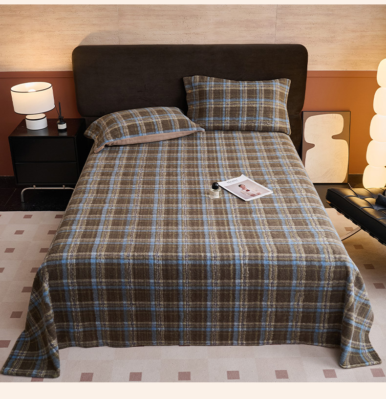 早晨家纺 2025新款230g羊驼绒复古格牛奶绒床单 维系咖格