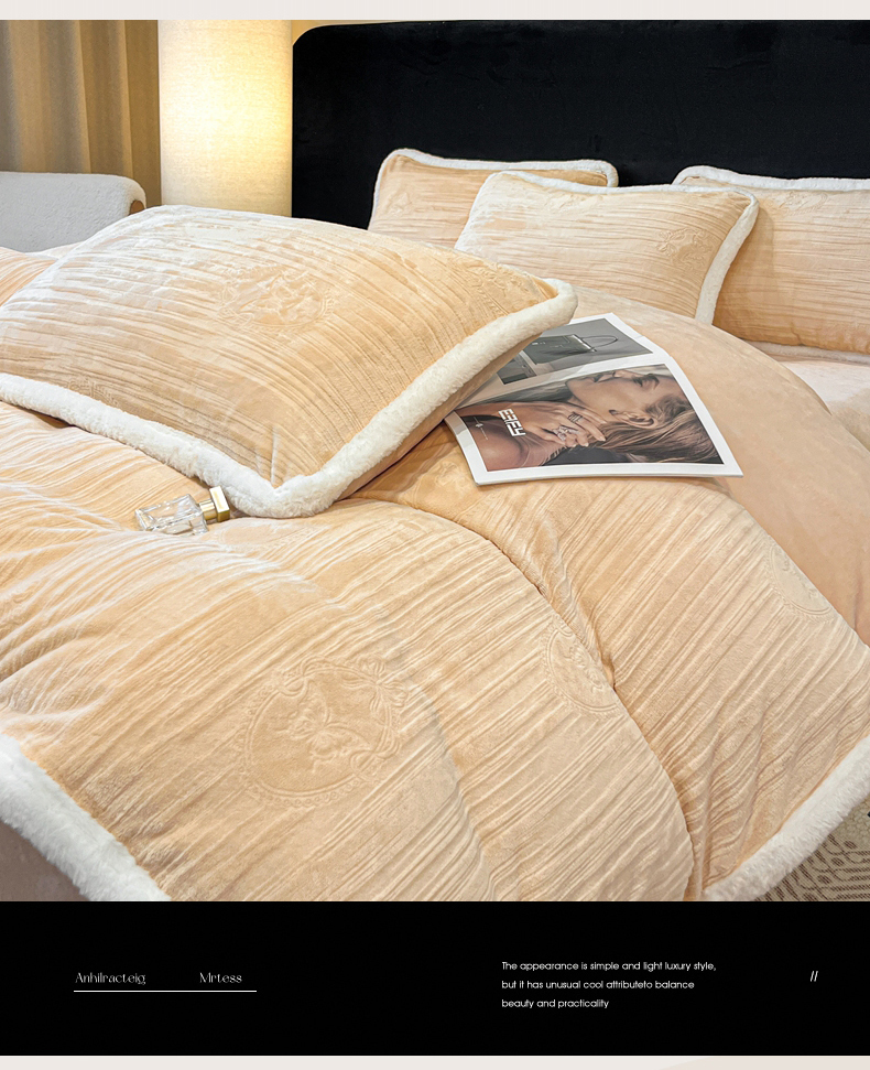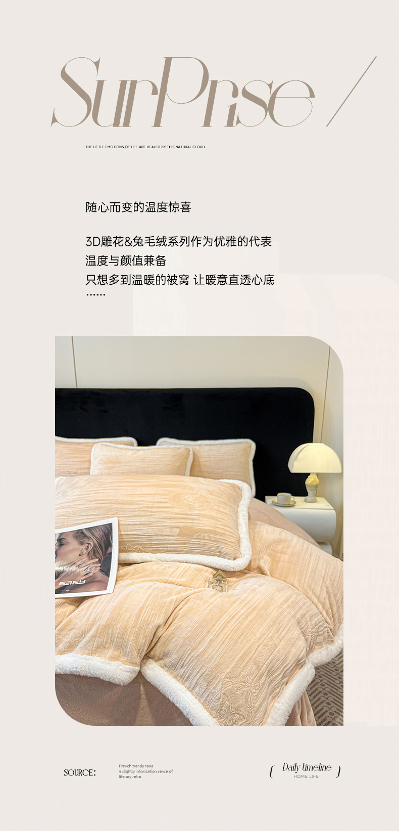诺梵家纺 2025新款兔毛绒包边 雕花绒四件套 米蕾-黄