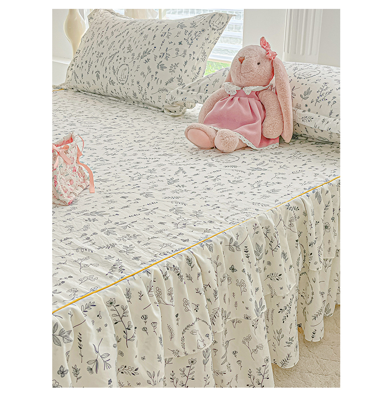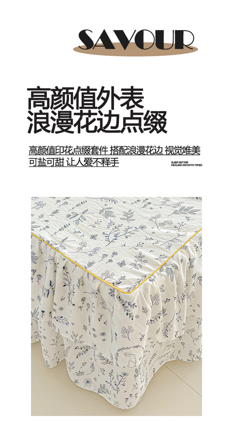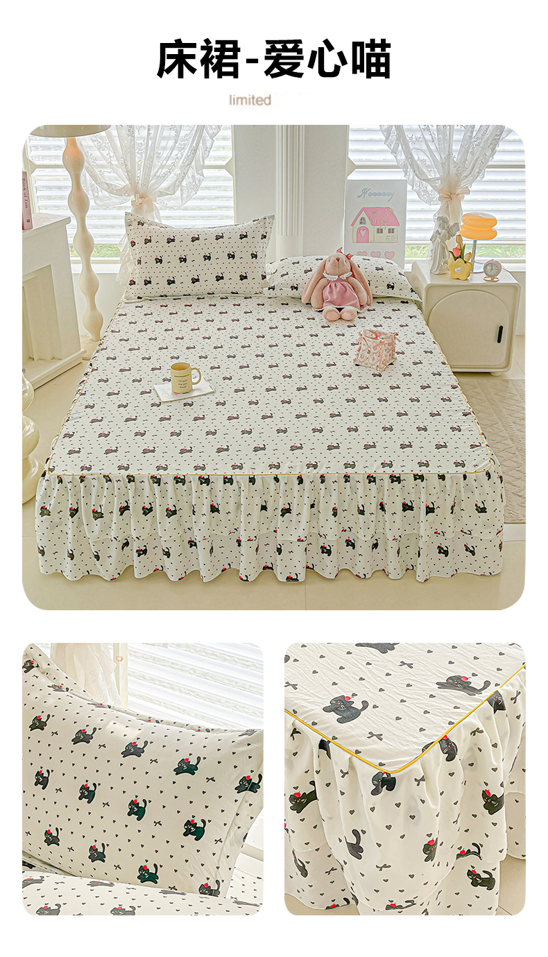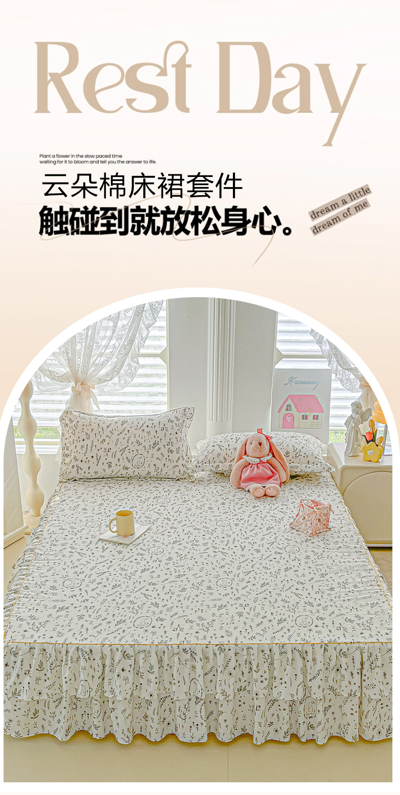 商品名称:子钦家纺 2025新款云朵棉水洗棉韩版双层花边公主风床裙床裙三件套 床裙-风情万种