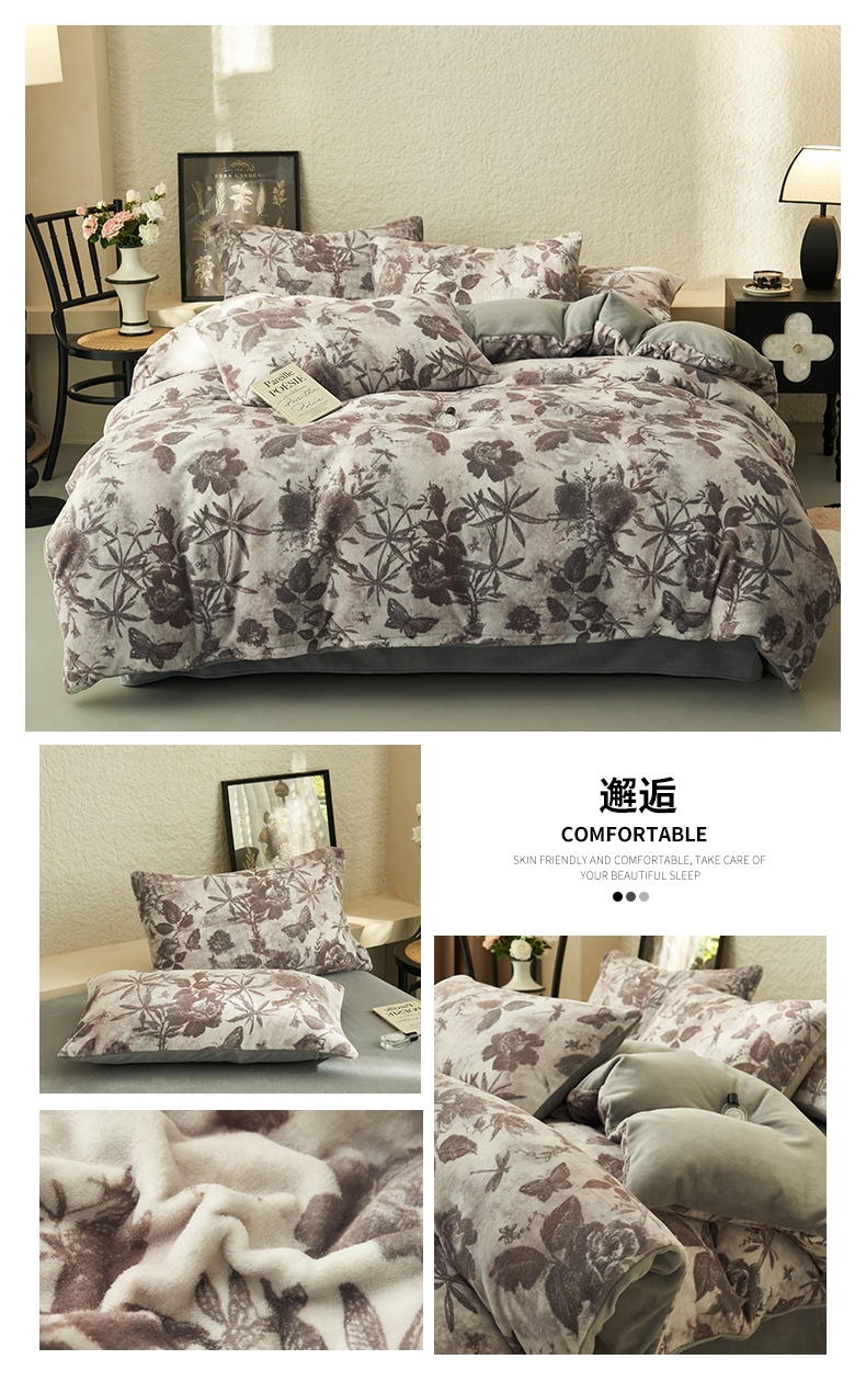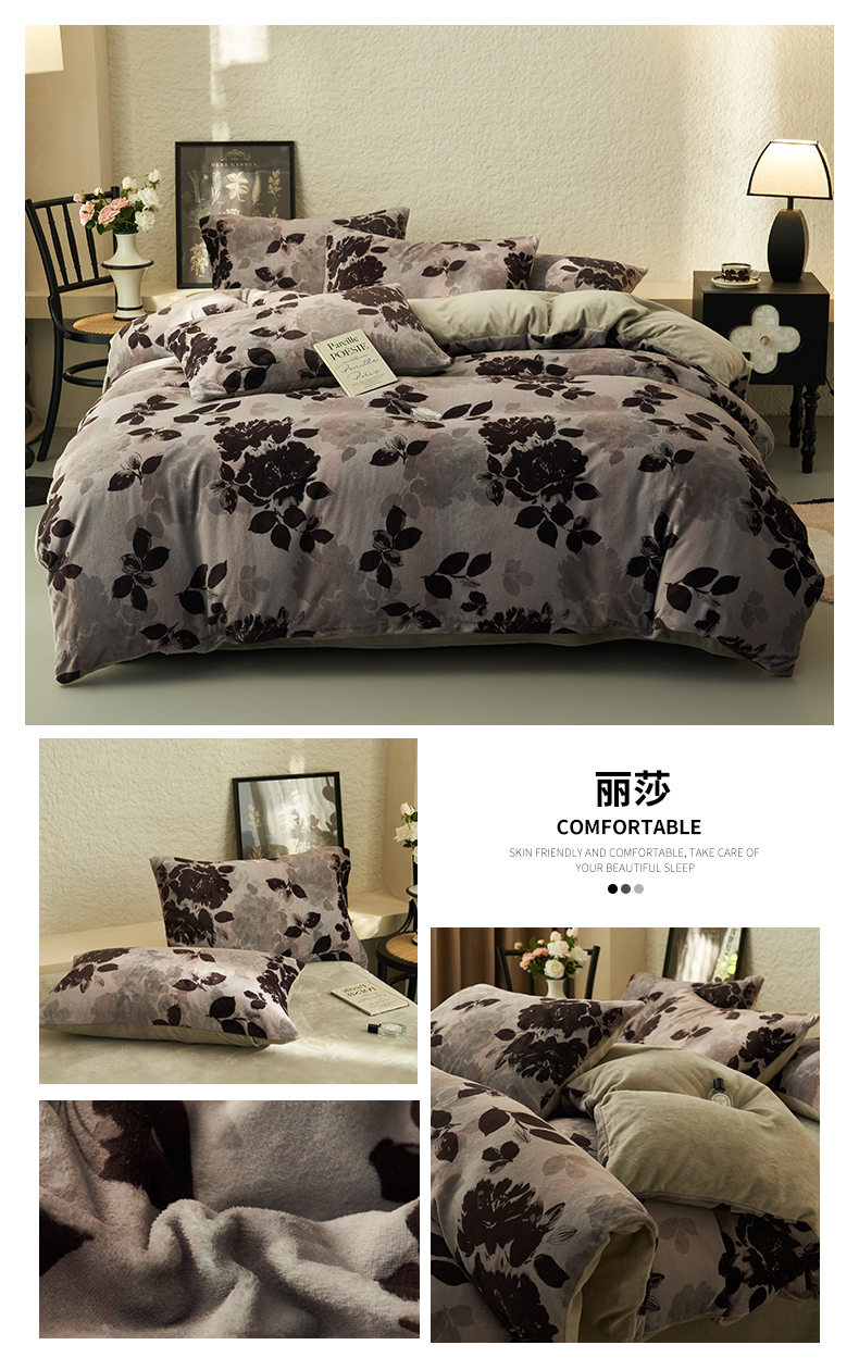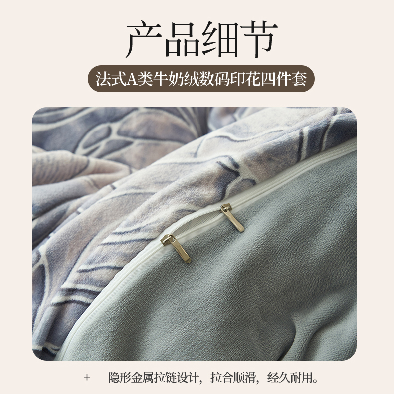 商品名称:金鹰 2025新款A类数码印花牛奶绒四件套绒套件 秋日恋曲