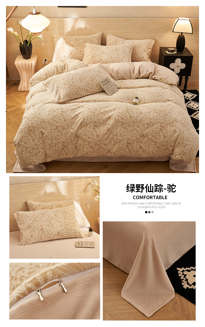 (总)金鹰 2025新款雕花烂花牛奶绒四件套,梦回唐朝,爱丽丝,蝴蝶结,花朝梦,浪漫人生,流年花束,绿野仙踪-灰,绿野仙踪-驼,玫瑰恋情,叶茂,叶叶生辉,叶影