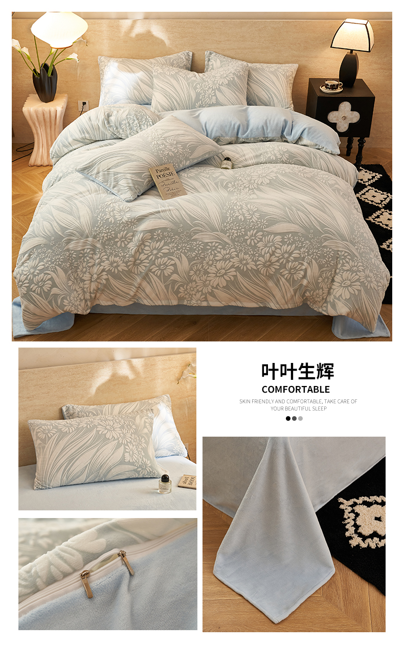 (总)金鹰 2025新款A类雕花牛奶绒烂花兔毛包边四件套,羽毛,波澜壮阔,繁花,蝴蝶梦,简爱,兰花,玫瑰物语,梦幻森林,清晨玫瑰,羽叶,仲夏晨歌