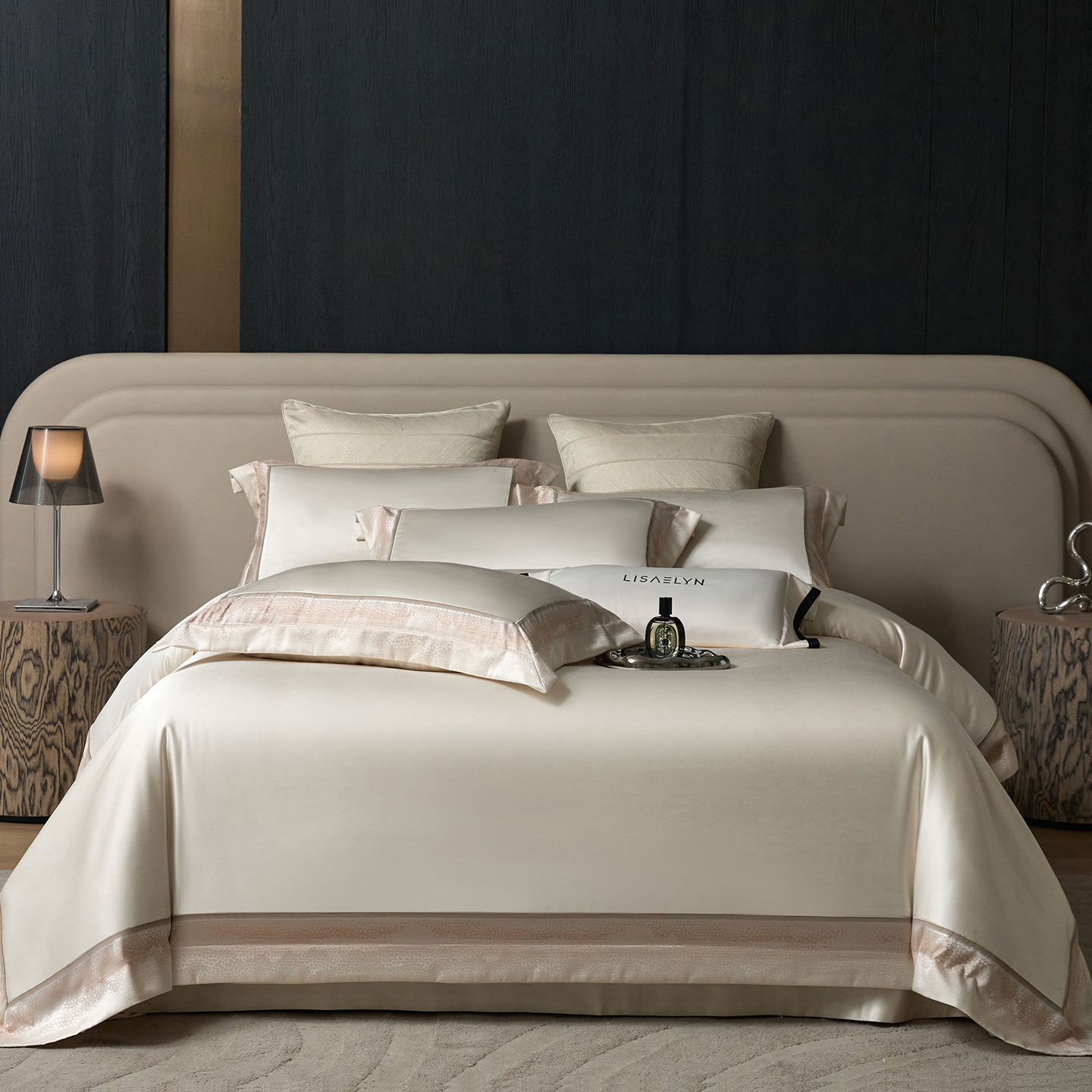 JUICY 橘滋家纺 2025新款高定鎏金高精密拼角系列四件套 卢浮塔夫绸-冷雾灰