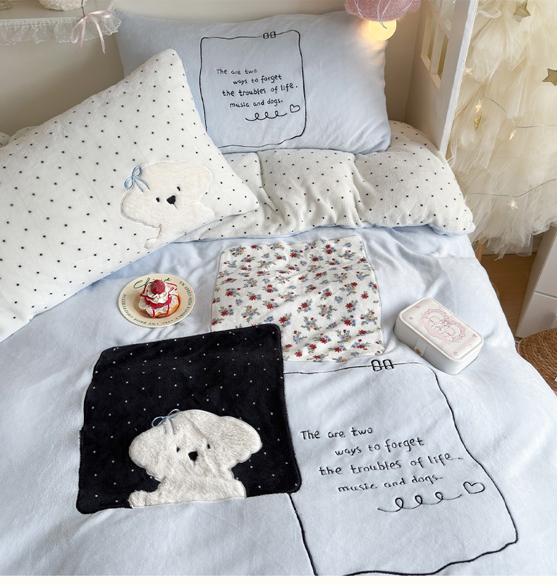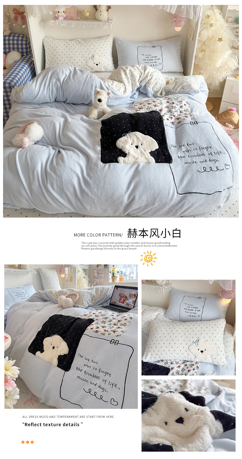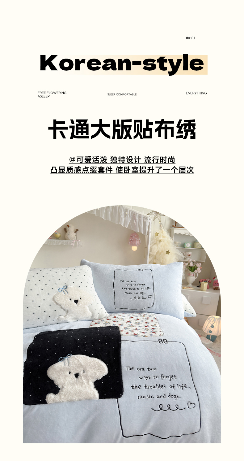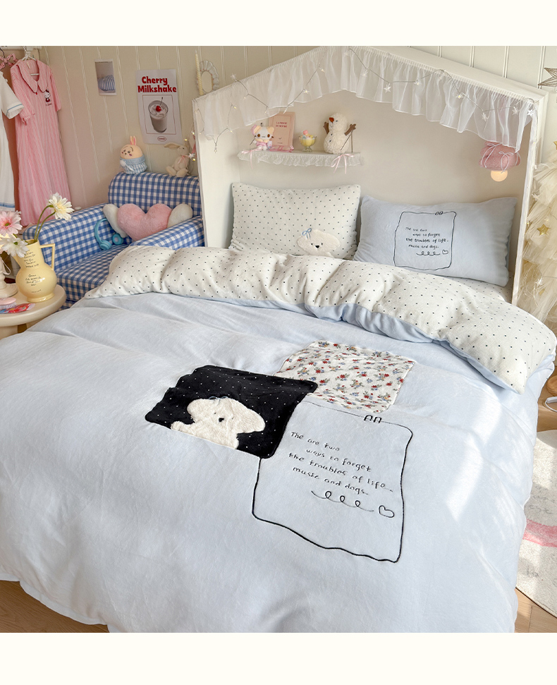 当前位置: 91家纺网 > 商品网购 > 床品套件 > 四件套 > 牛奶绒四件套 > 罗亿家纺 2025新款A类兔毛贴布绣刺绣牛奶绒四件套-小红书推荐(提供买家秀) 赫本风小白