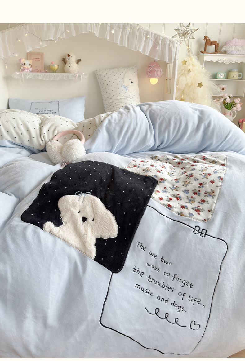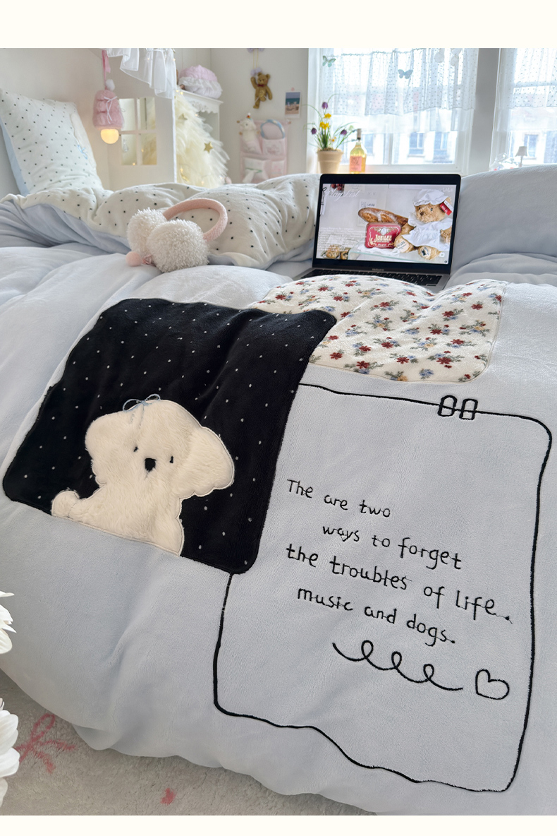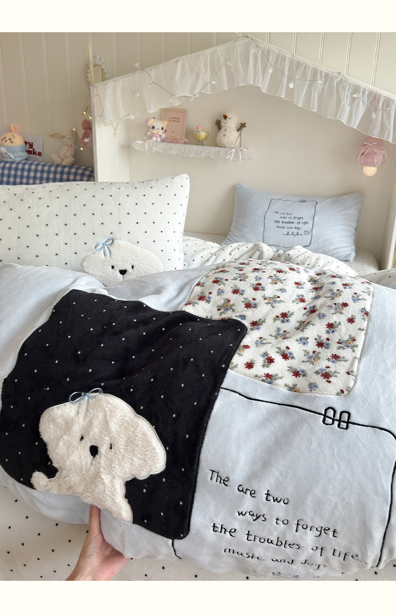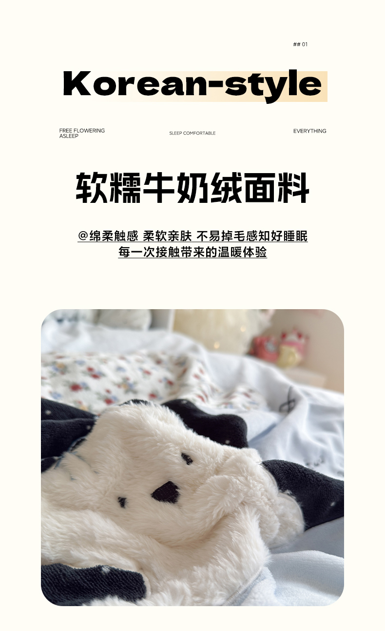 当前位置: 91家纺网 > 商品网购 > 床品套件 > 四件套 > 牛奶绒四件套 > 罗亿家纺 2025新款A类兔毛贴布绣刺绣牛奶绒四件套-小红书推荐(提供买家秀) 赫本风小白