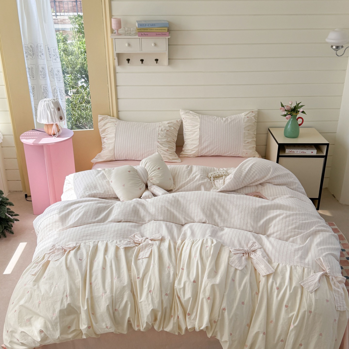商品名称:觅糖家纺 2025新款100%全棉色织水洗棉系列四件套 月光甜美-粉